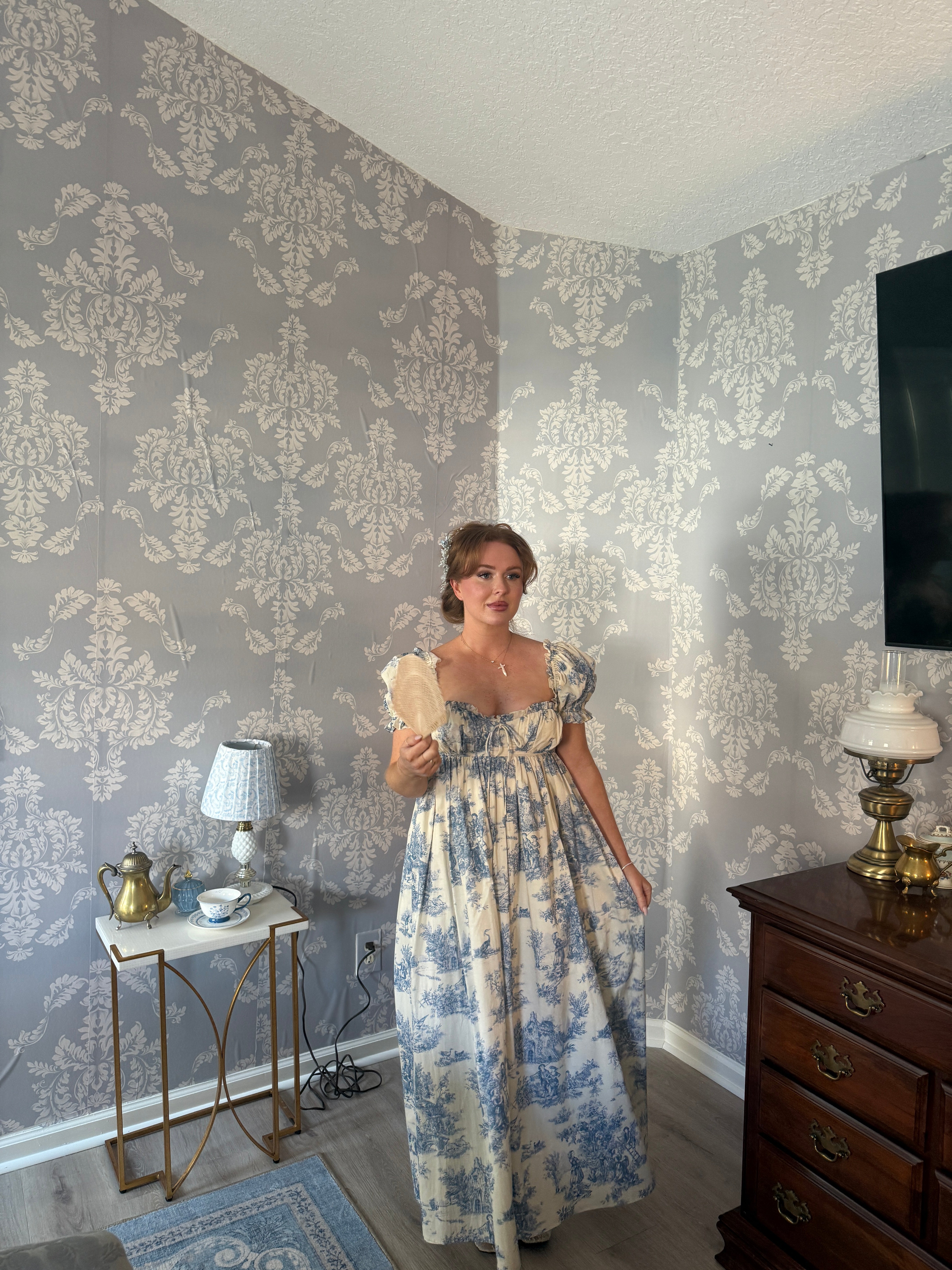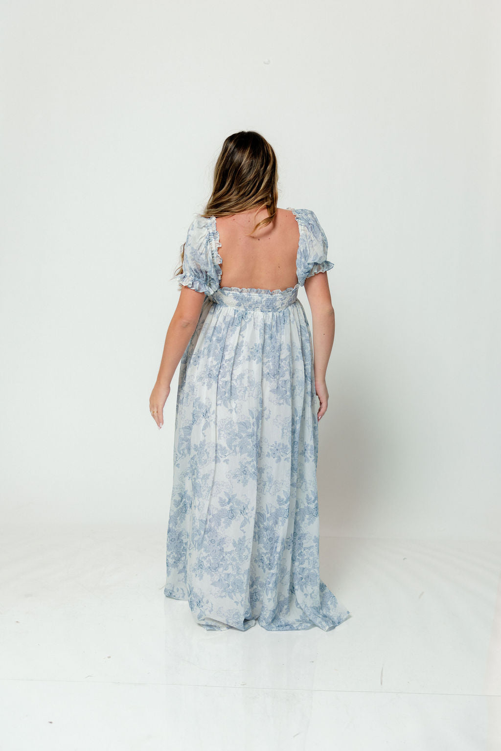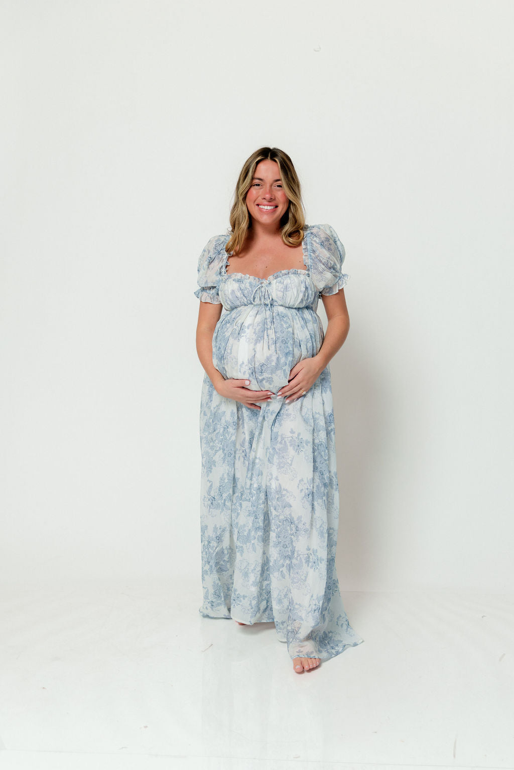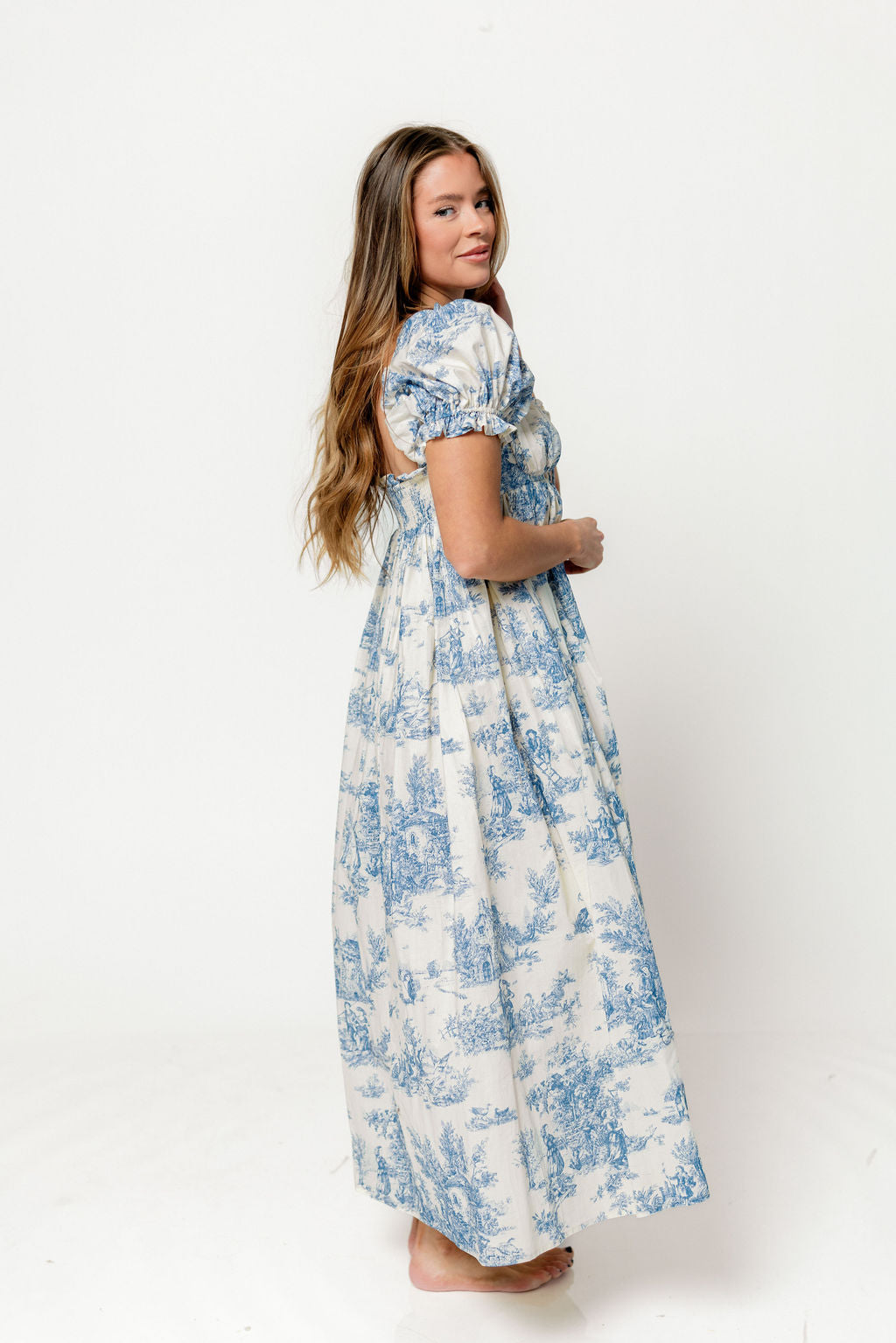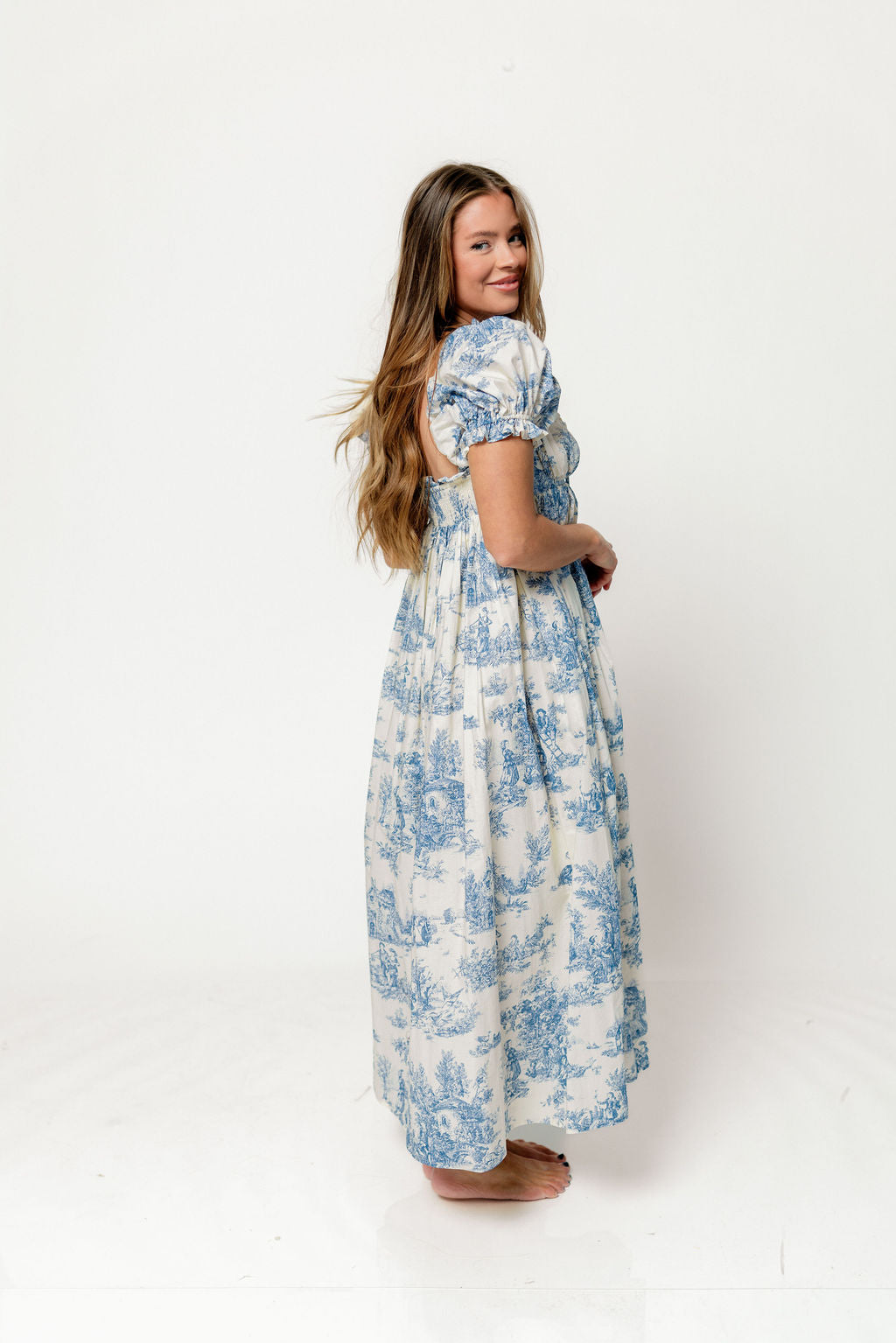 Olivia 100% Cotton Maxi Dress in Blue Toile - Bump Friendly *1/30 PRE-ORDER*