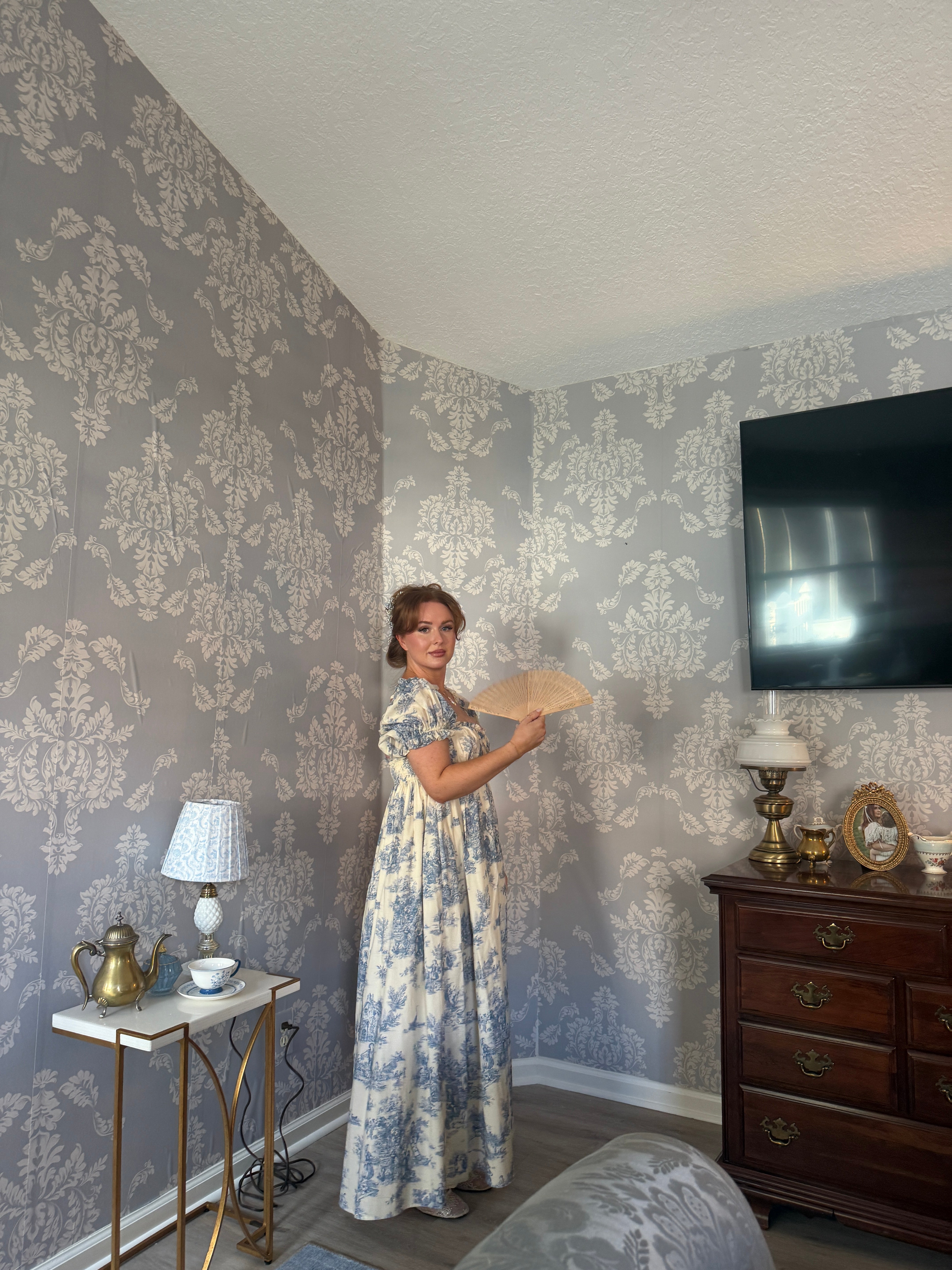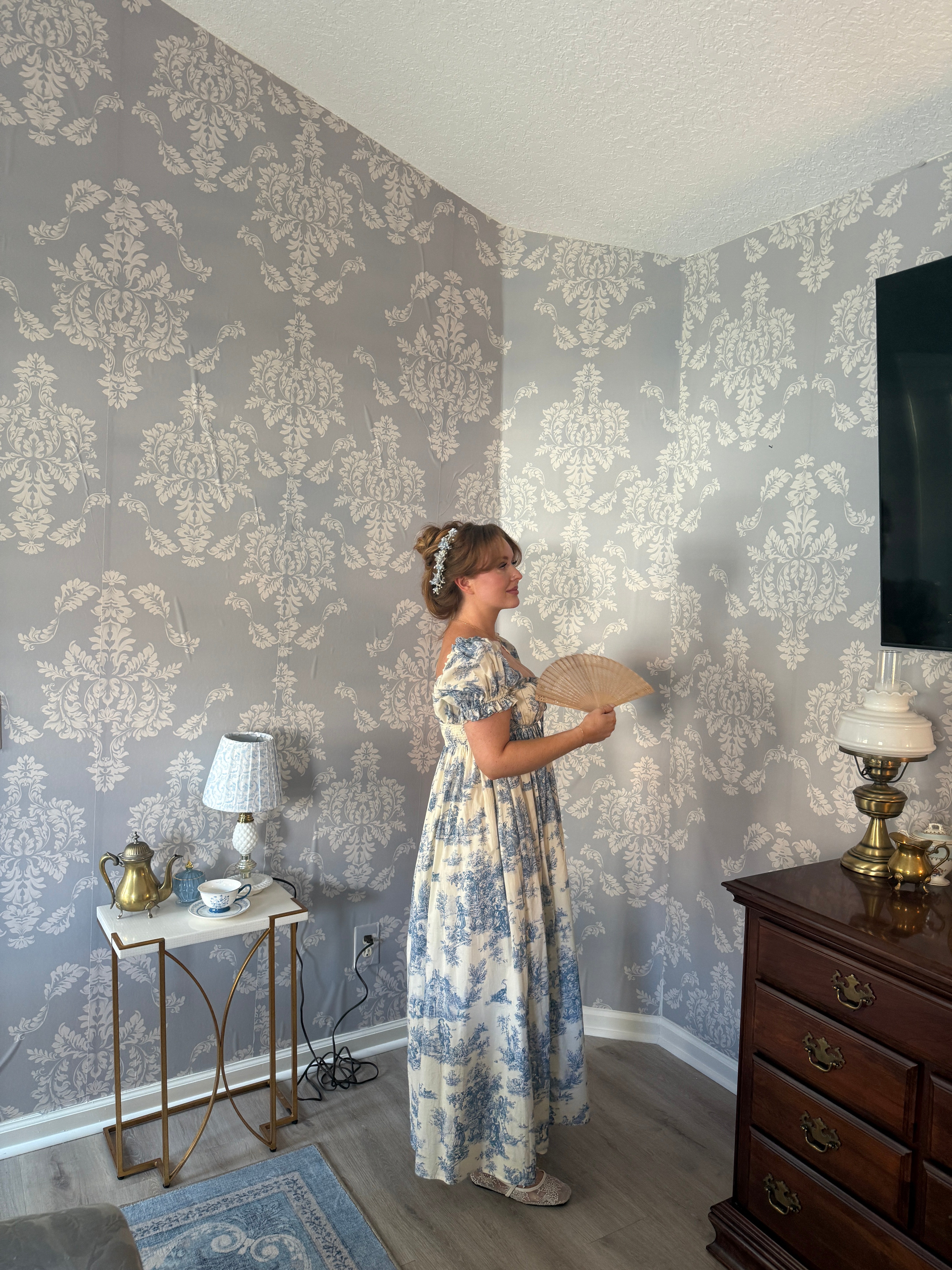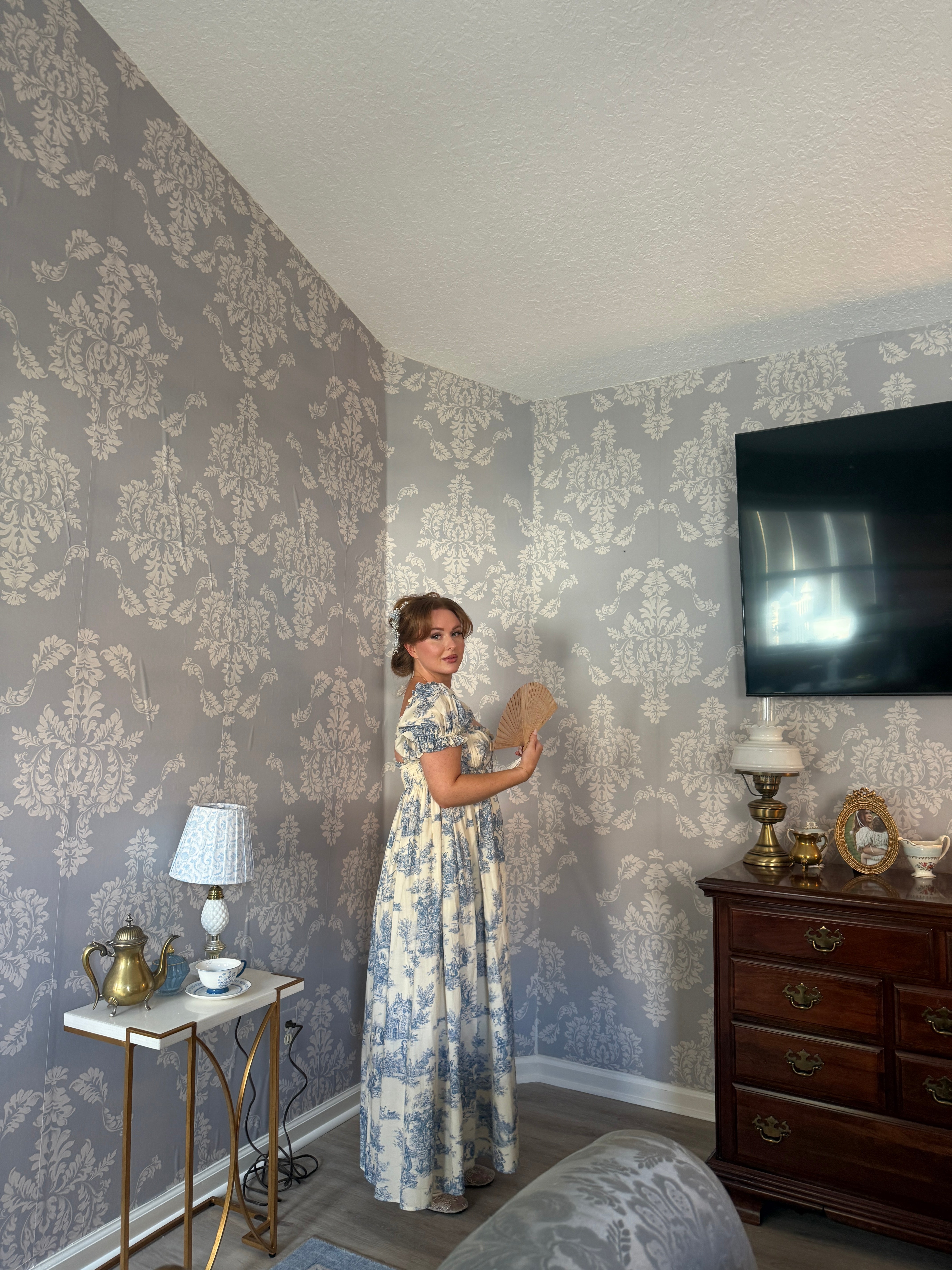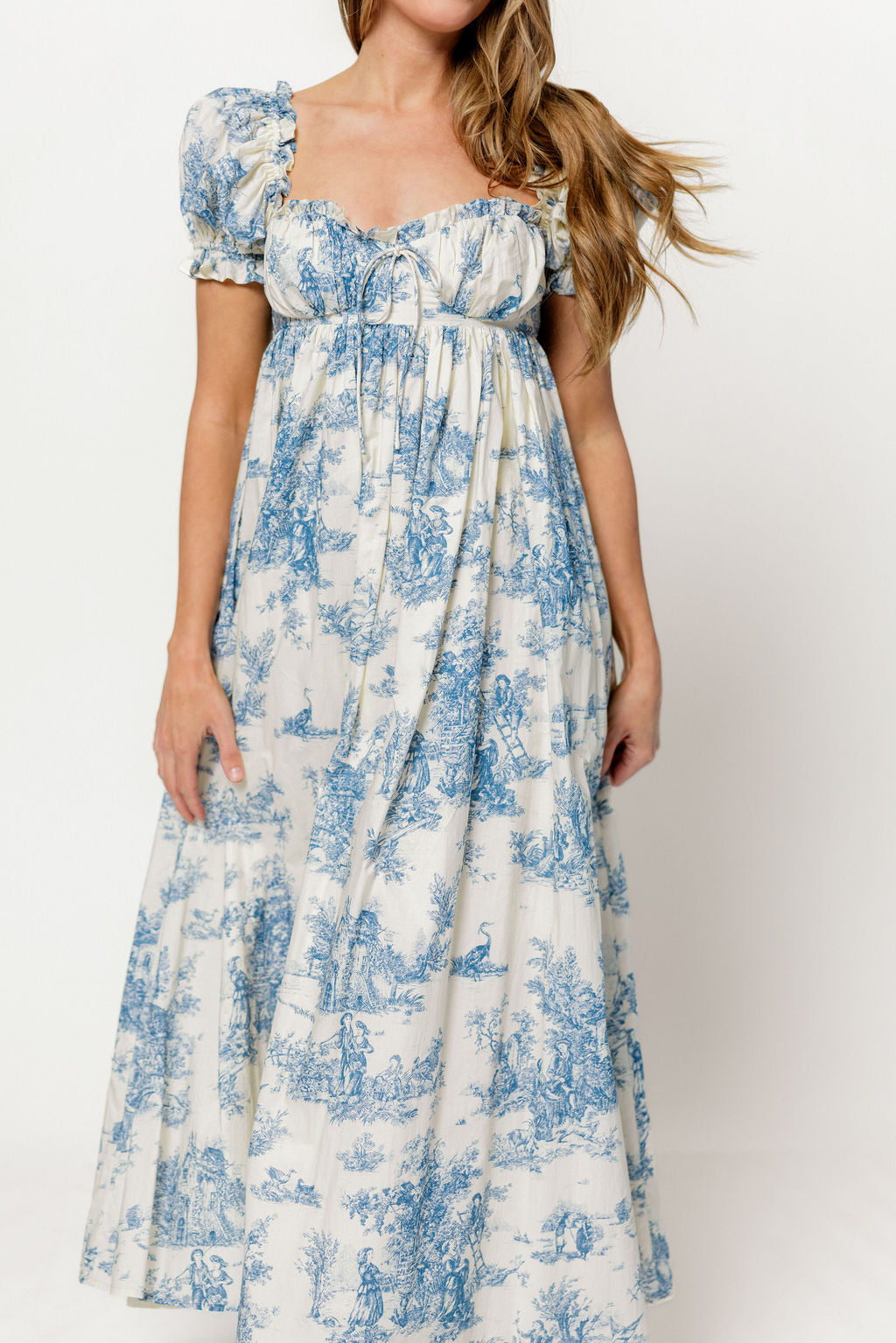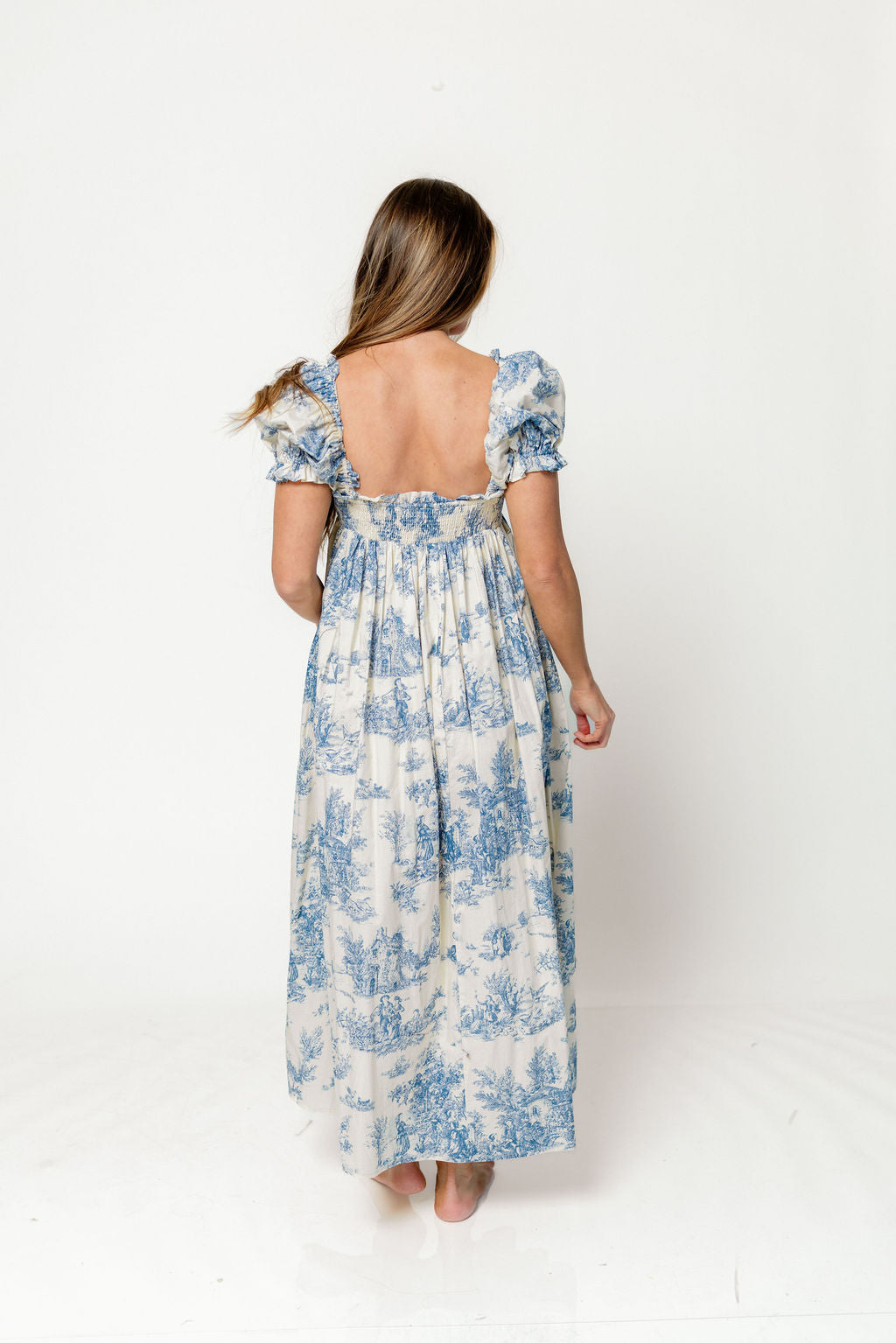 Olivia 100% Cotton Maxi Dress in Blue Toile - Bump Friendly *1/30 PRE-ORDER*
