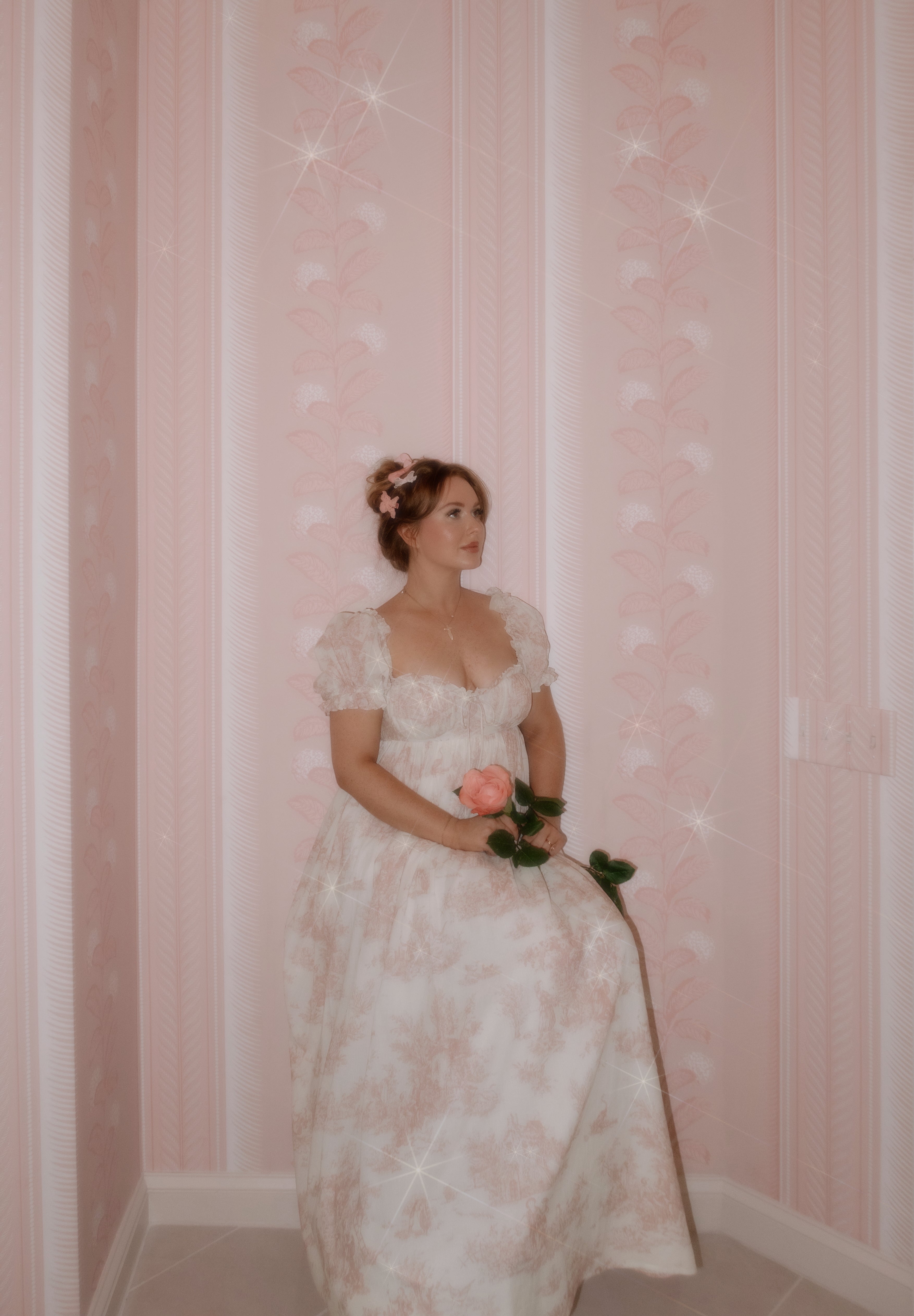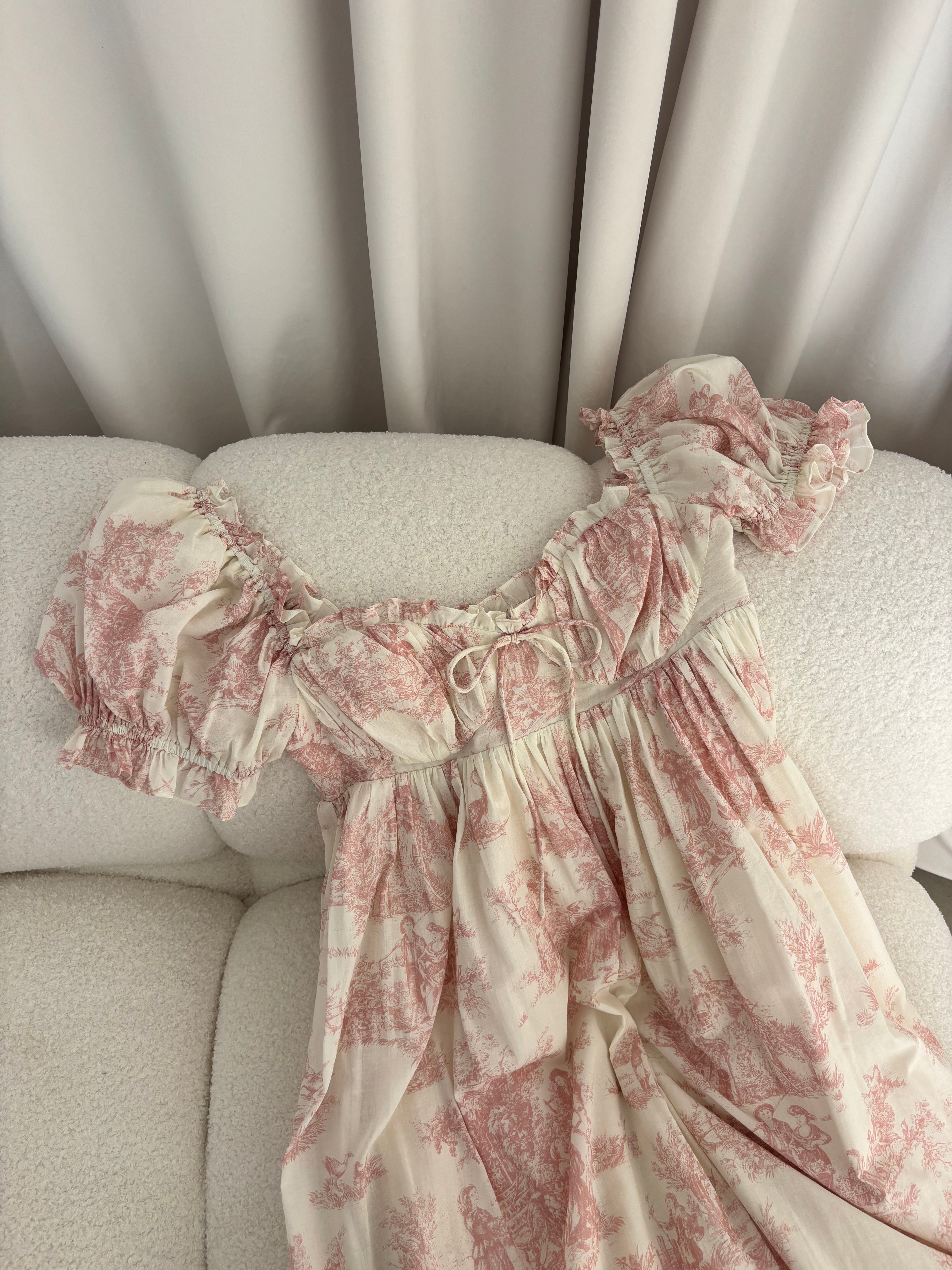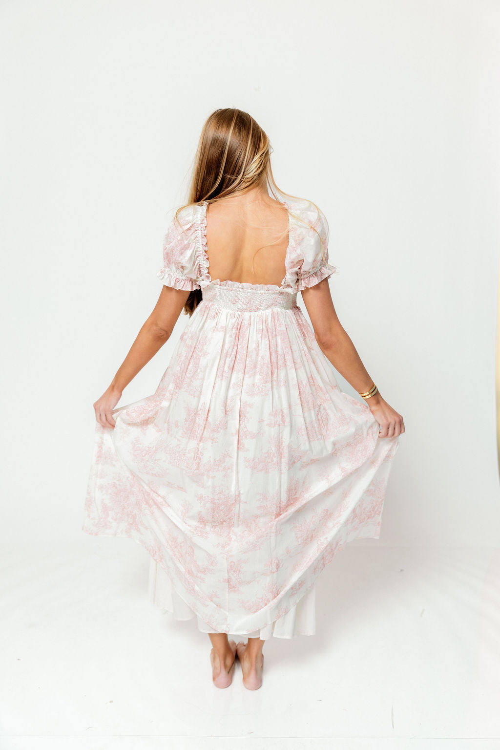 Olivia 100% Cotton Maxi Dress in Pink Toile - Bump Friendly *1/30 PRE-ORDER*