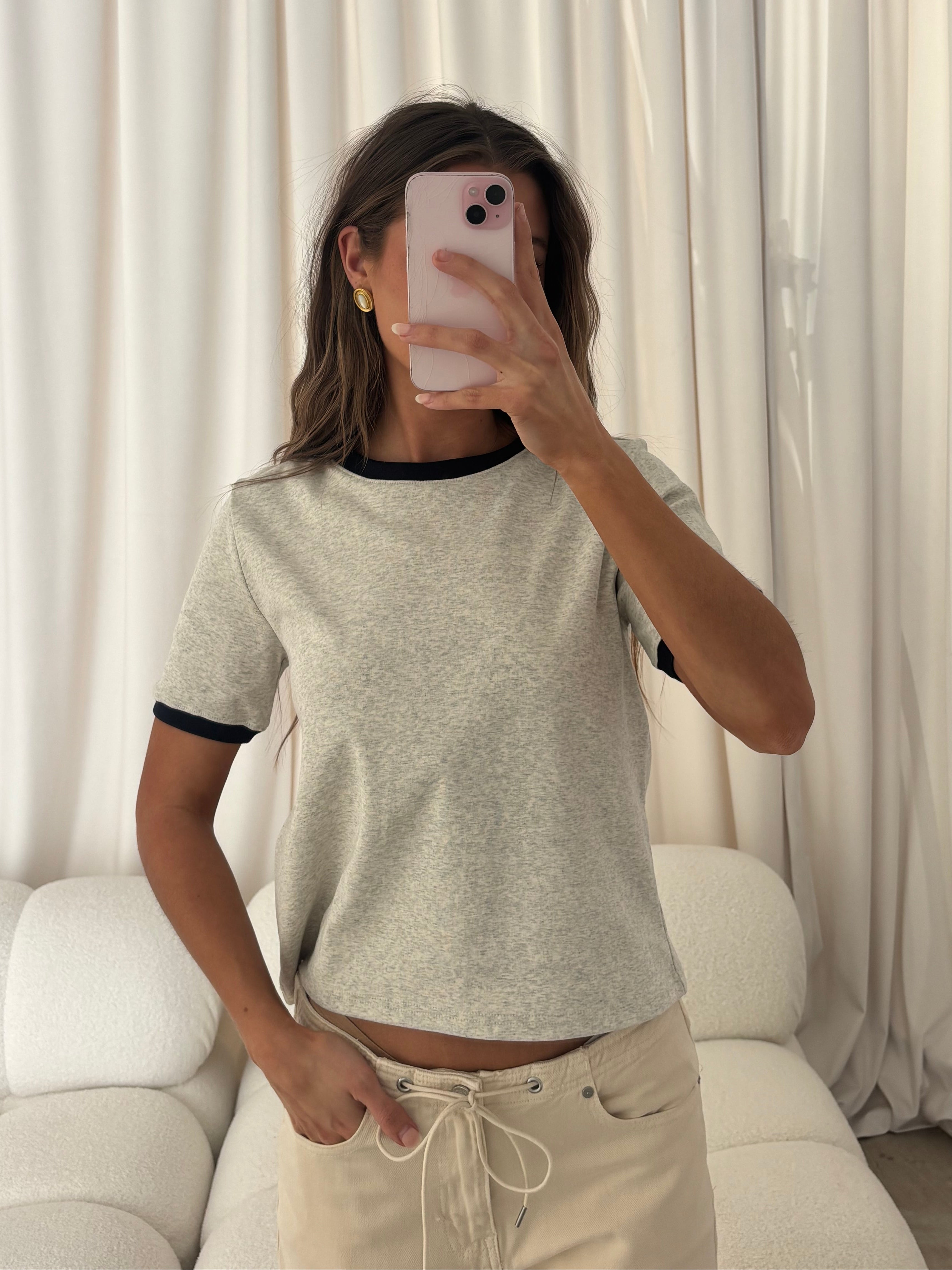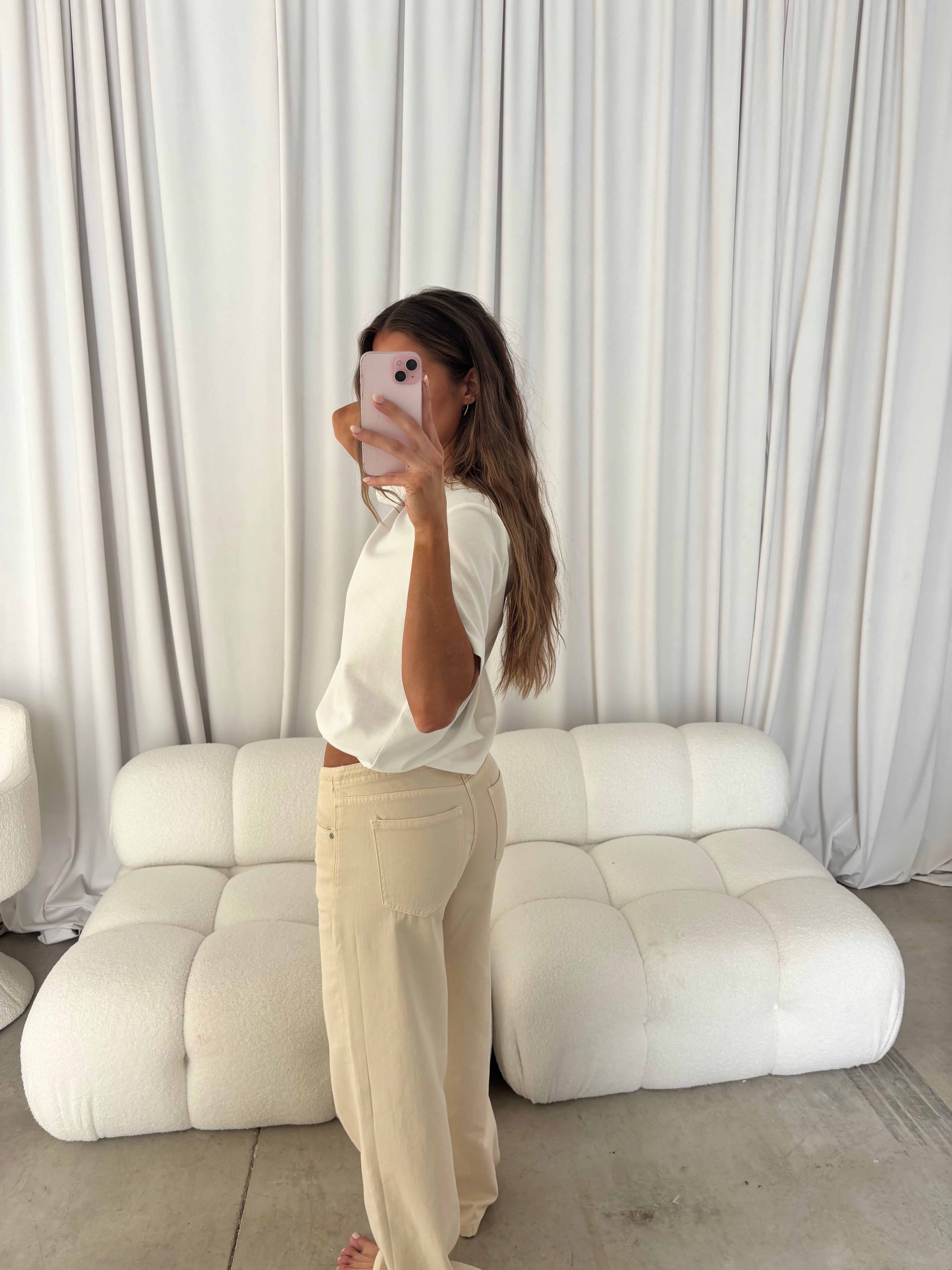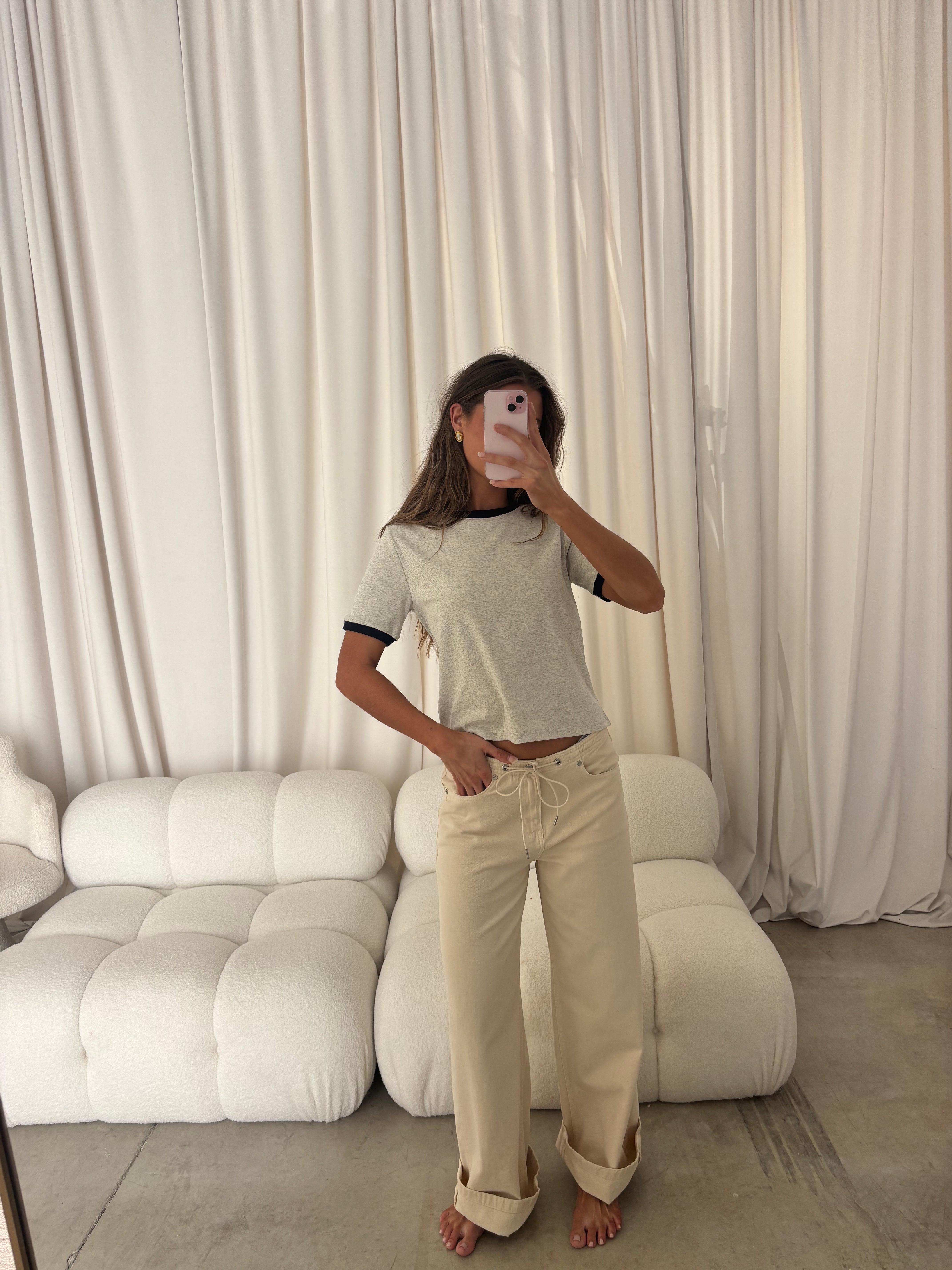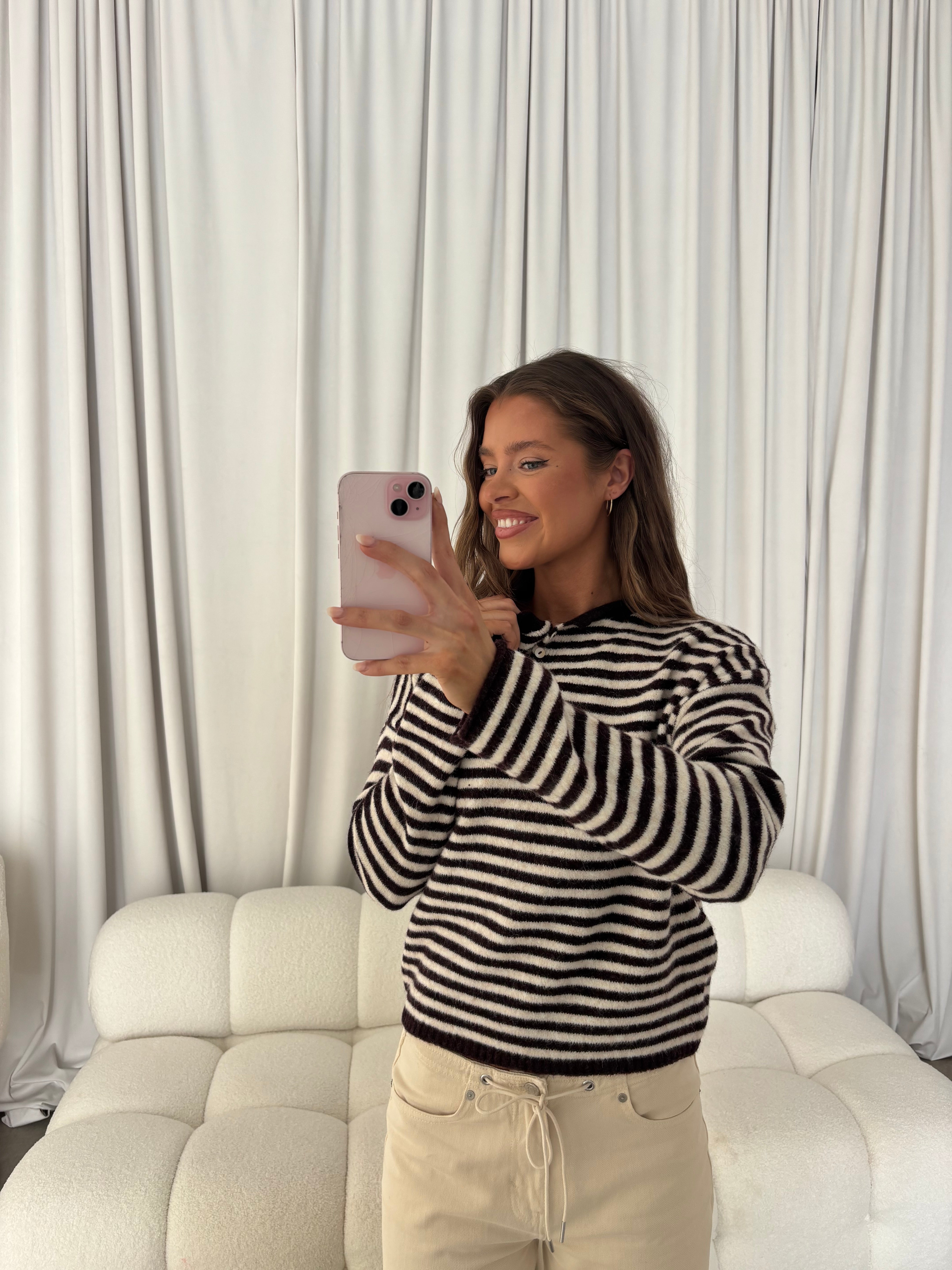 Imogen Striped 3/4 Sleeve Cardigan Top in Taupe Cream