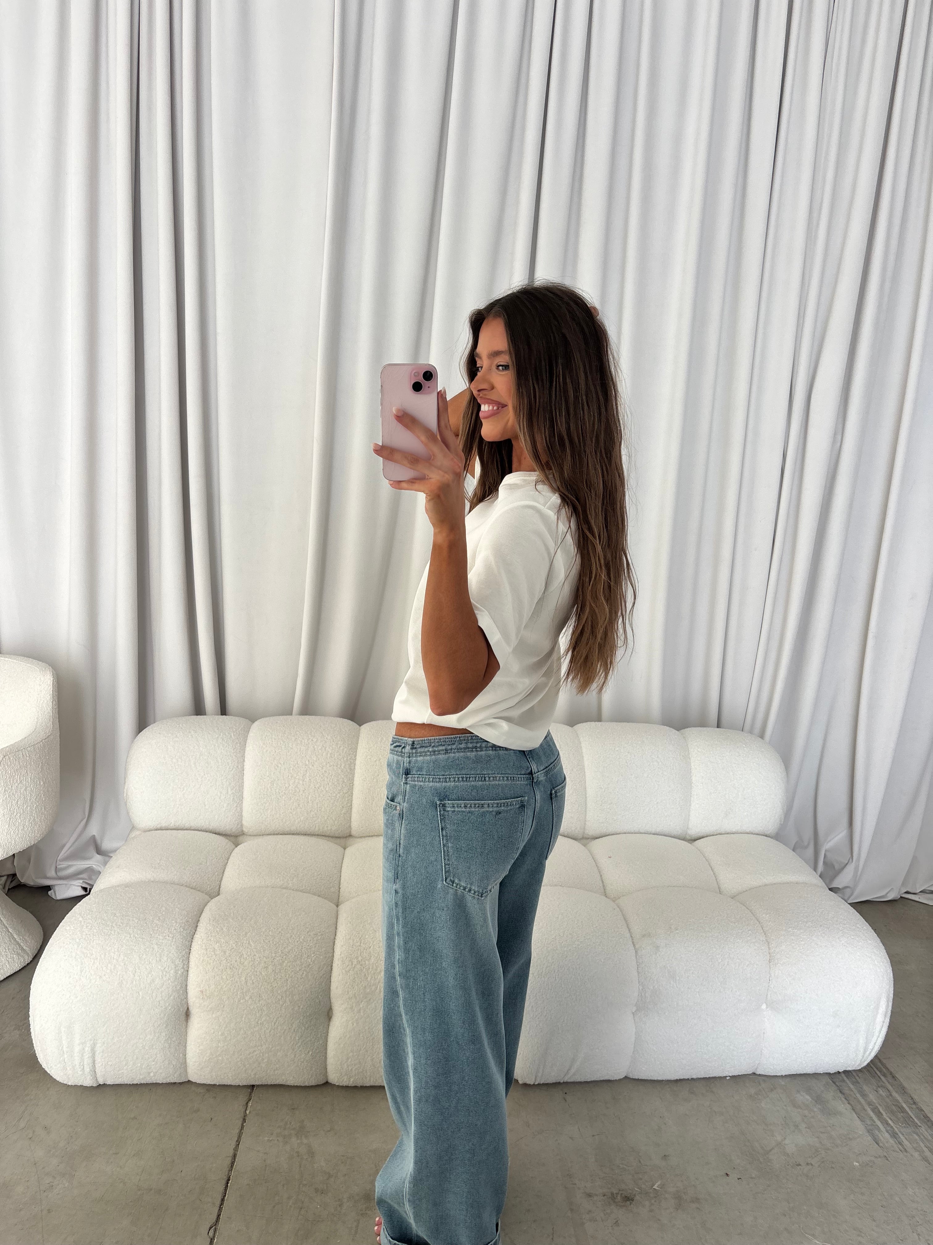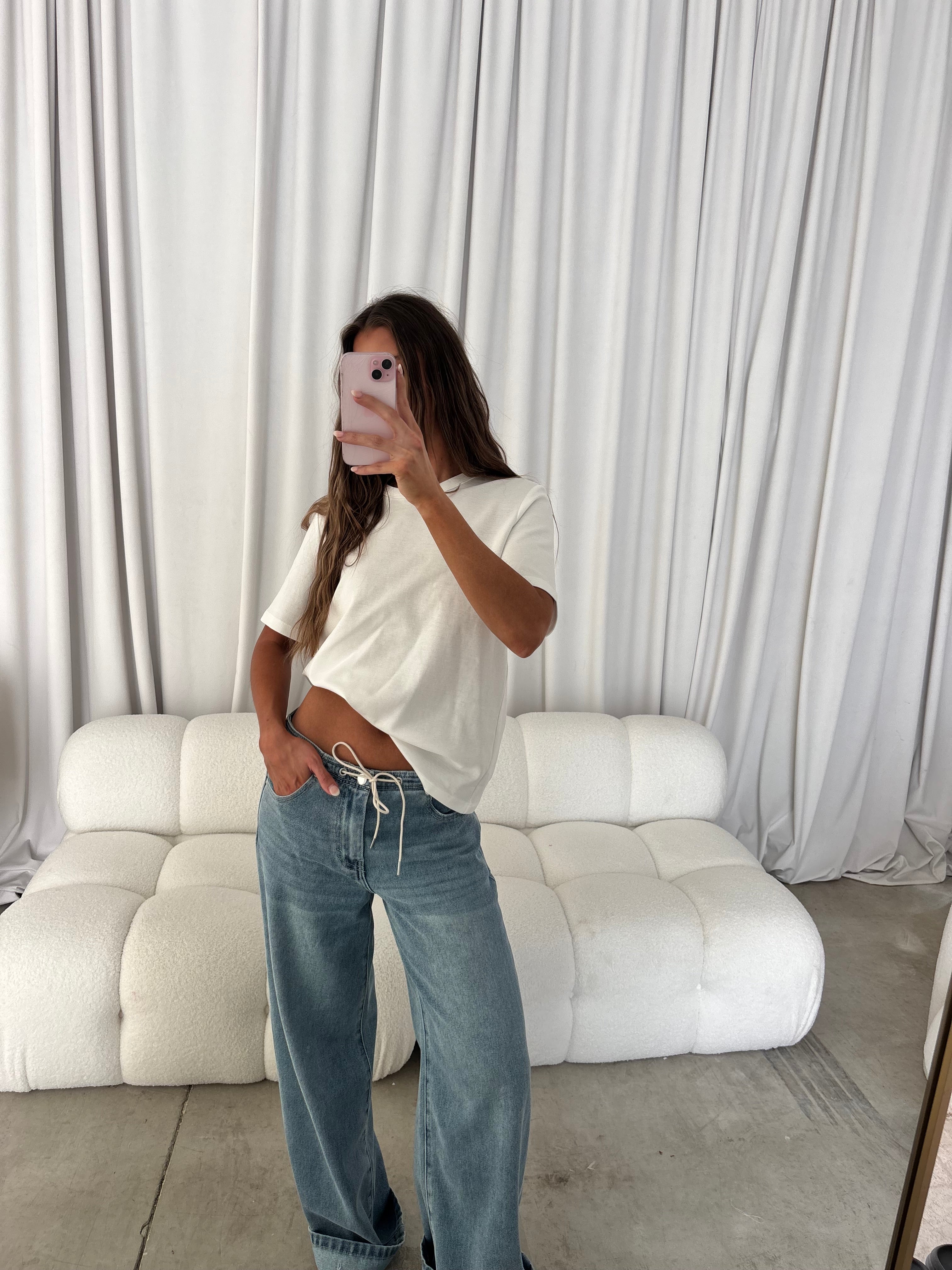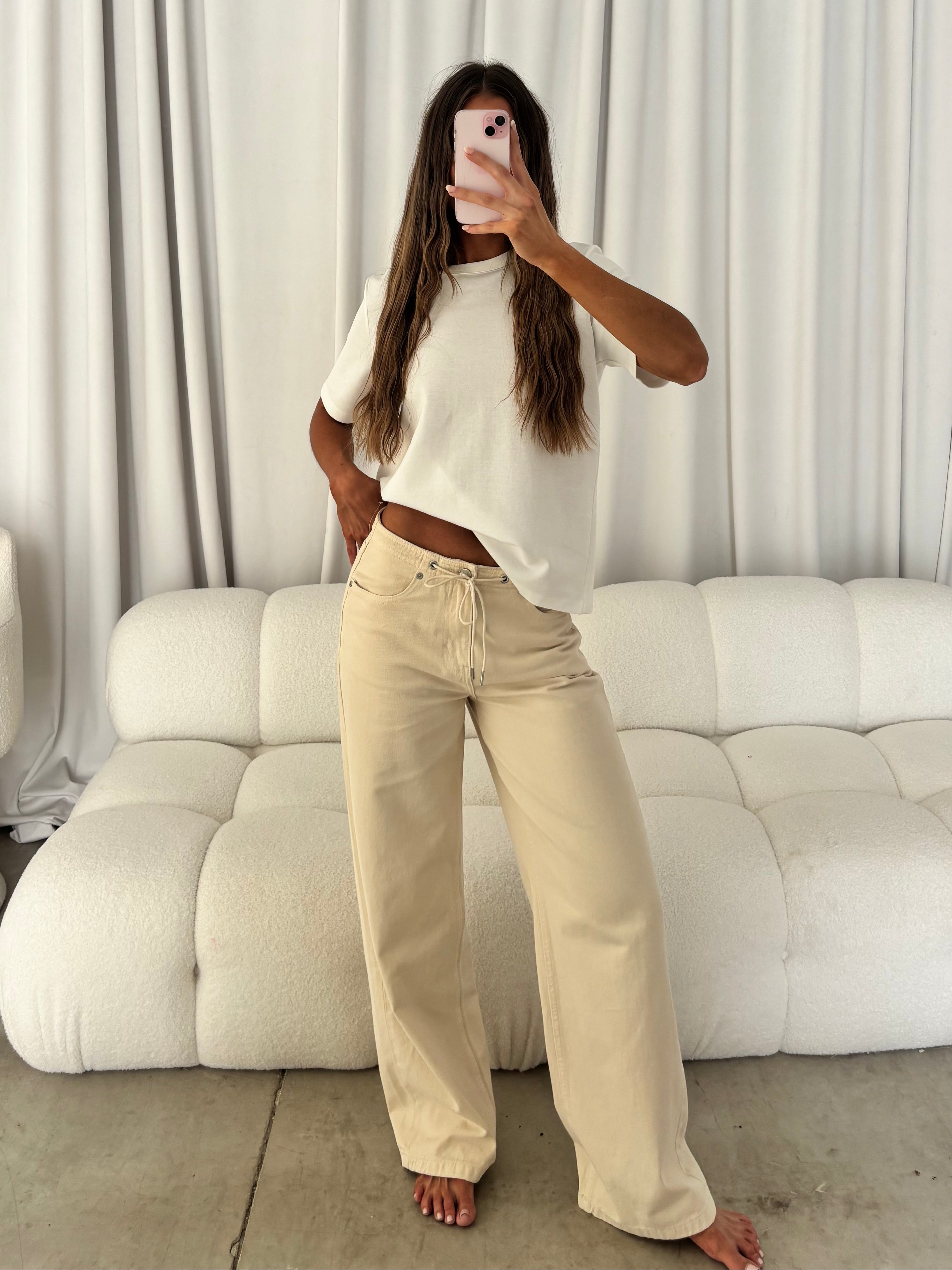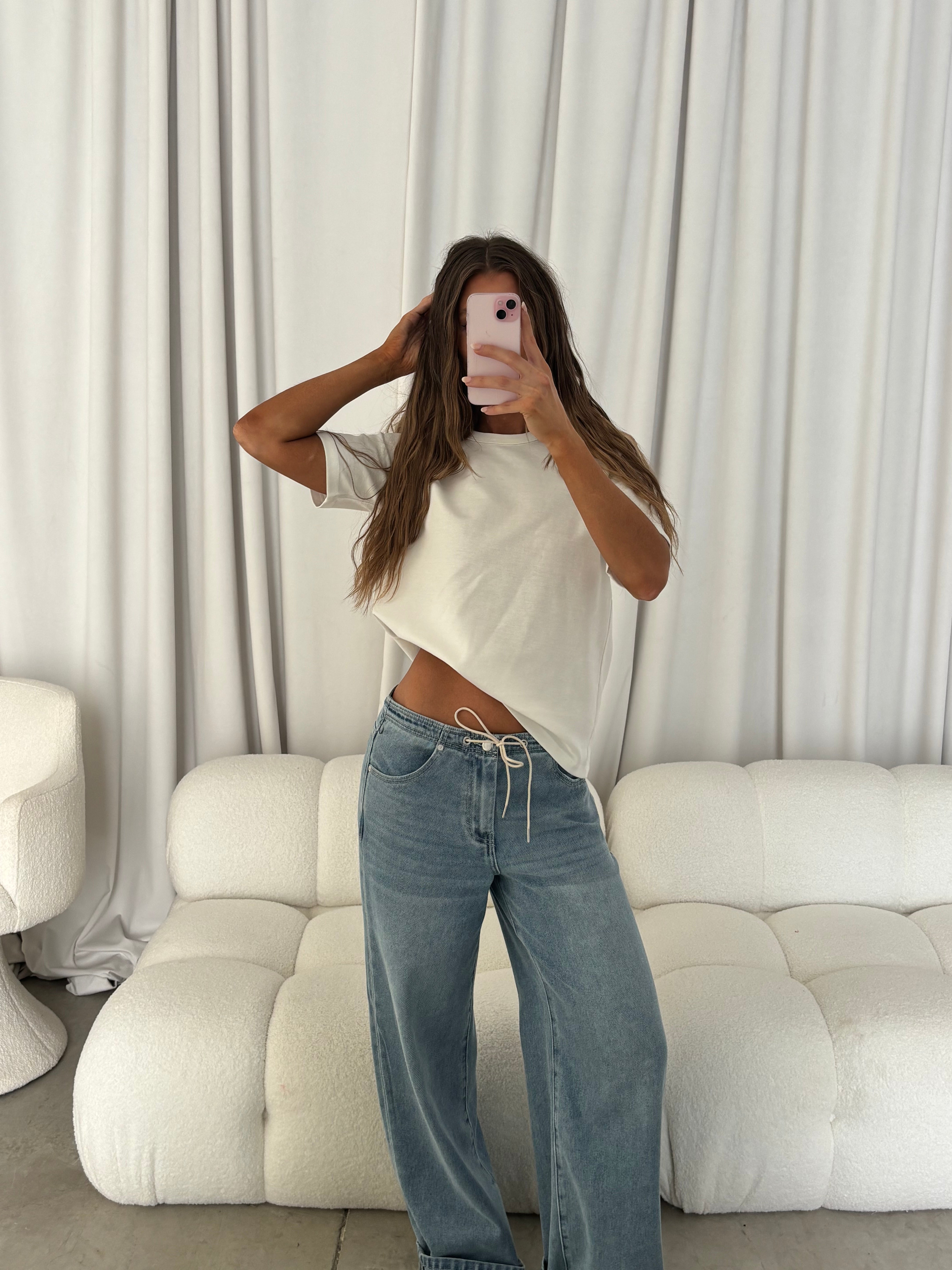 Lia Drawstring Wide Leg Pants in Blue Bell