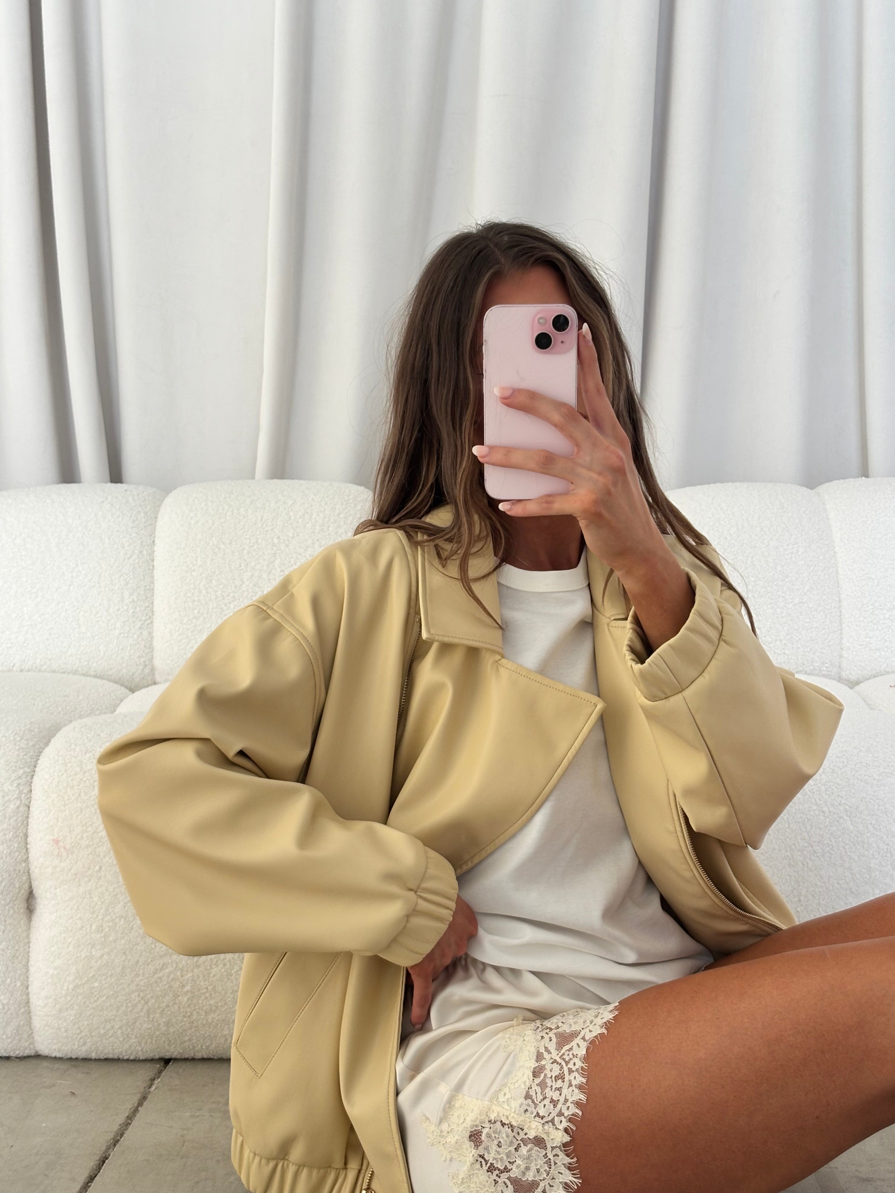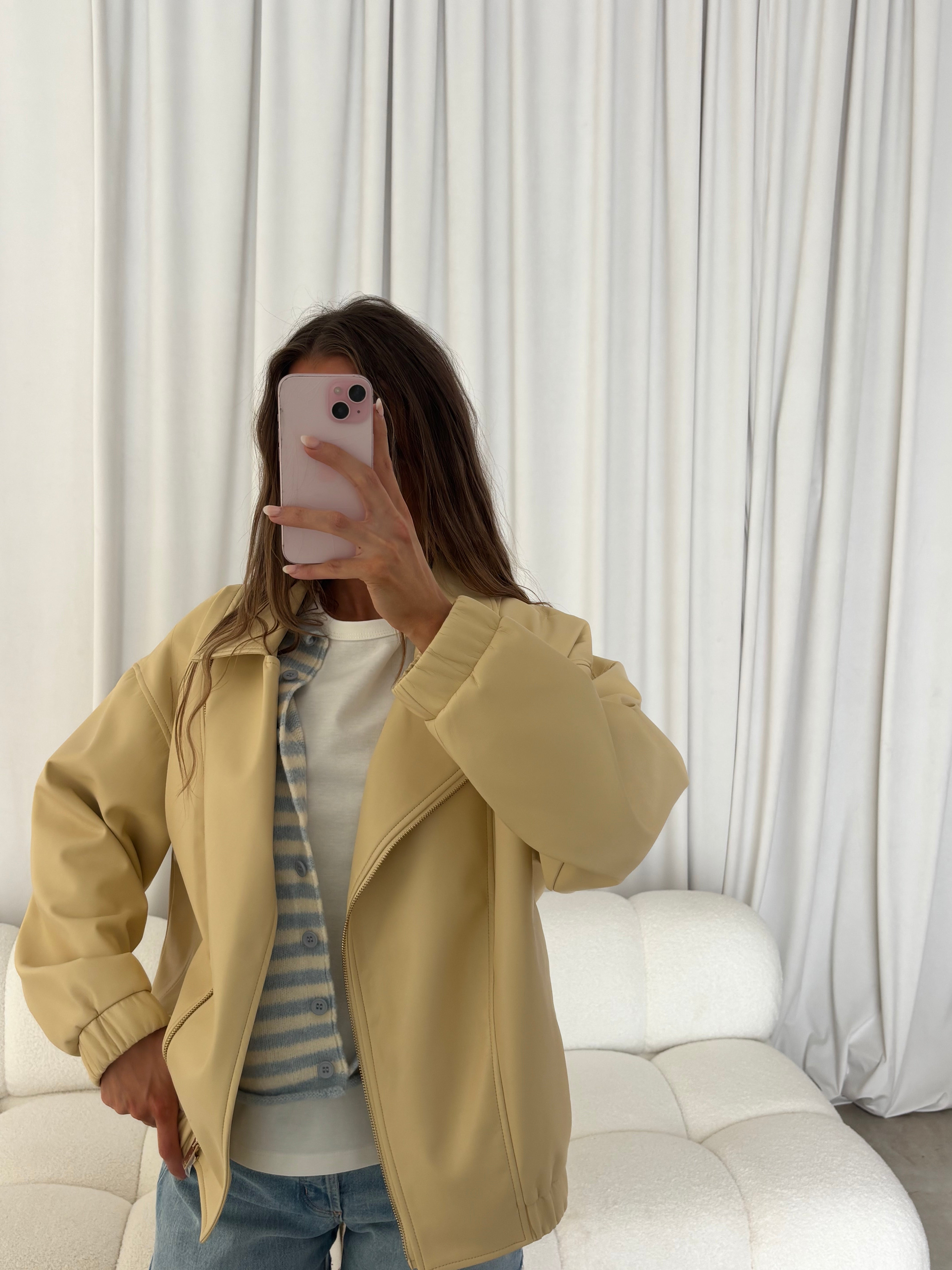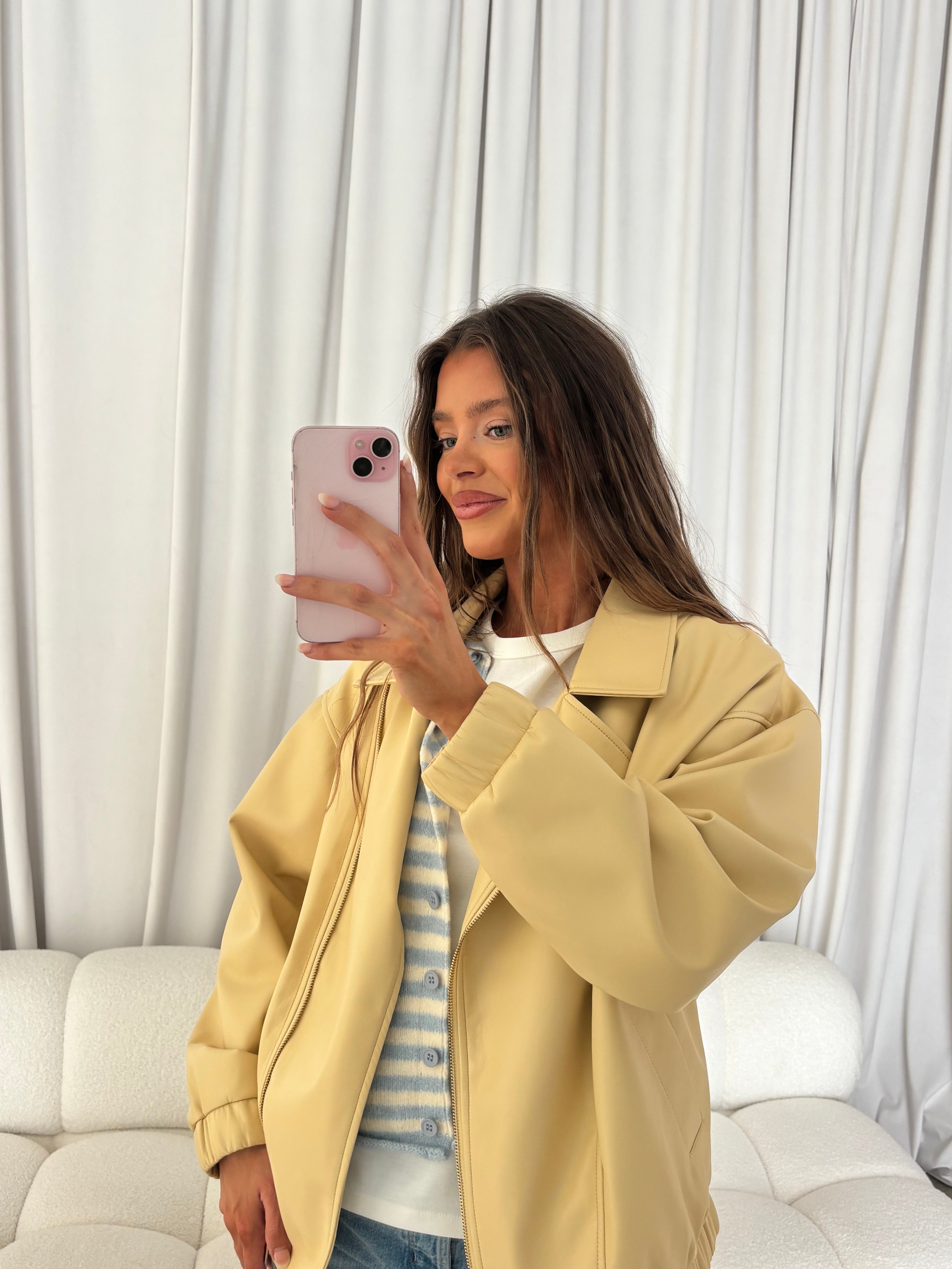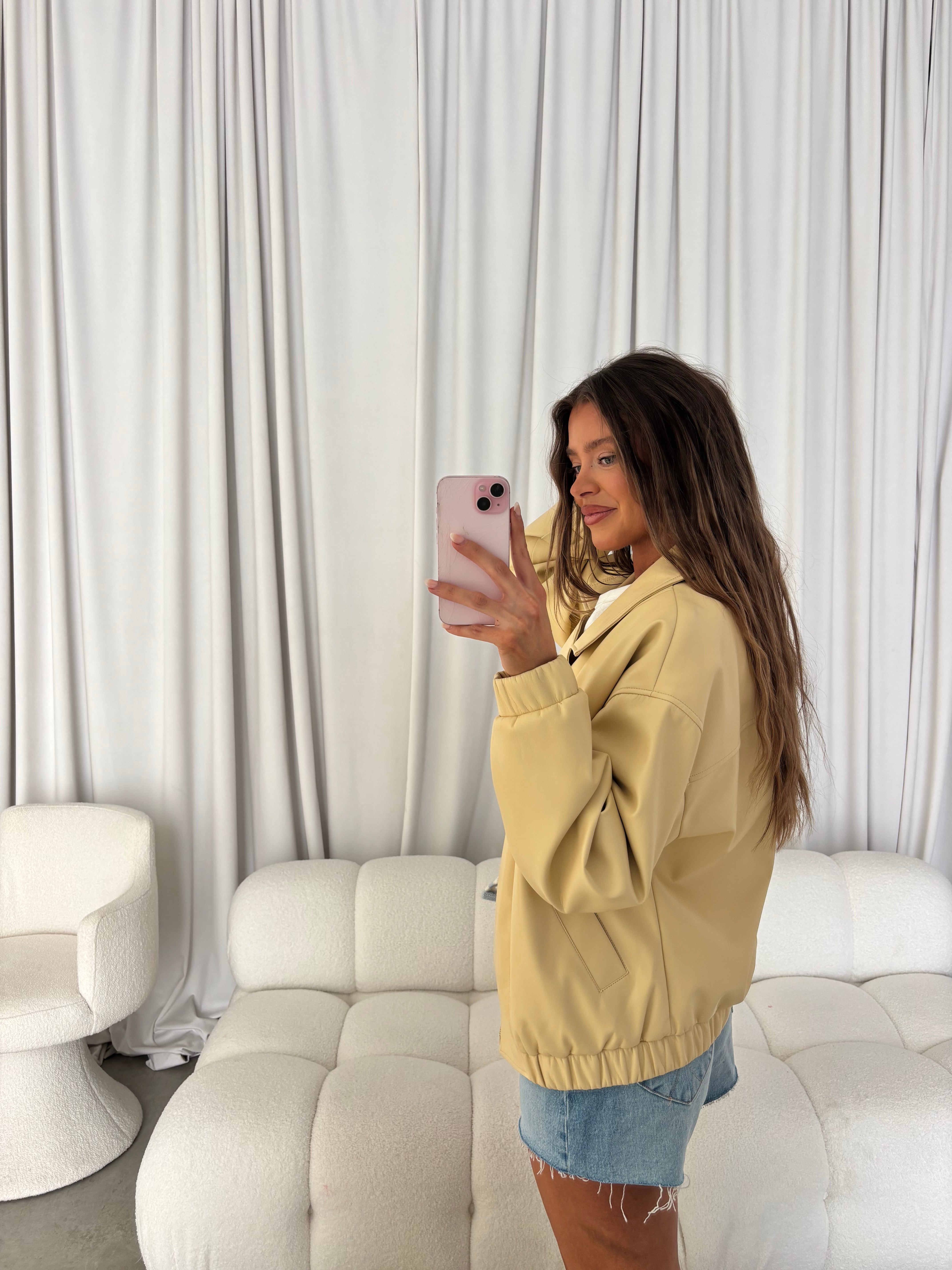 Pauline 100% Cotton Puff Sleeve Button Up Sweater Top in Lemon