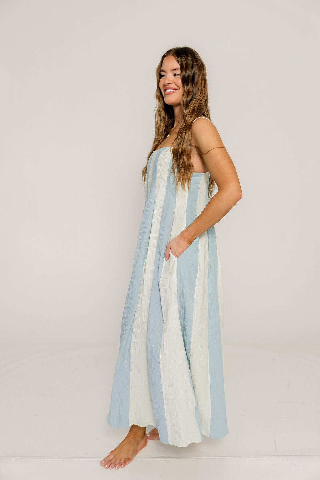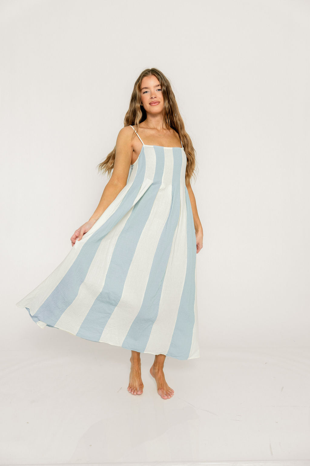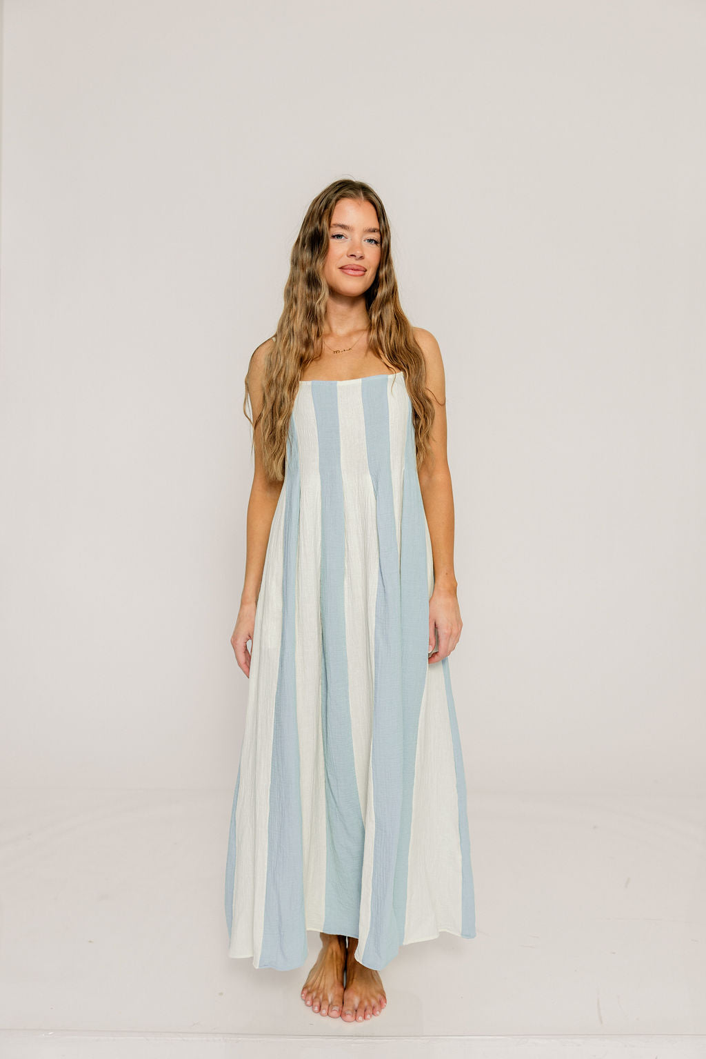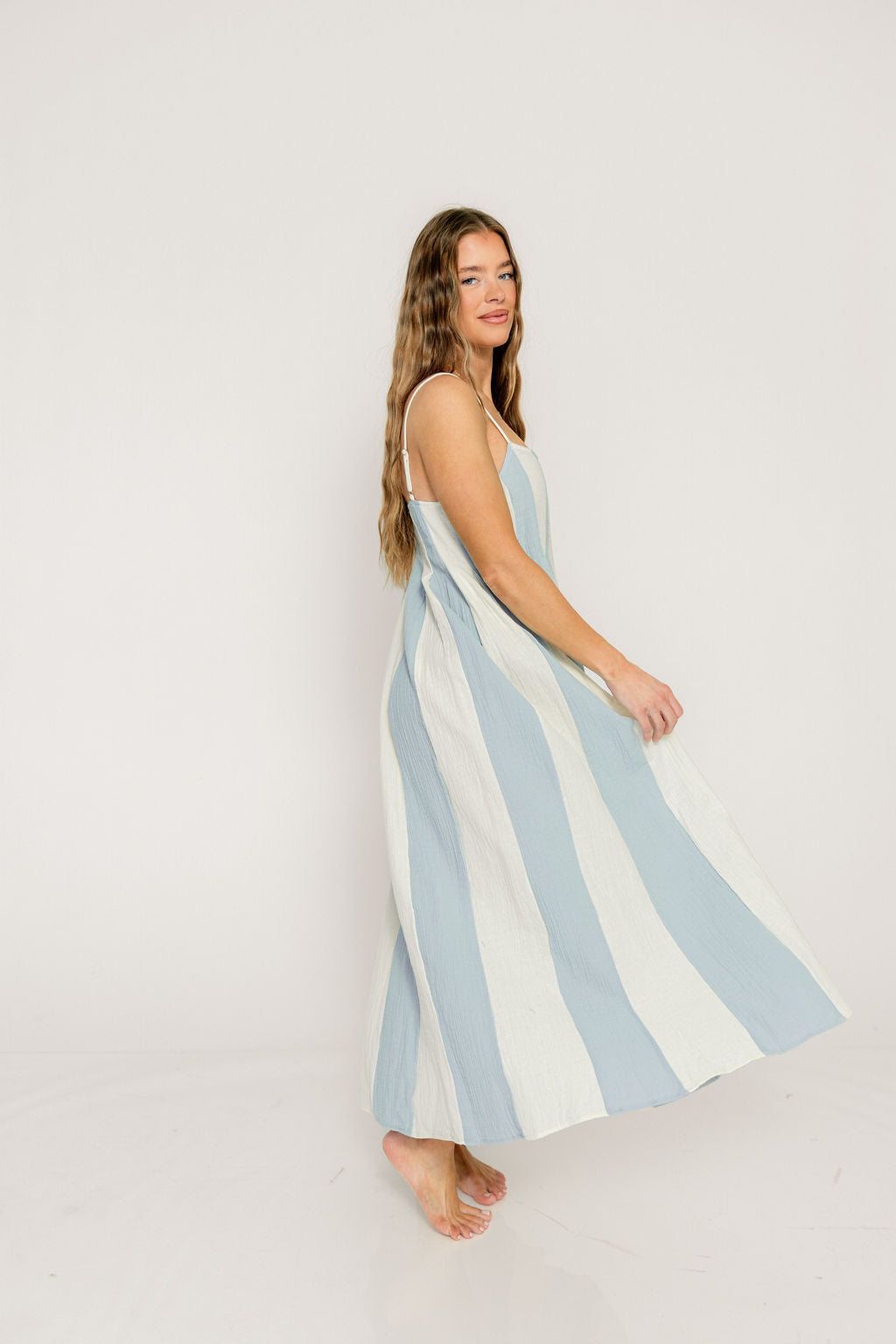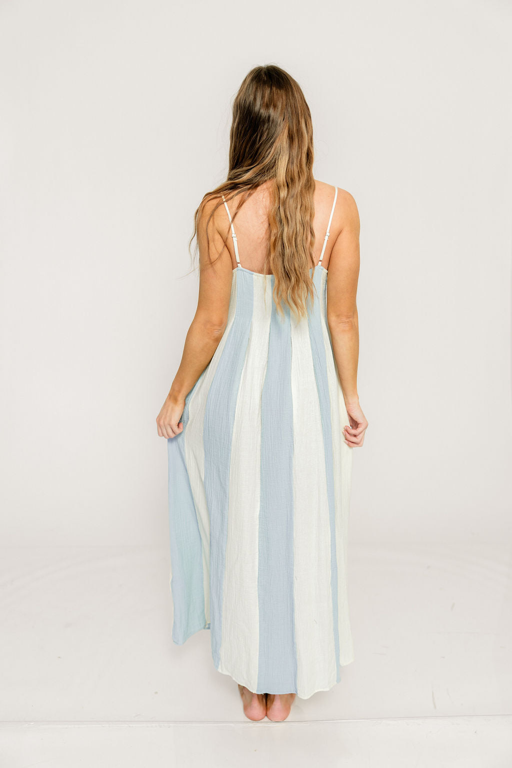 Anna Cotton-Blend Button Down Maxi Dress in Baby Blue - Bump Friendly *2/5 PRE-ORDER*