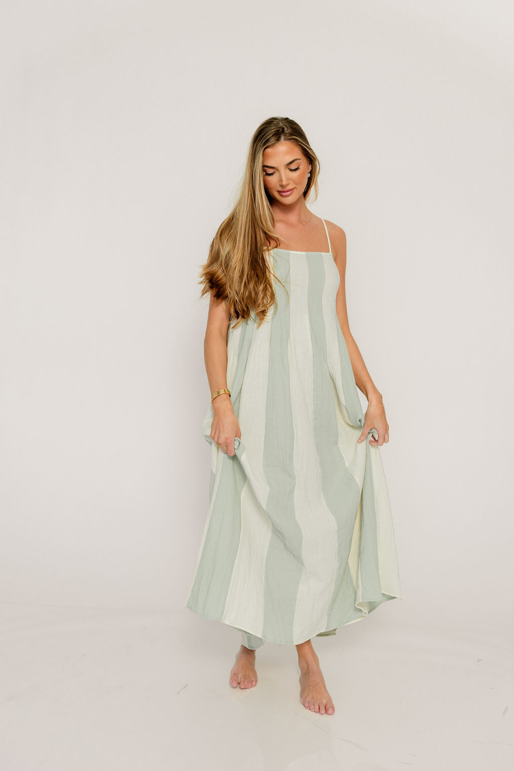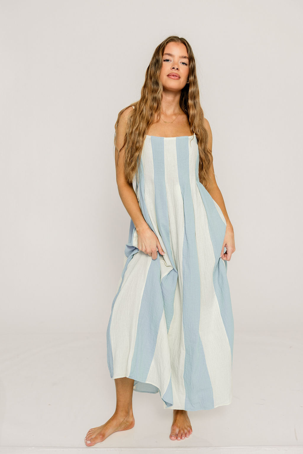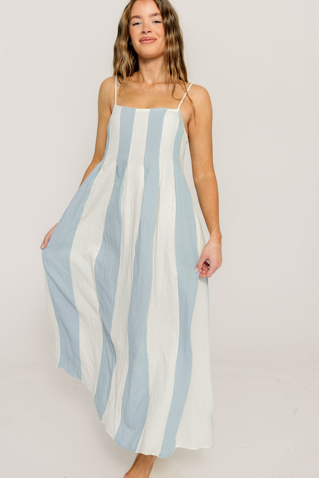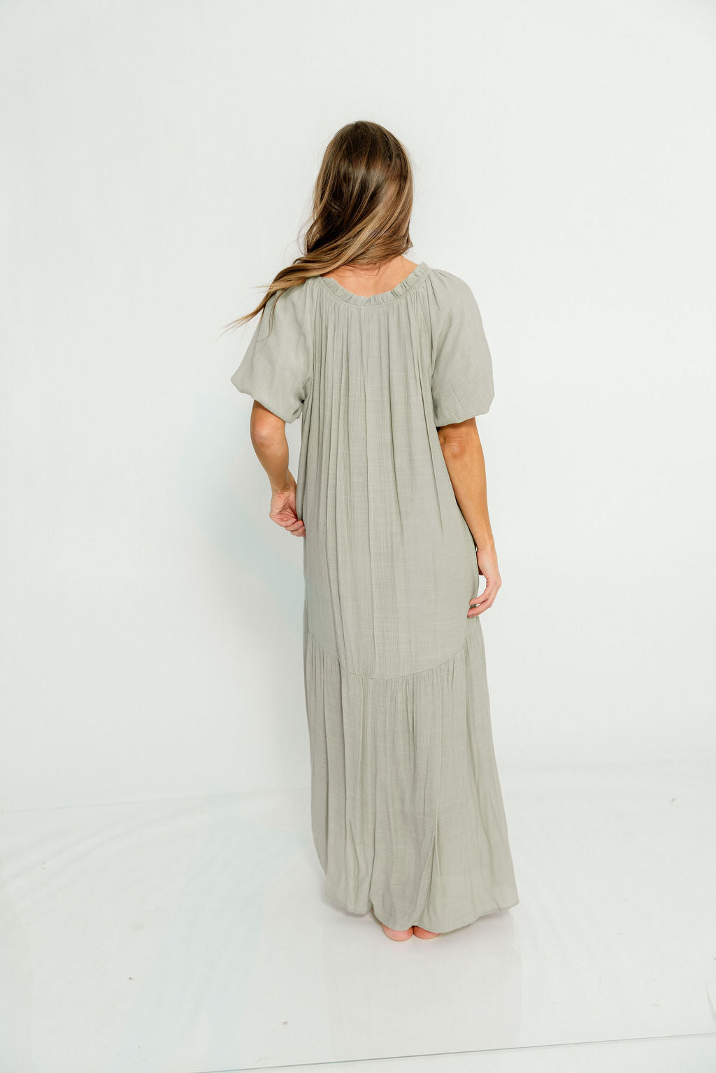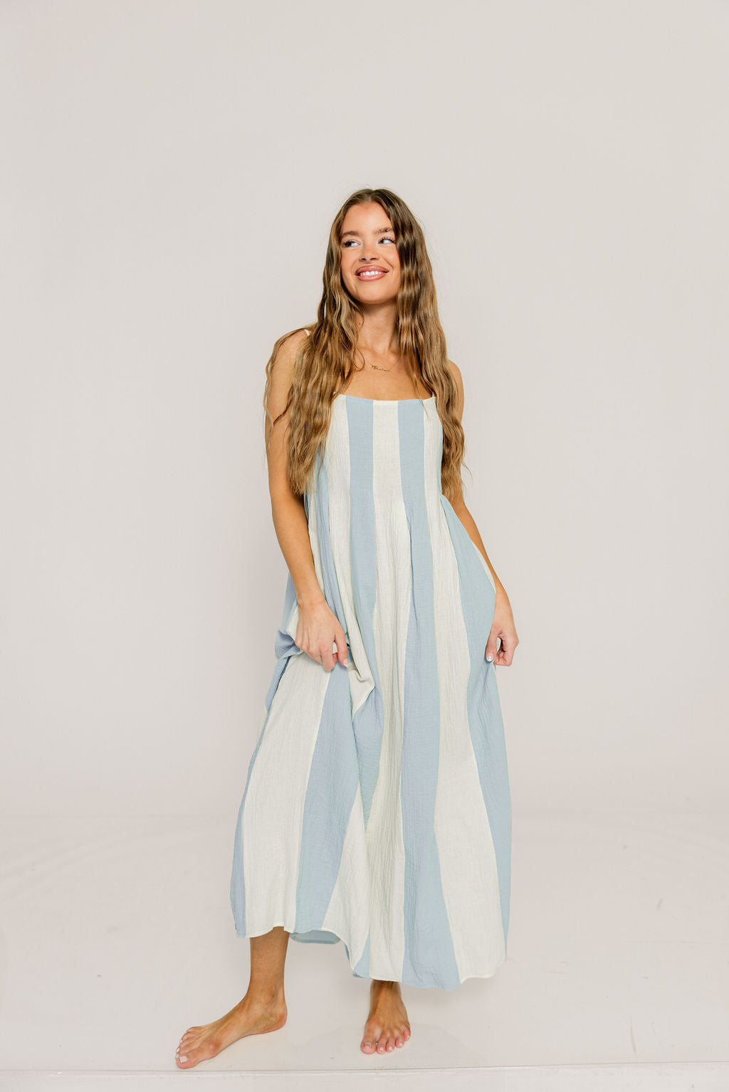 Anna Cotton-Blend Button Down Maxi Dress in Baby Blue - Bump Friendly *2/5 PRE-ORDER*