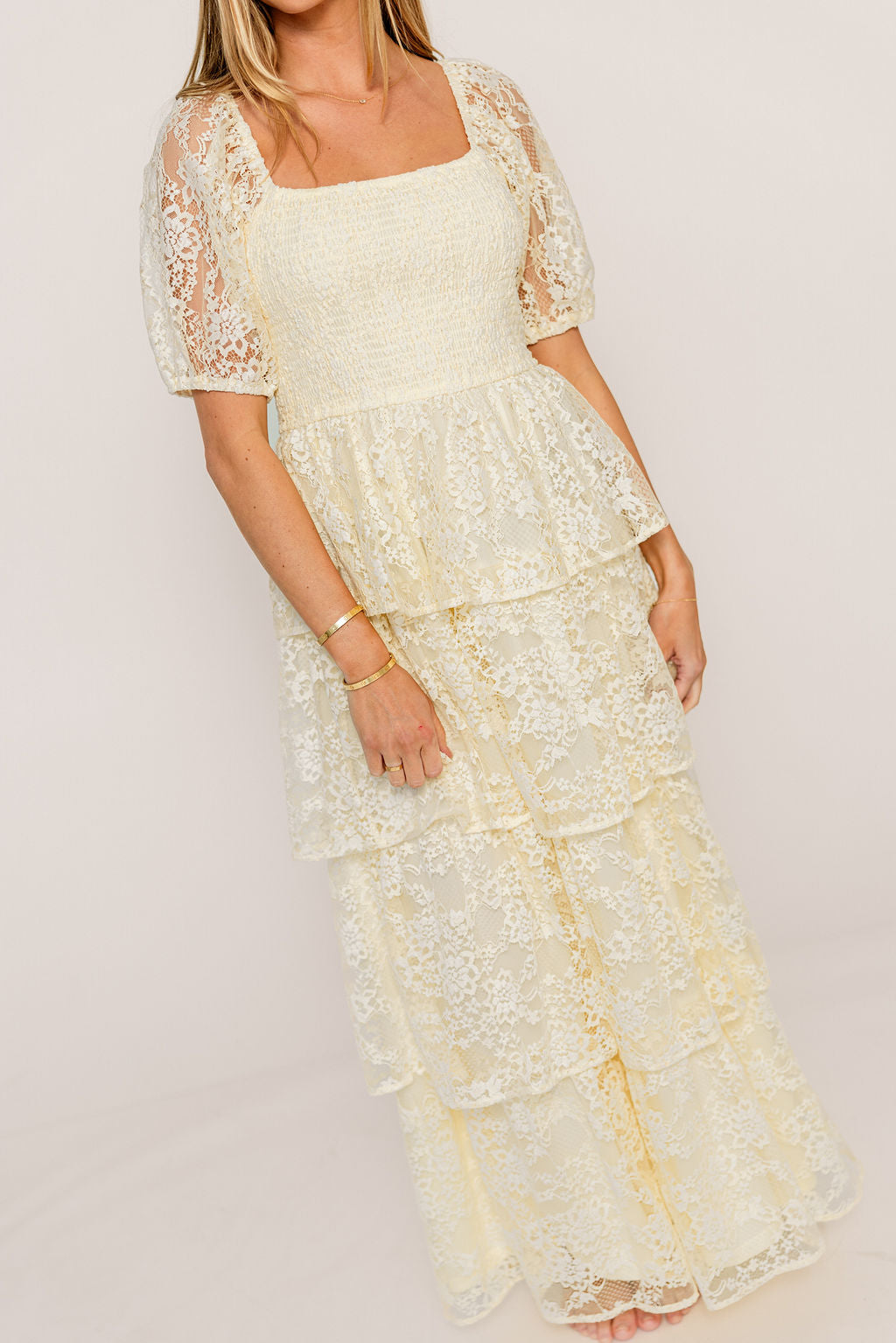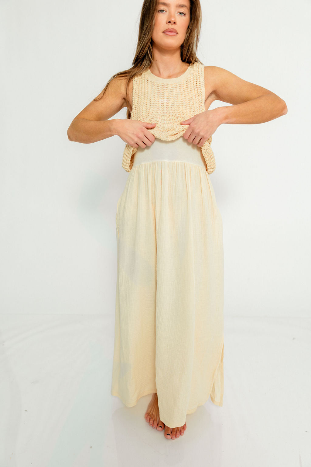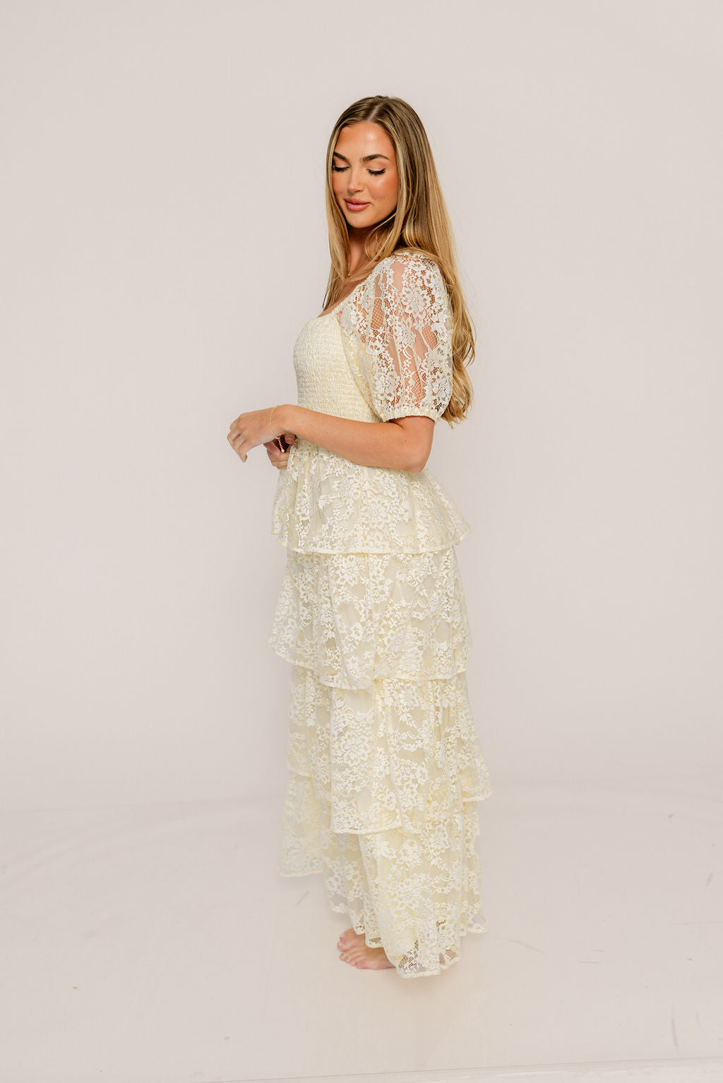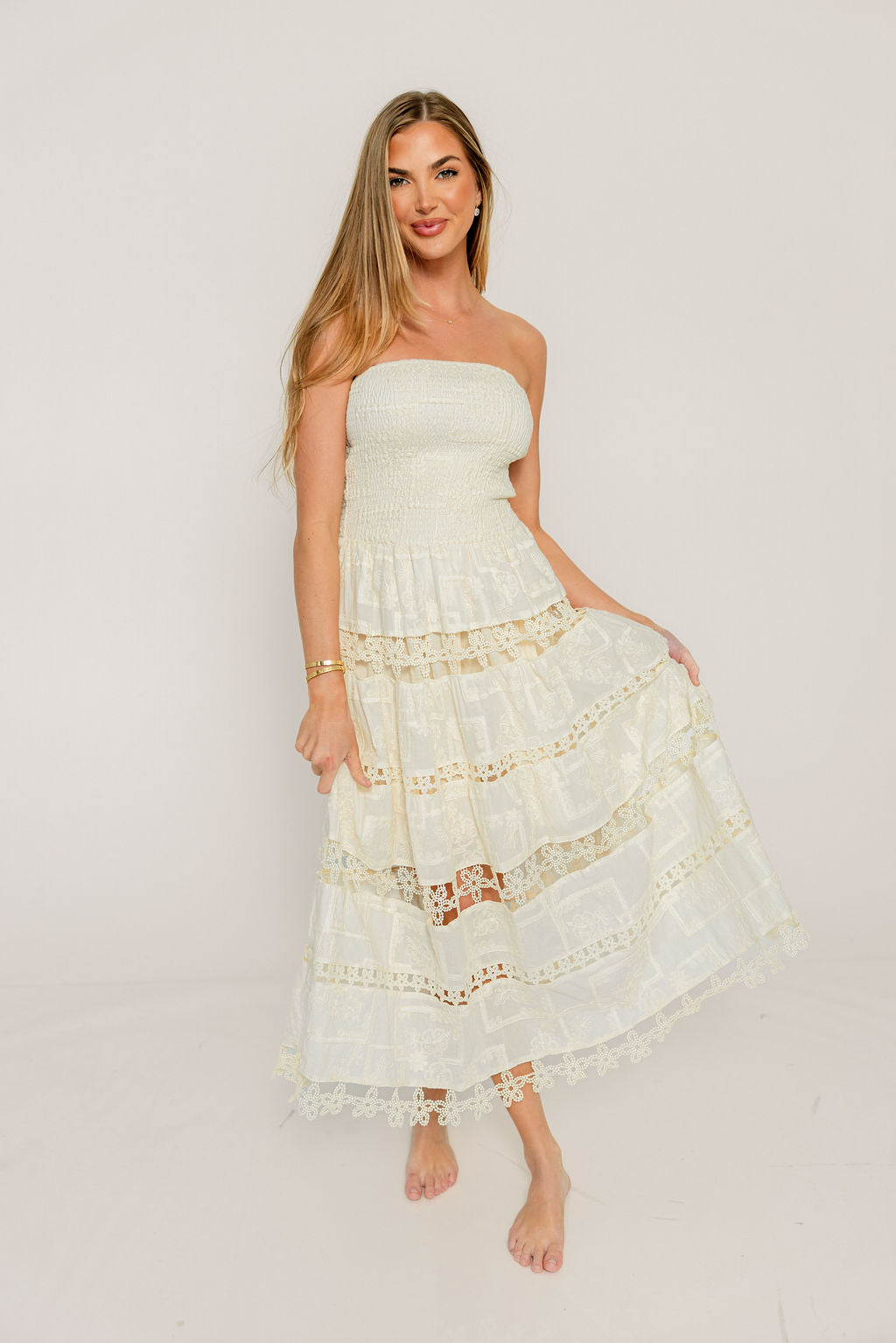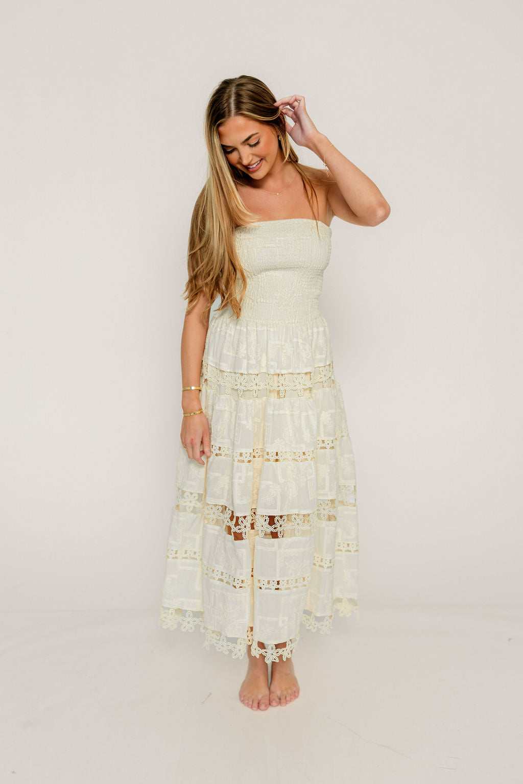 Miriam Cotton Lace Inset Maxi Dress in Buttercream