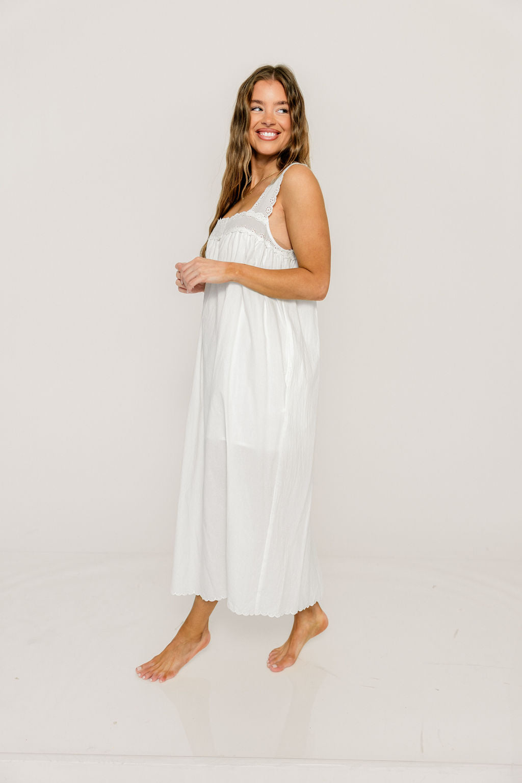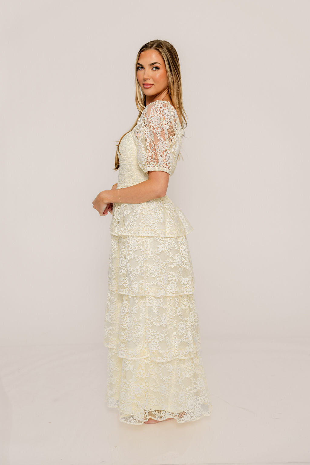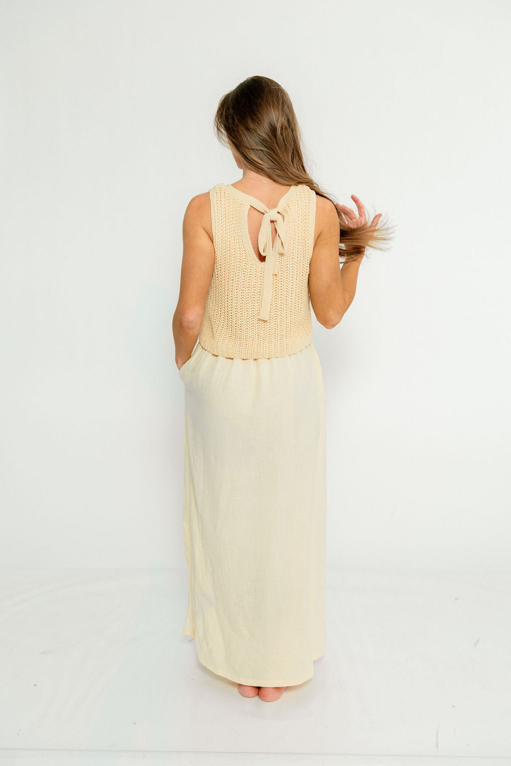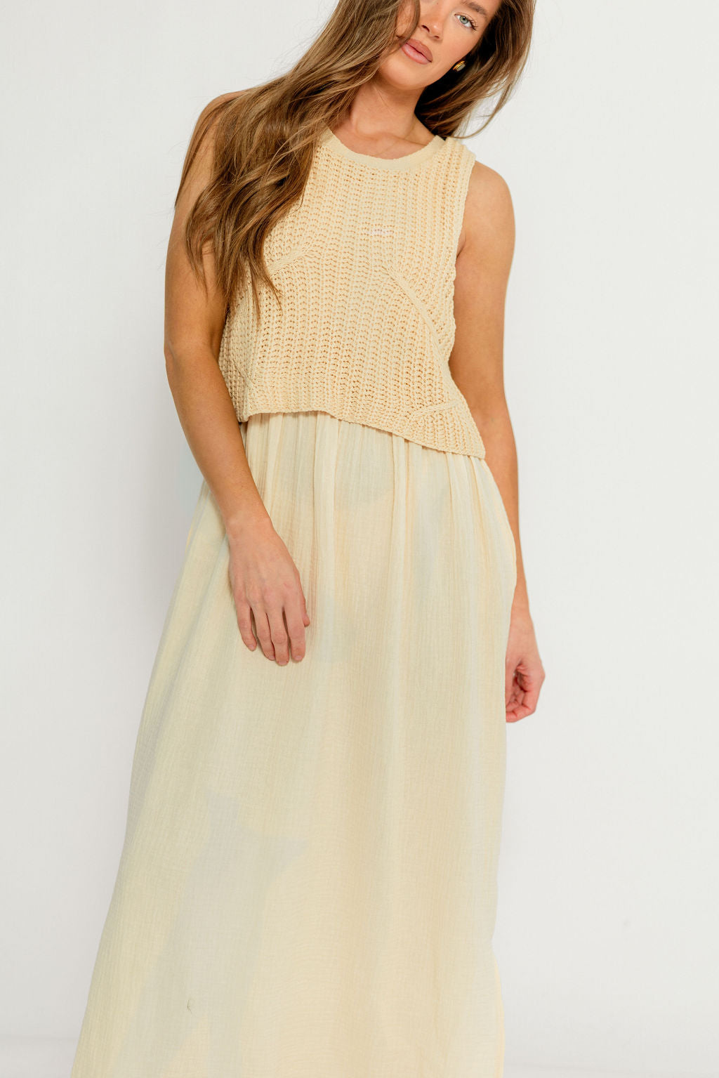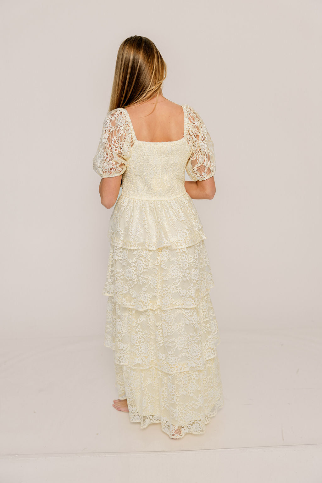 Miriam Cotton Lace Inset Maxi Dress in Buttercream