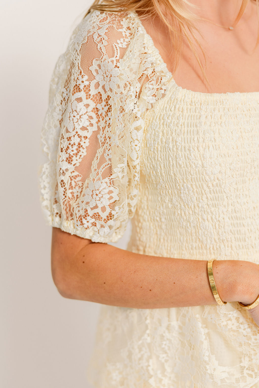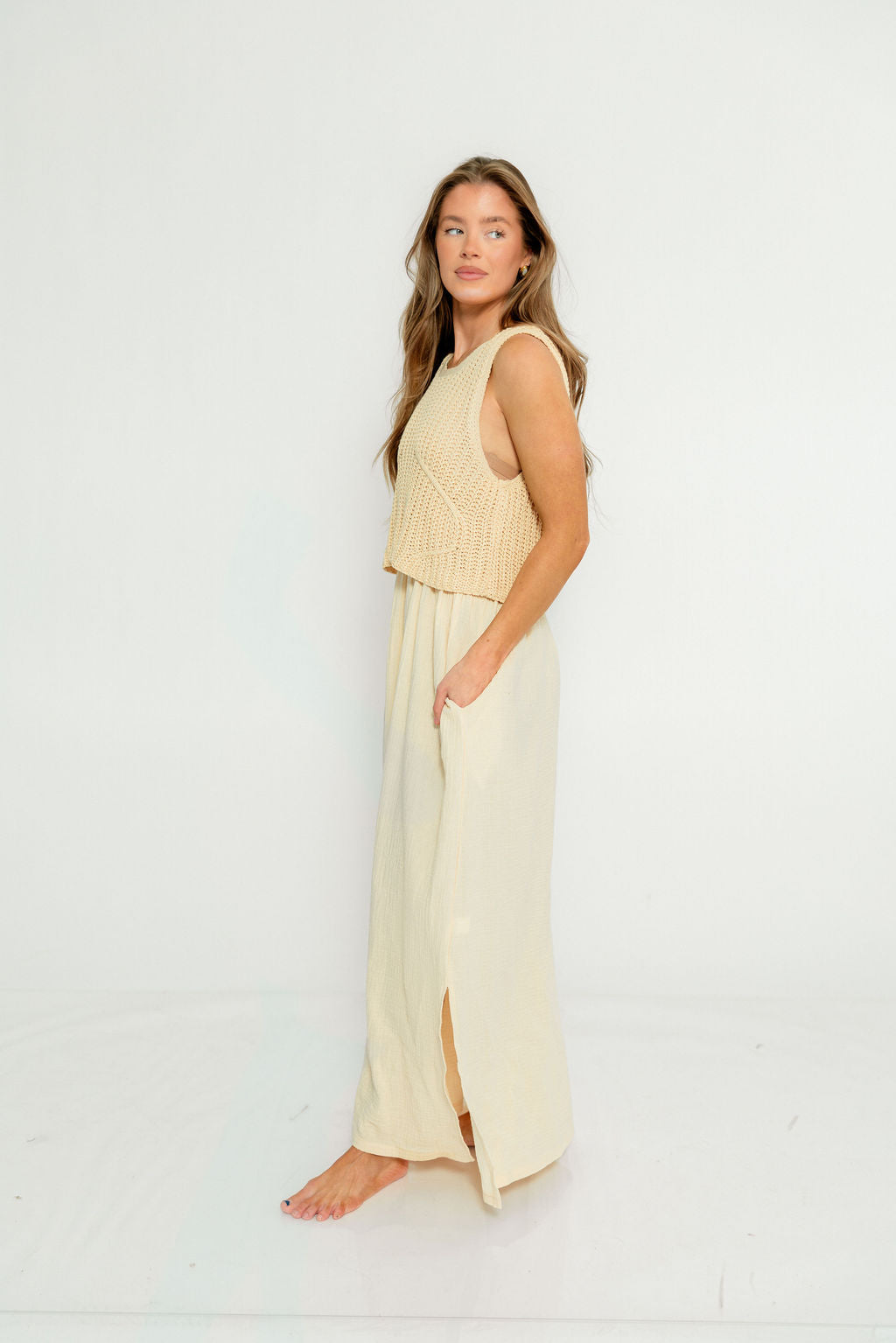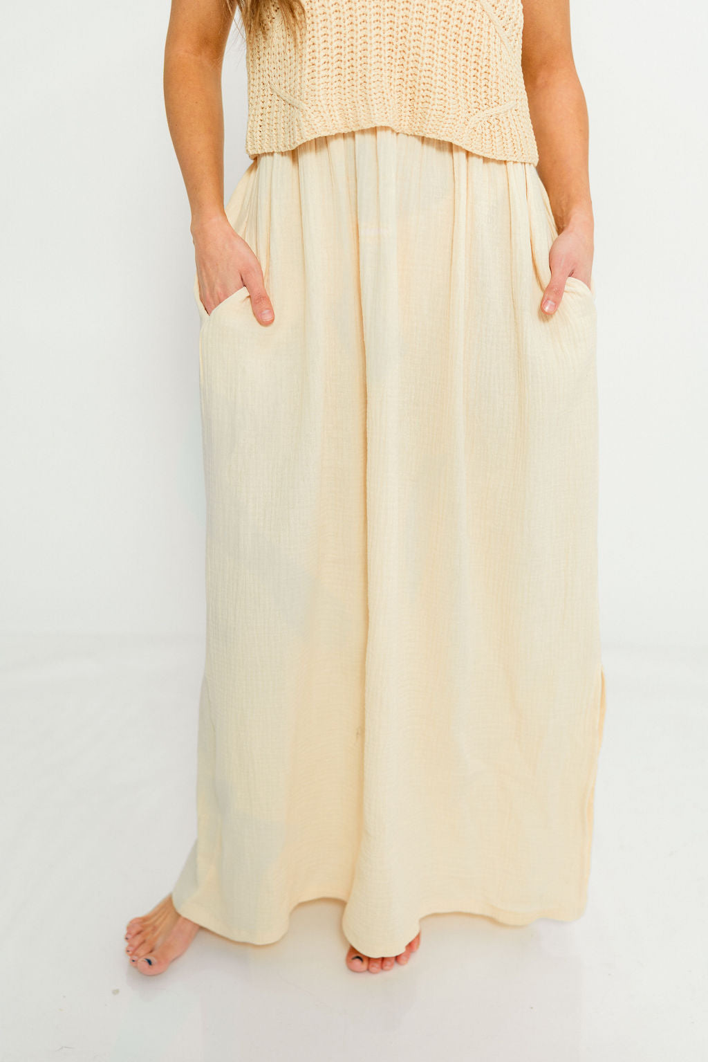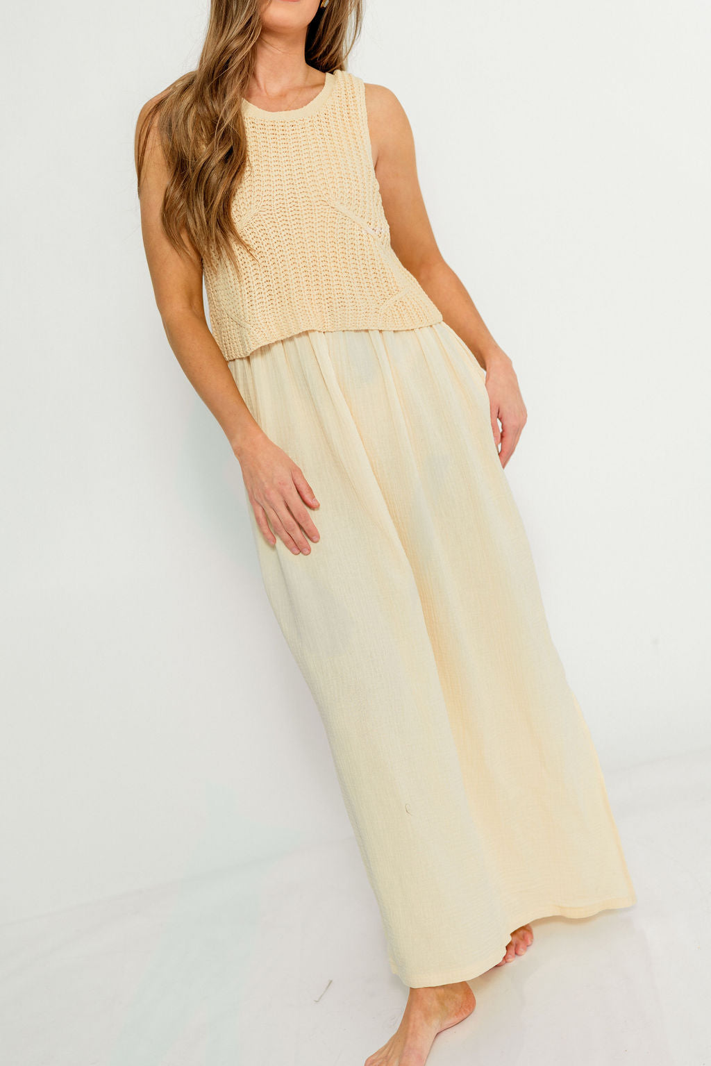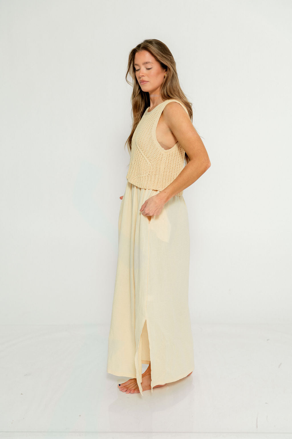 Miriam Cotton Lace Inset Maxi Dress in Buttercream