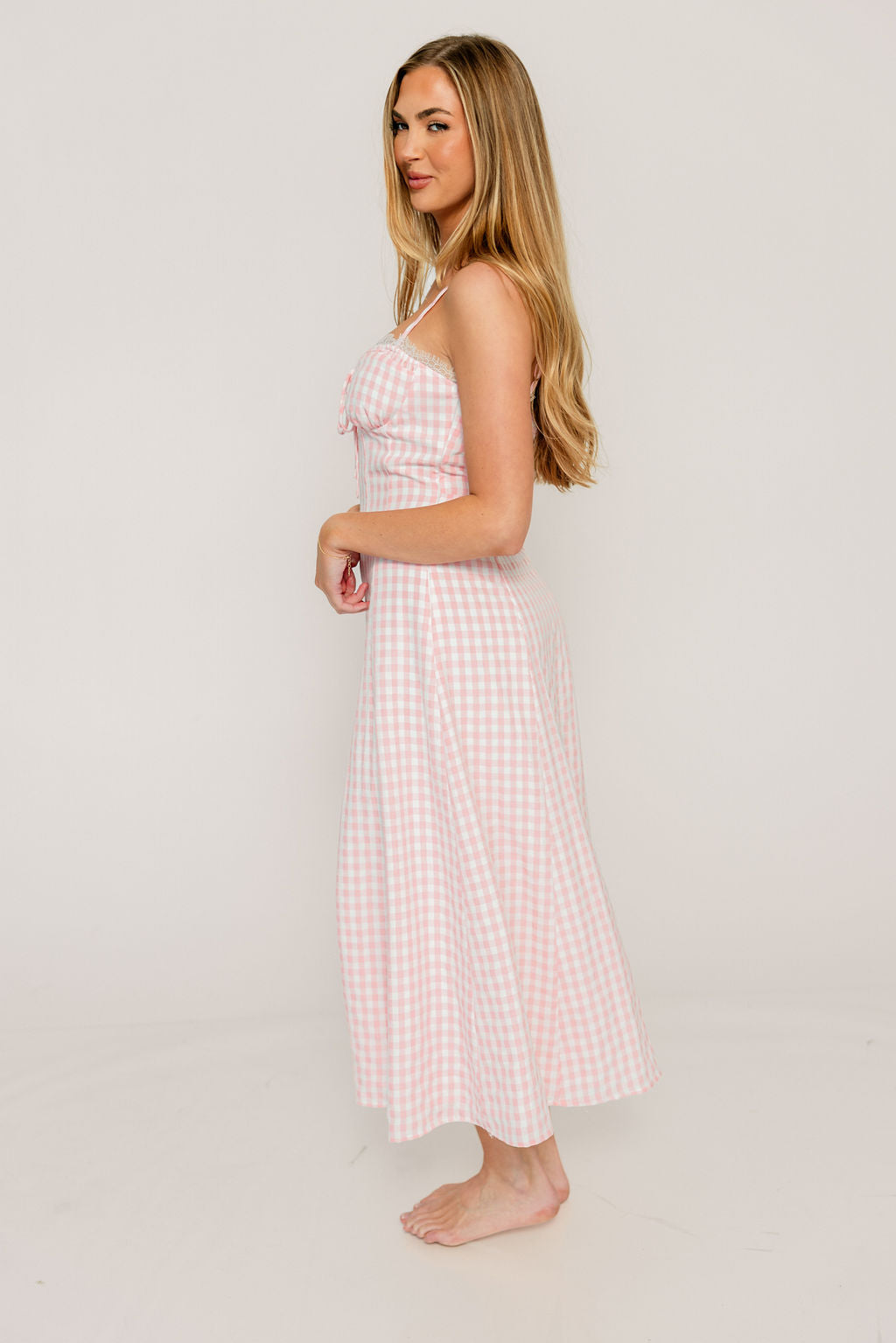 Katy Pleated Bodice Maxi Dress in Pink Floral