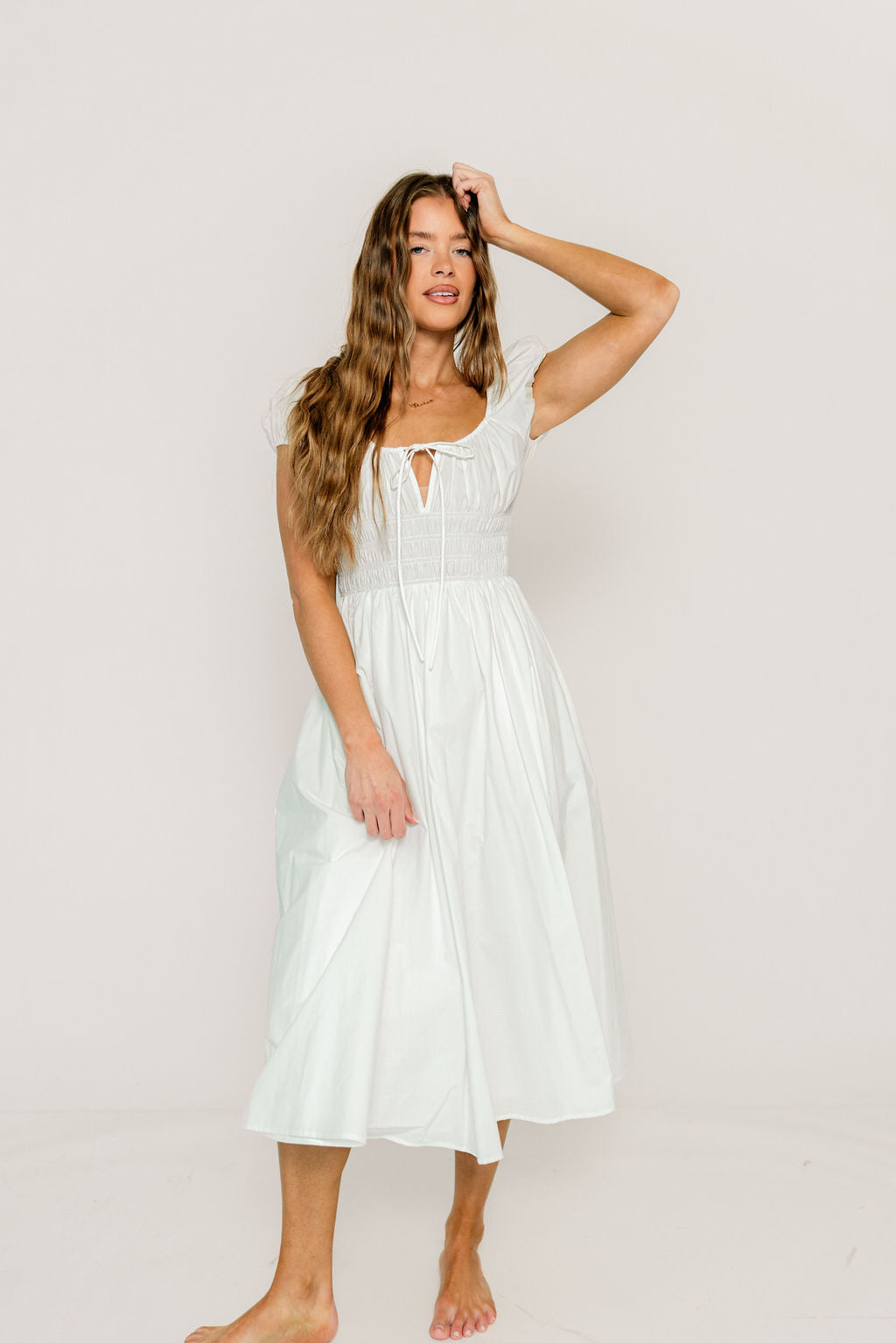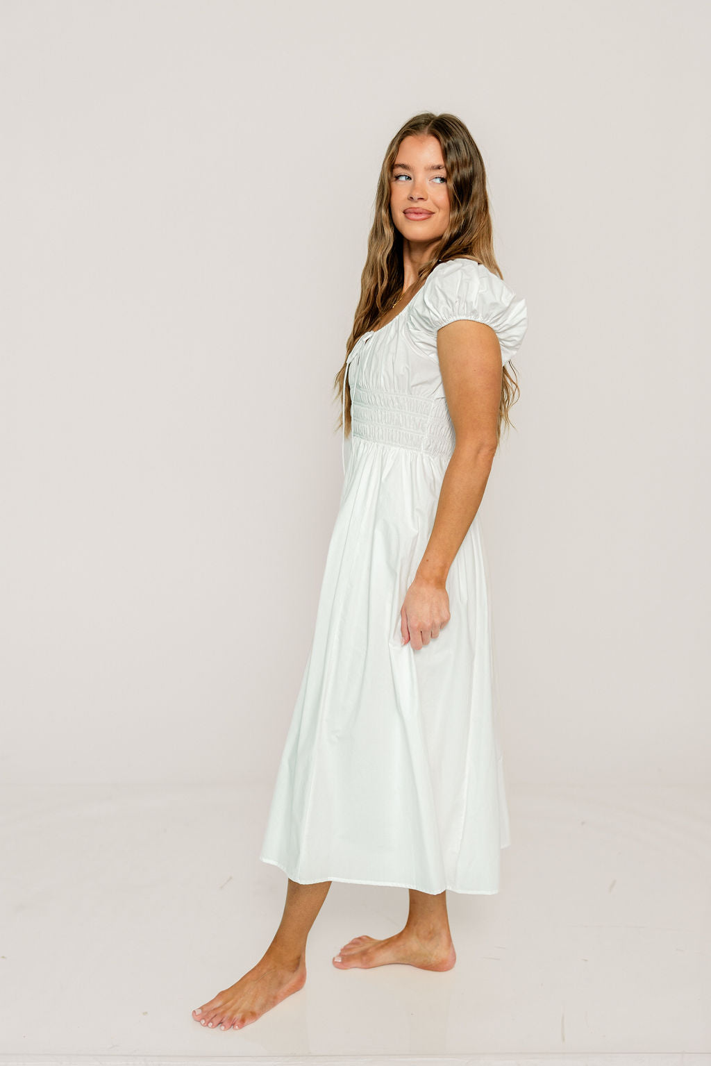 Anna Cotton-Blend Button Down Maxi Dress in Ivory - Bump Friendly *2/5 PRE-ORDER*