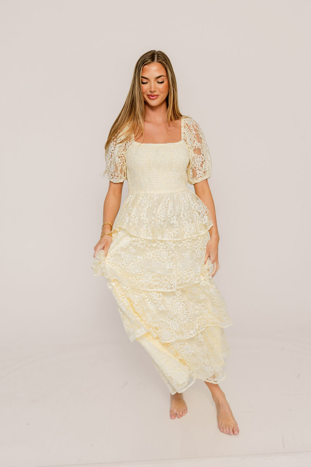 Arabelle Smocked Bow Detail Maxi Dress in Lemon Water