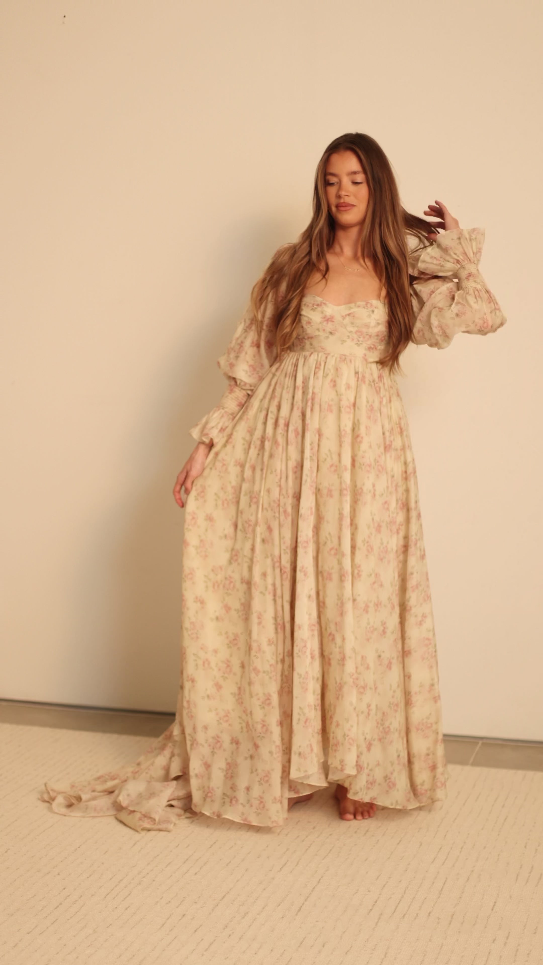 Daphne Maxi Dress in Beige Blue Floral - Bump Friendly *2/2 PRE-ORDER*