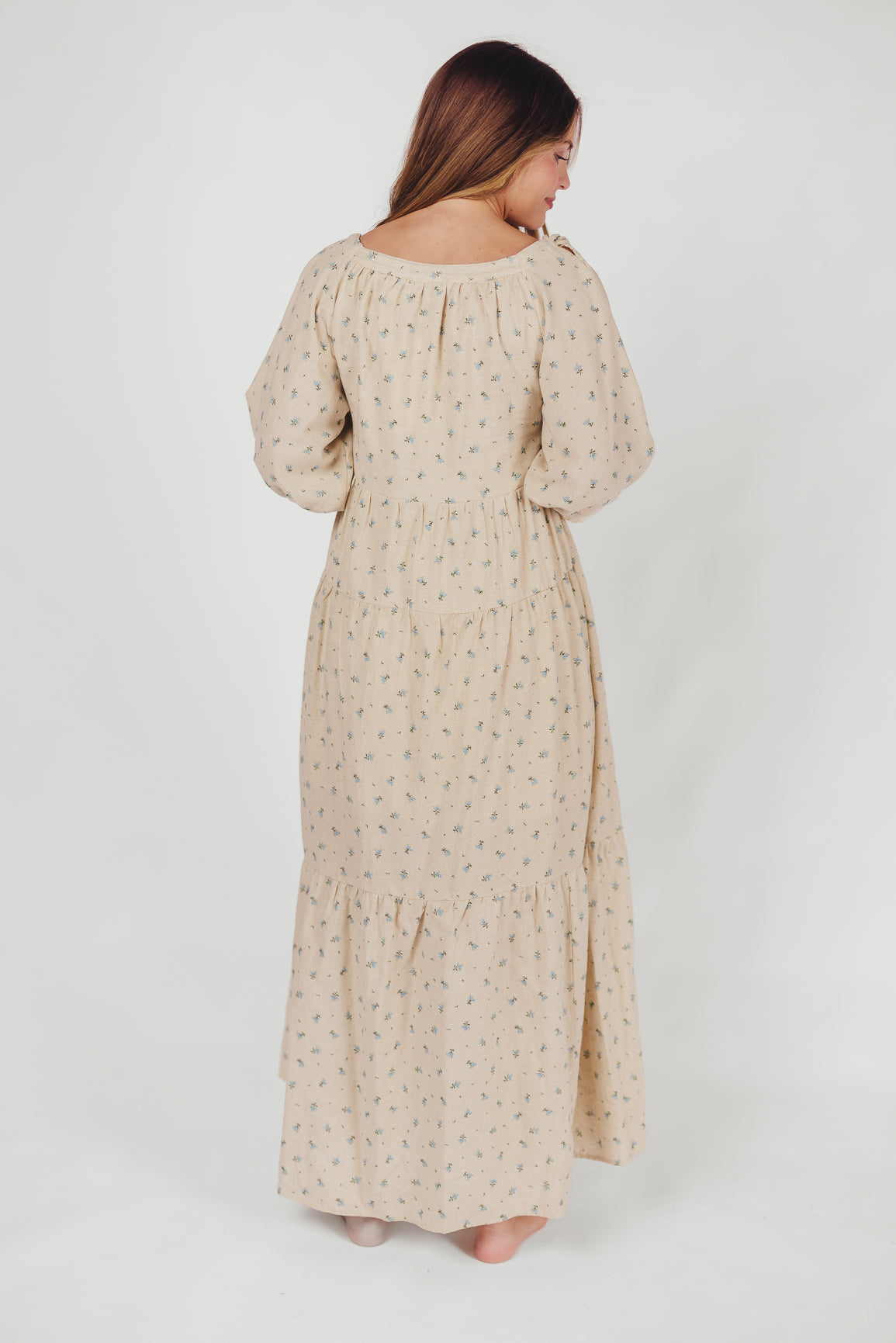 Cara 100% Cotton Maxi Dress in Blue/Brown Floral