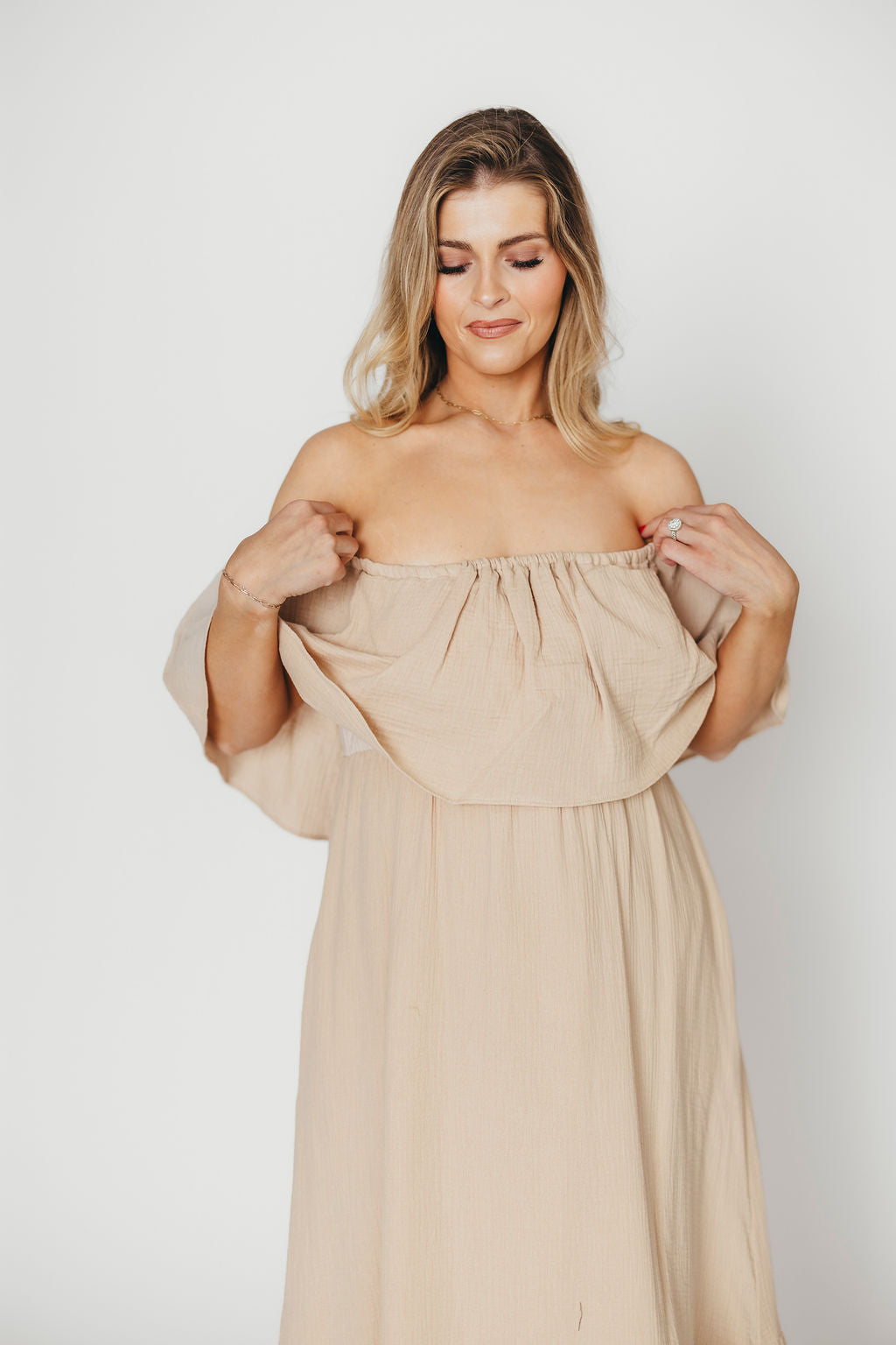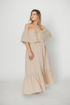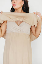 Josie 100% Cotton Maxi Dress in Beige - Bump & Nursing Friendly *Final-Sale*