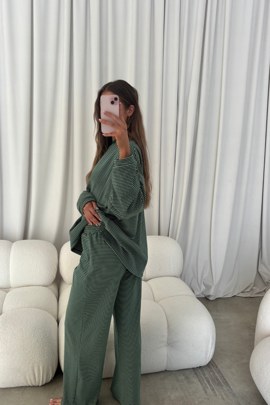Campbell Striped Fleece Lounge Pants in Forest Green
