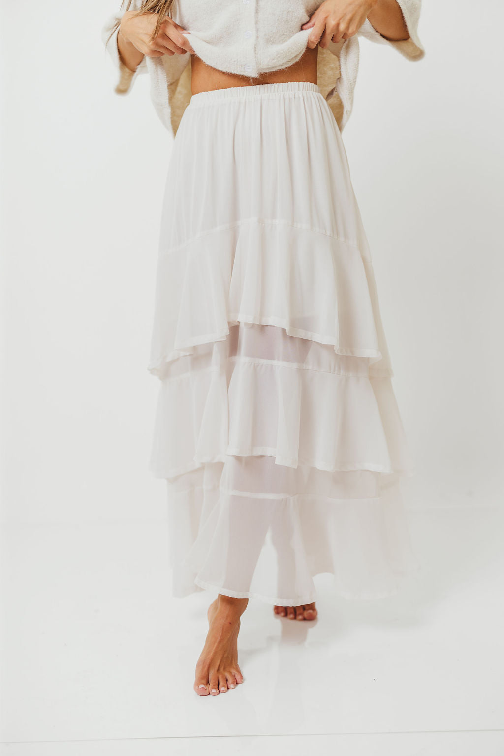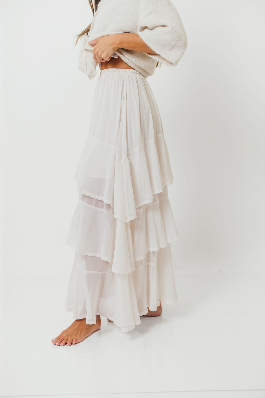 Talulah Ruffle Tiered Maxi Skirt in Ivory