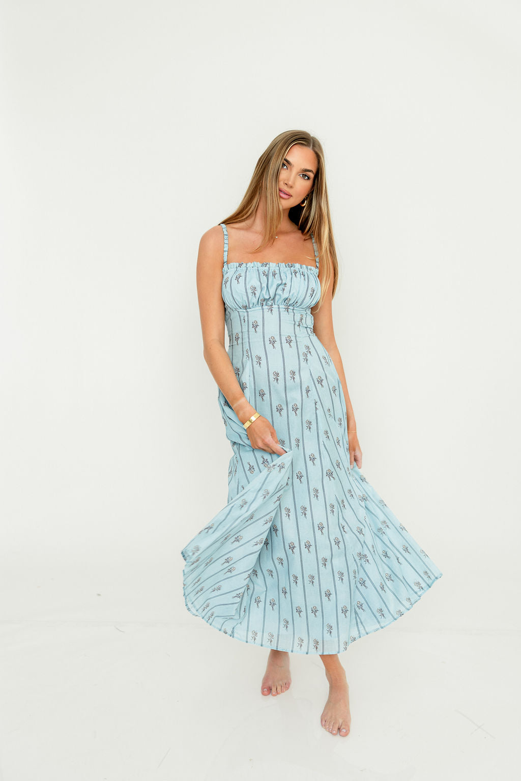 Wedelia Midi Dress in Blue Floral