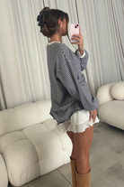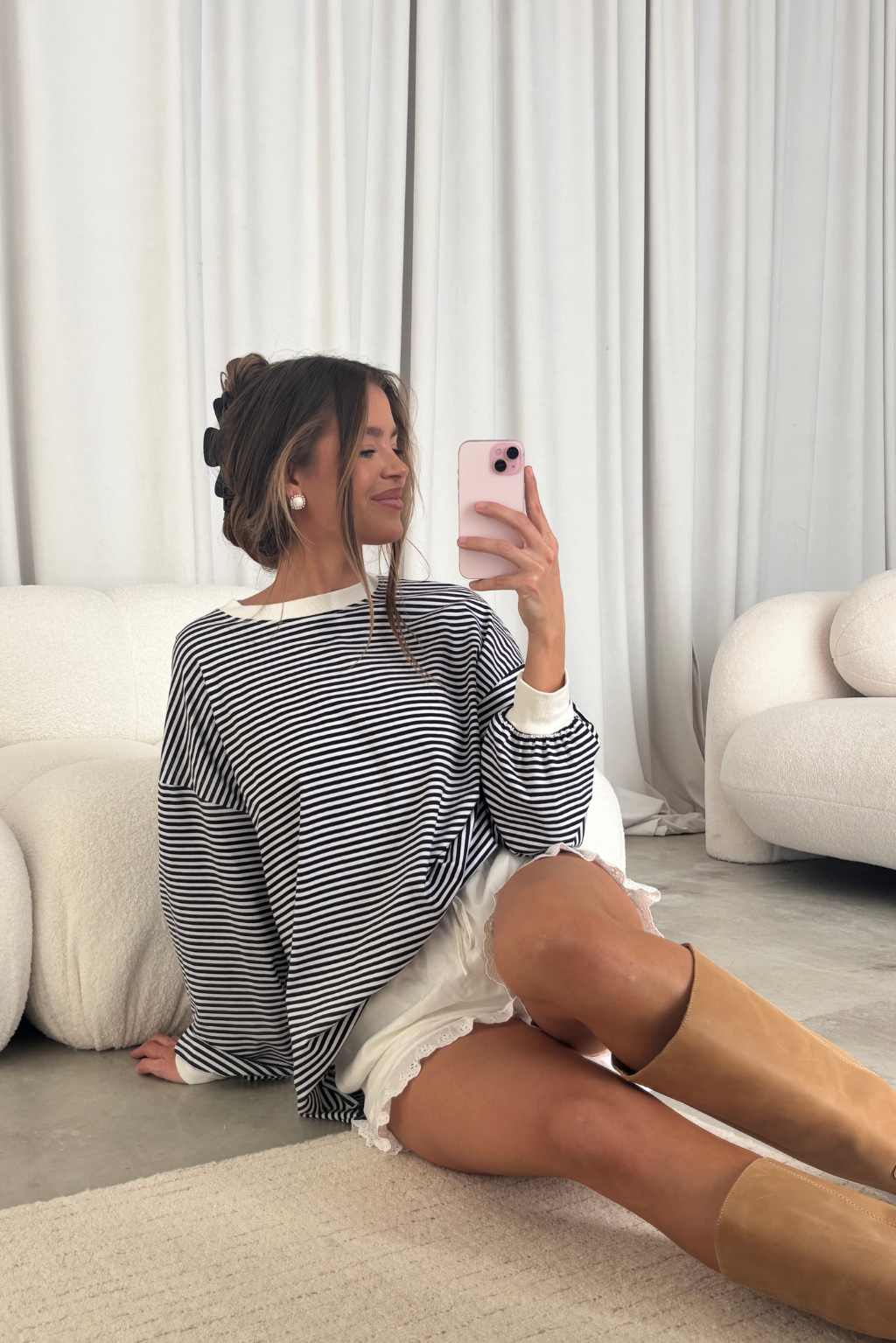 Benni Crew Neck Striped Long Sleeve Top in Black