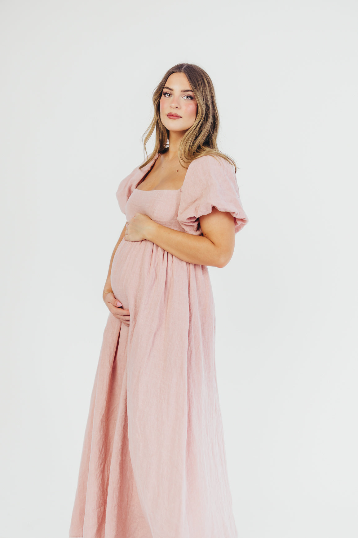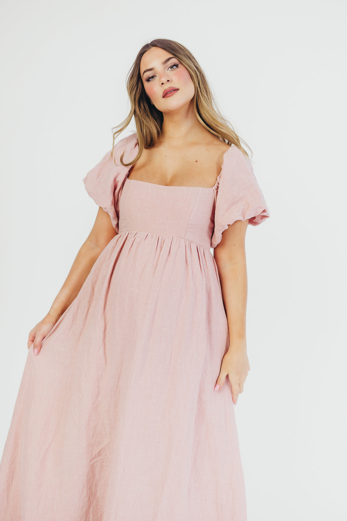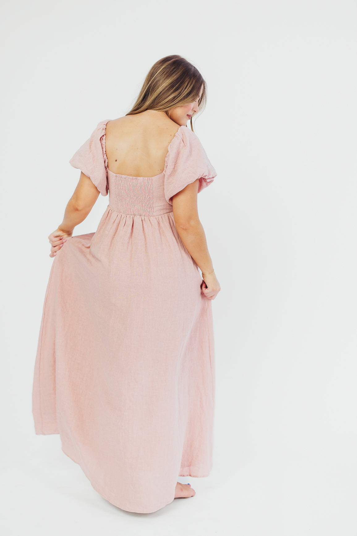 Candace Maxi Dress in Sweet Blush - 100% Linen - Bump Friendly