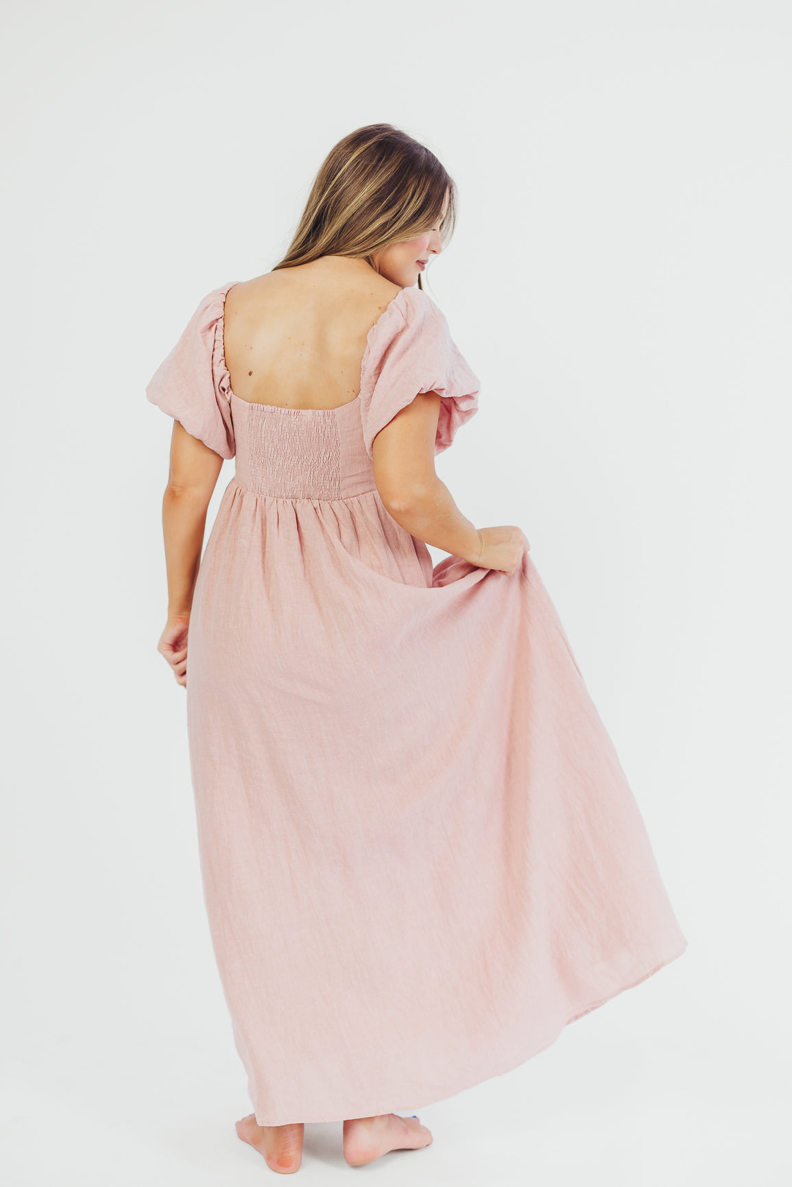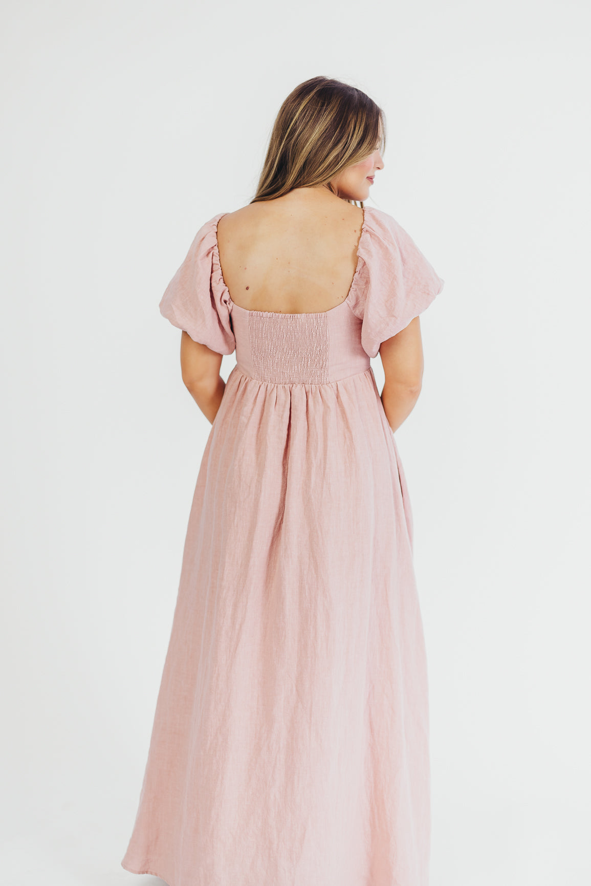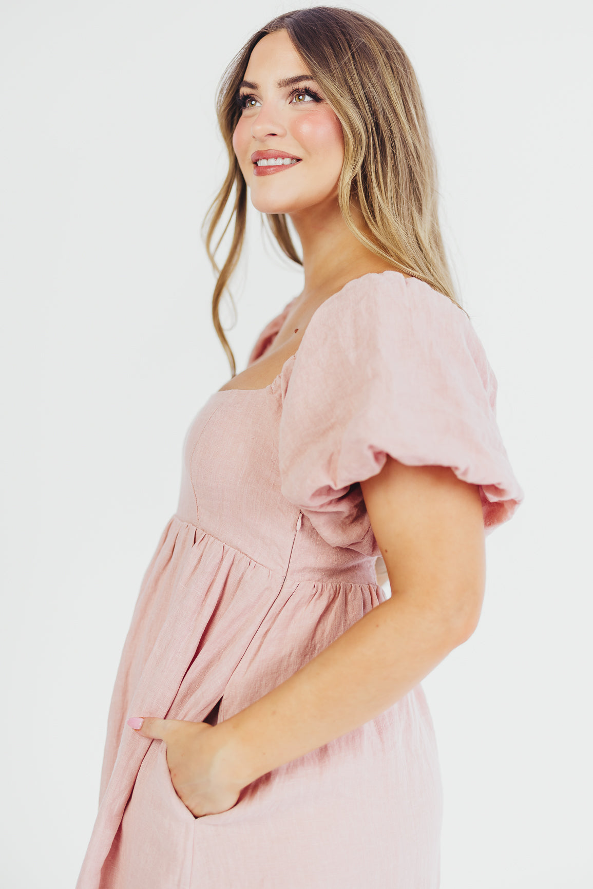 Candace Maxi Dress in Sweet Blush - 100% Linen - Bump Friendly