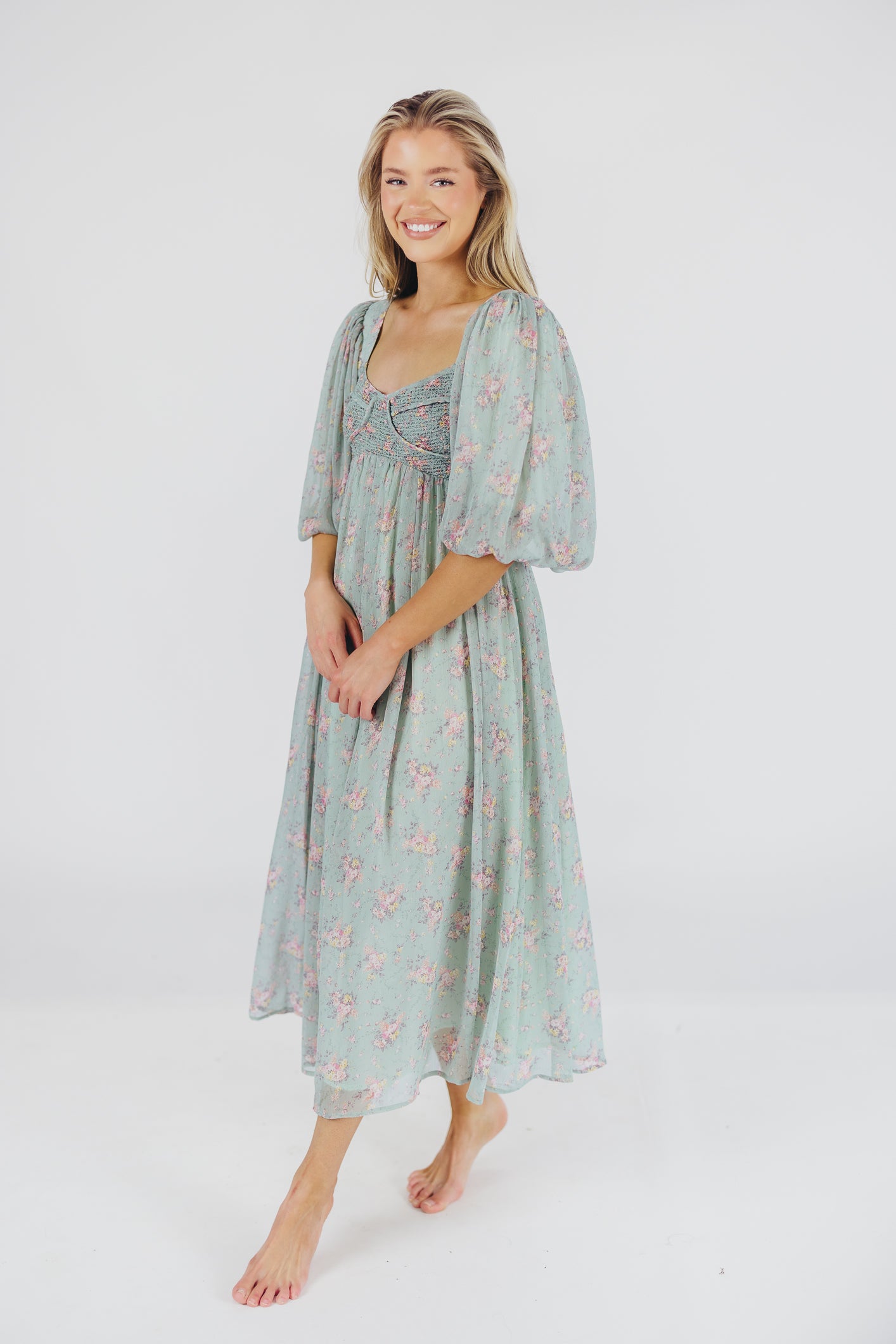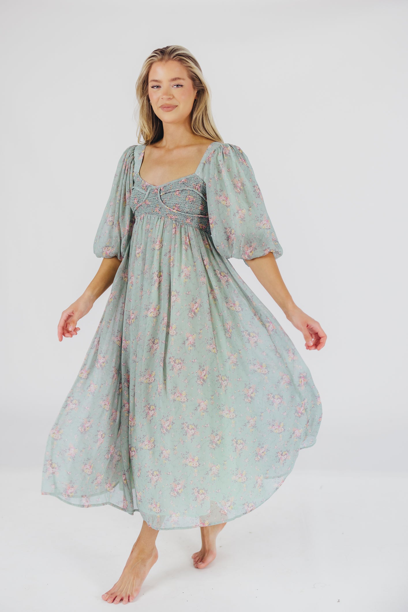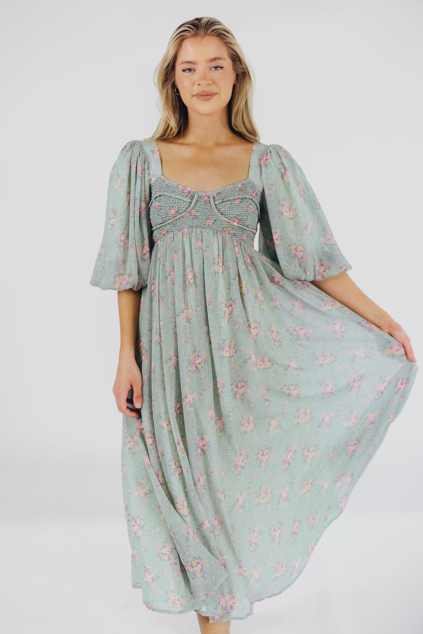 This gorgeous dress is a *vibe* and we are here for it. If you think the Harlow is stunning in photos, wait till you see it in person - this dress will make a statement wherever you go! It features incredible puffed sleeves, a bustier-style structured bodice, and a voluminous skirt. This floral gem is extra-luxe, and 100% the choice when you're looking to stand out from the crowd. Pair it with a glam set of pumps for a night at the symphony, or with heeled sandals for a baby shower - just prepare yourself for the admiring glances!