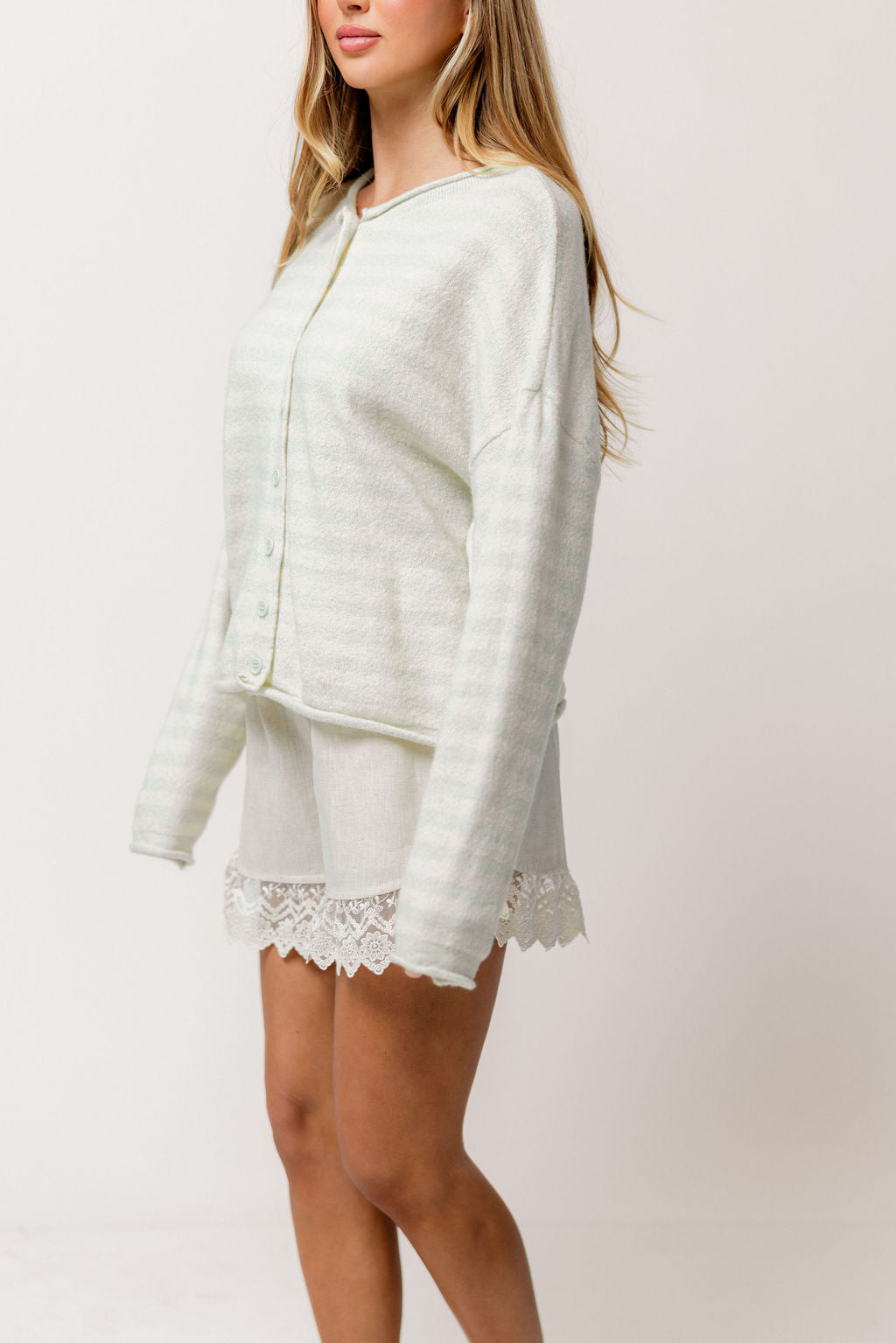 Ciela Striped Cardigan Top in Dusty Mint