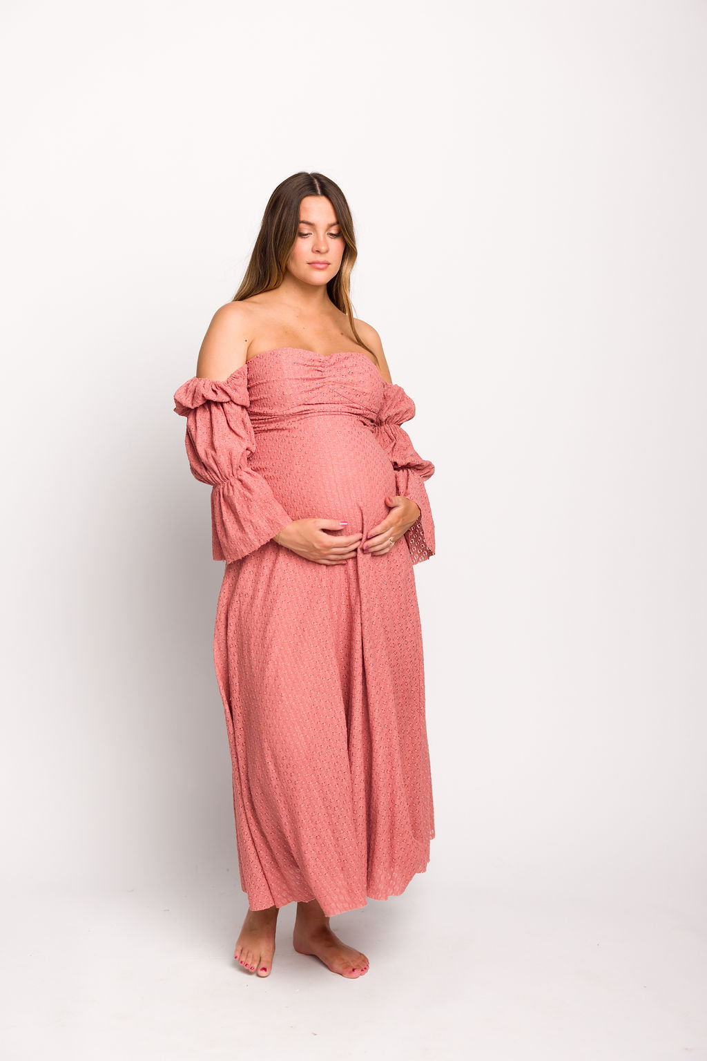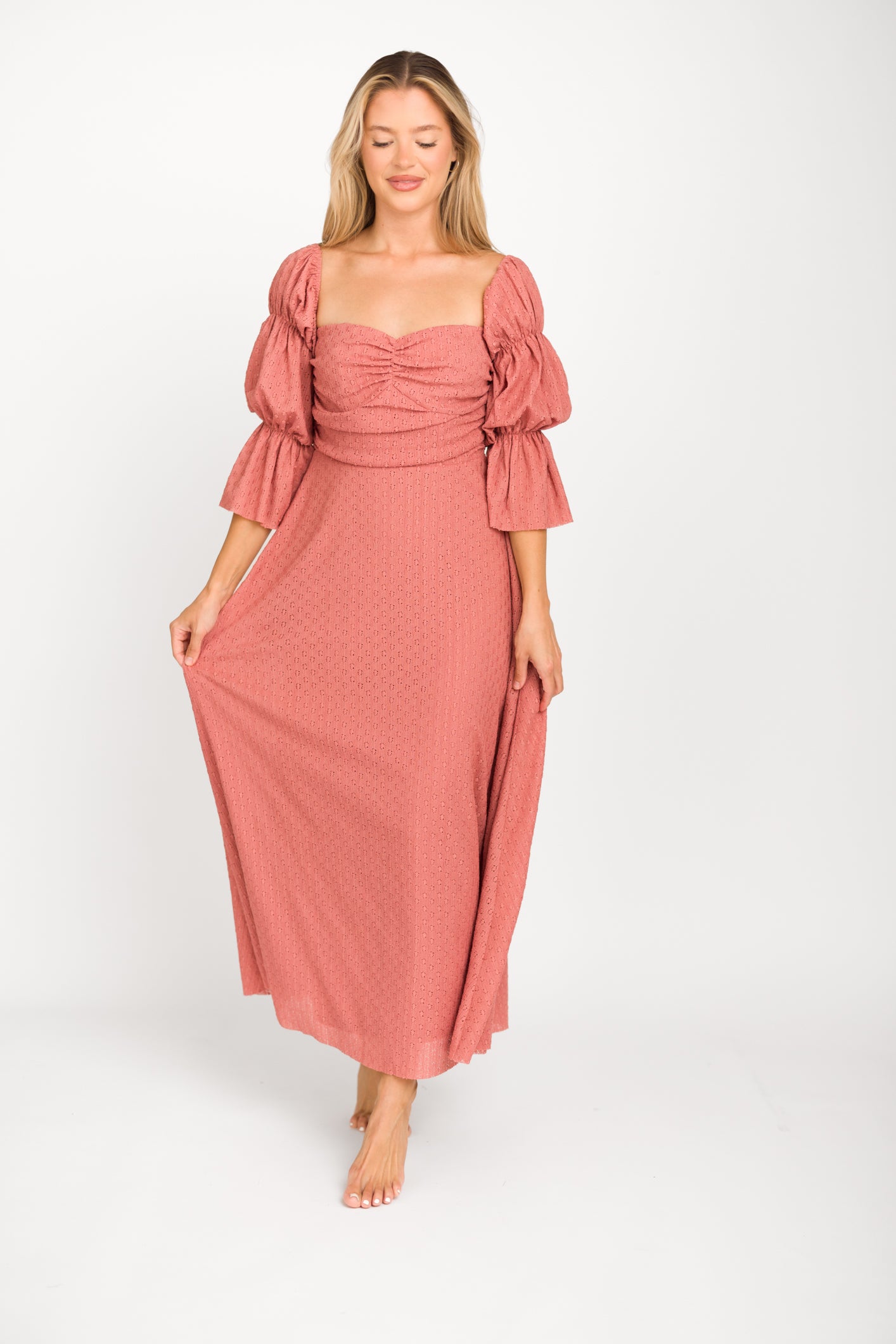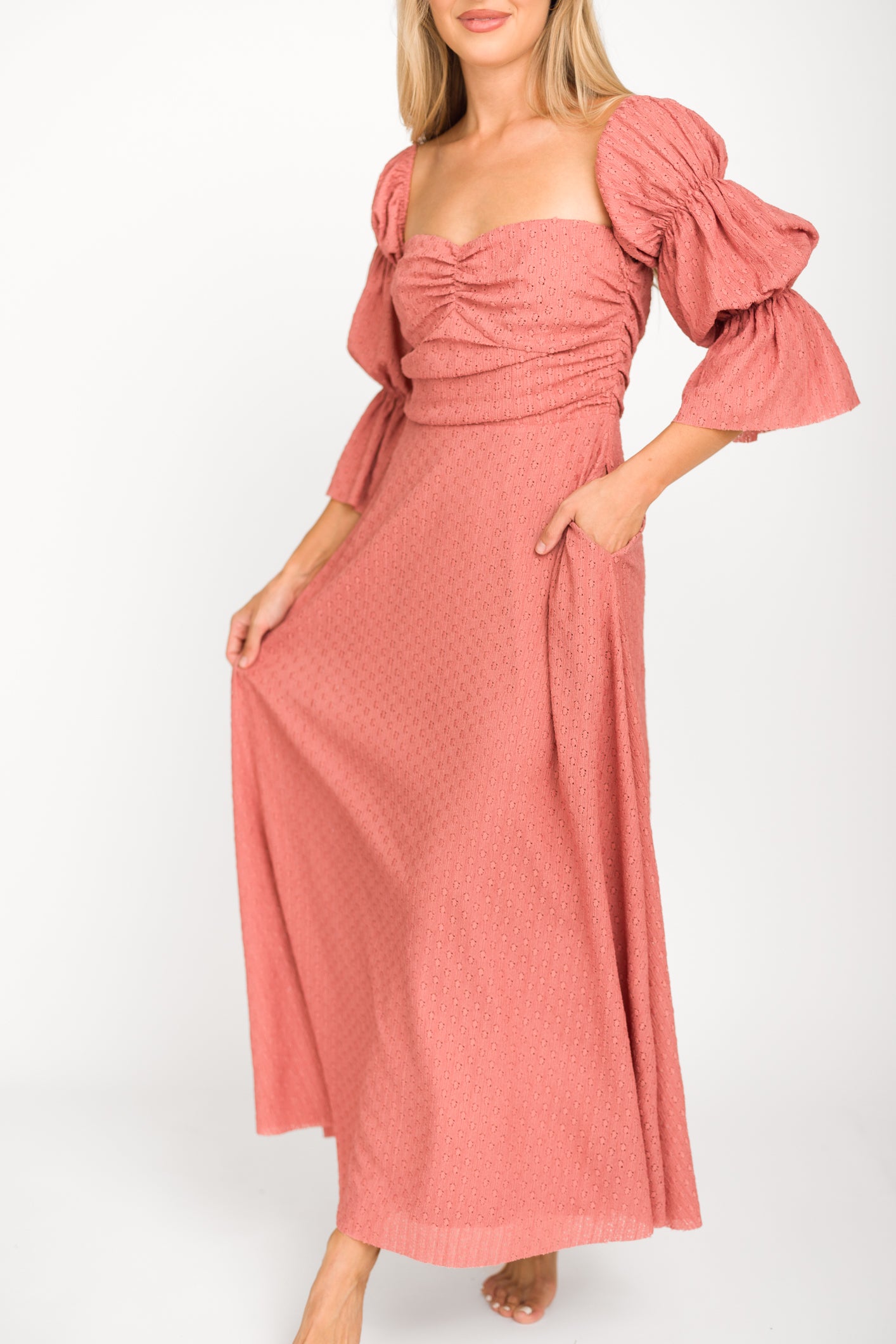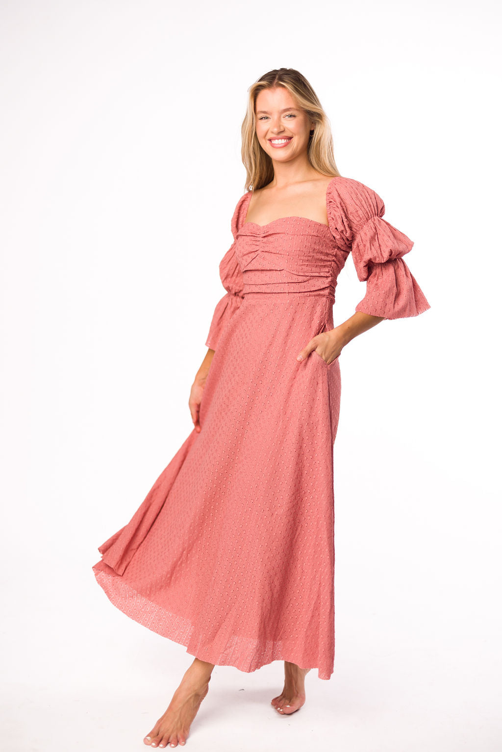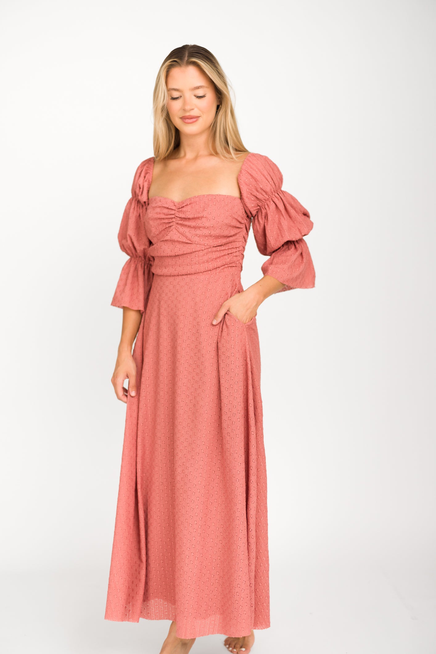 Corrine Tiered Sleeve Maxi Dress with Pockets in Dusty Rose - Bump Friendly