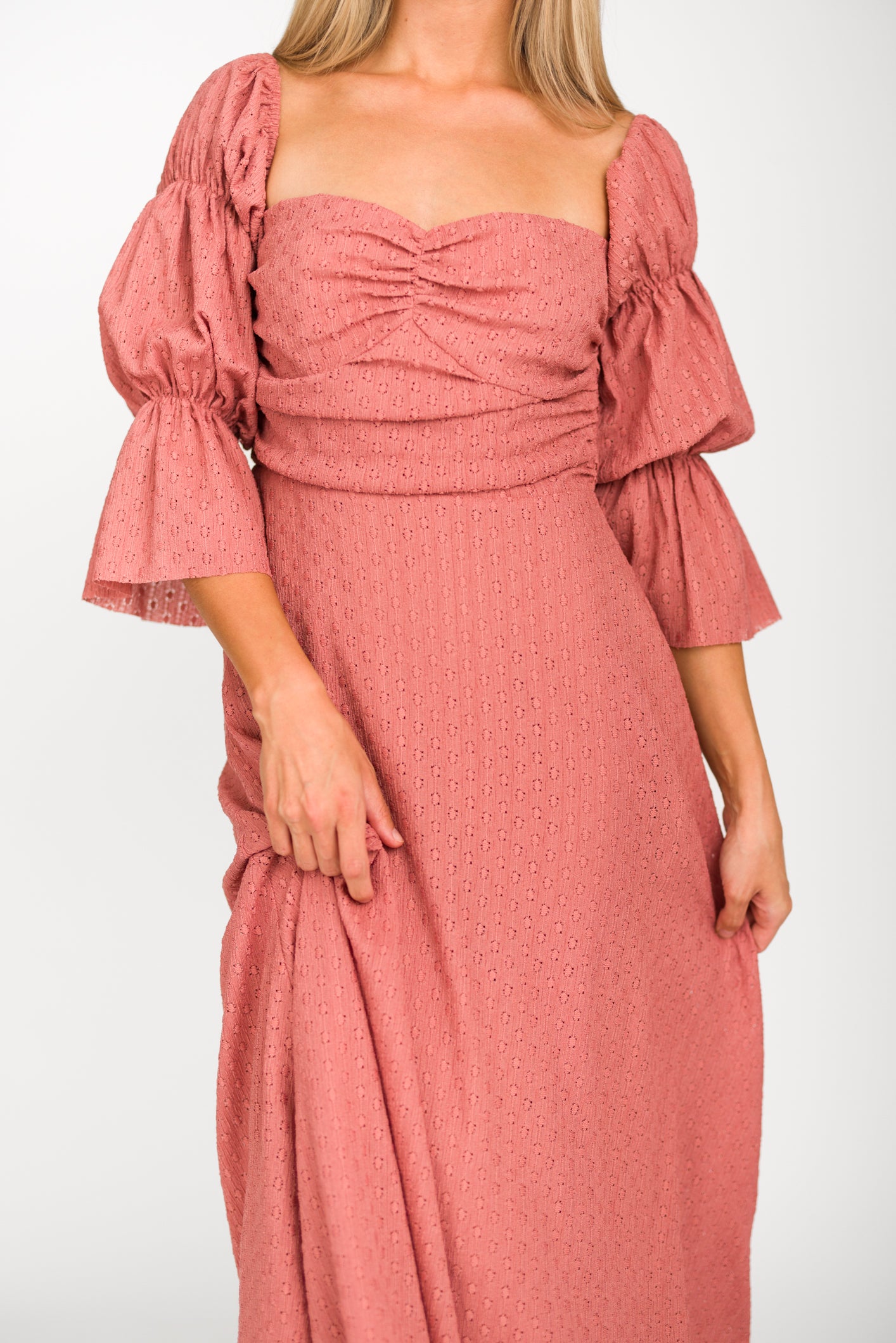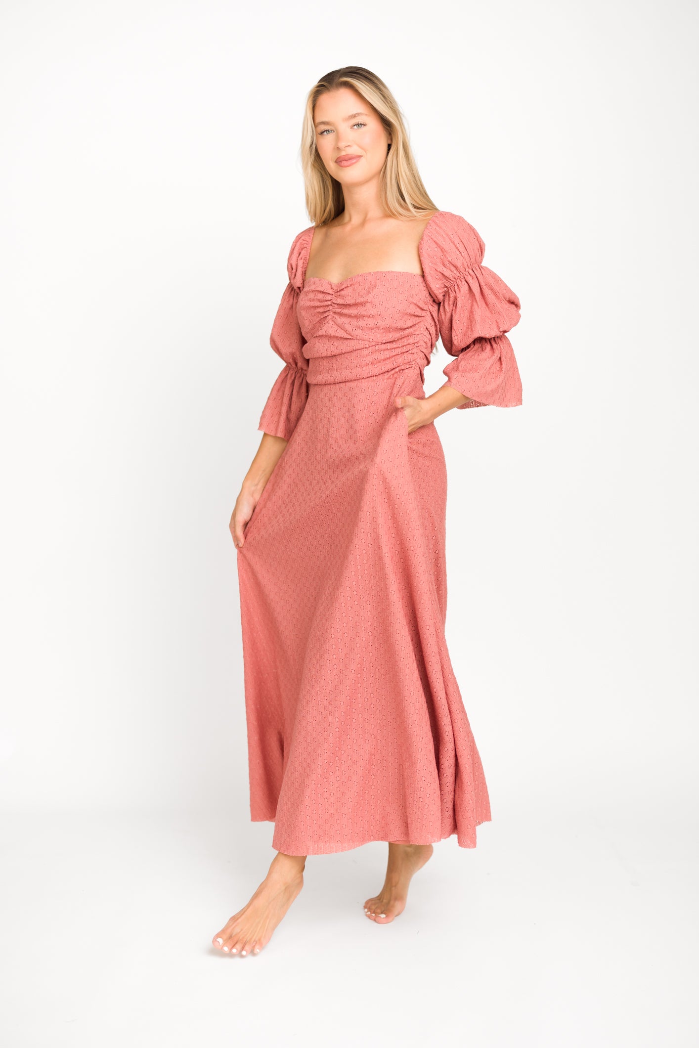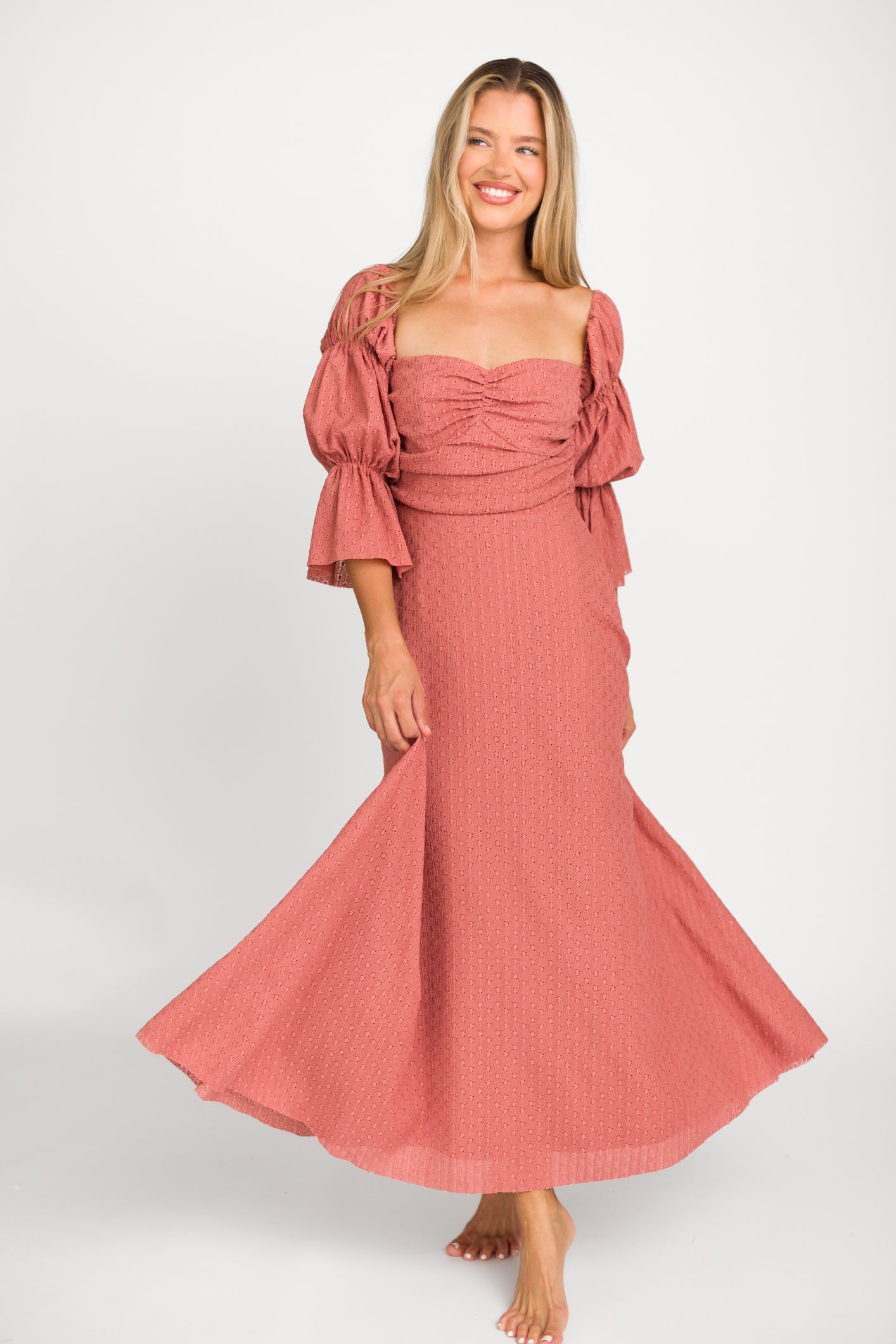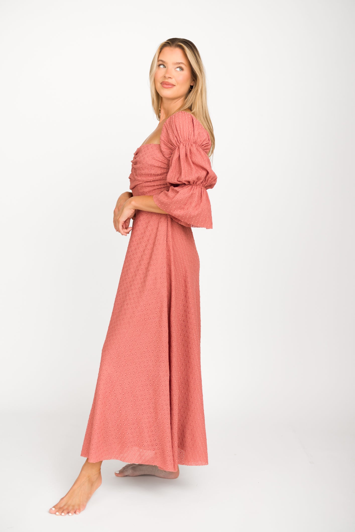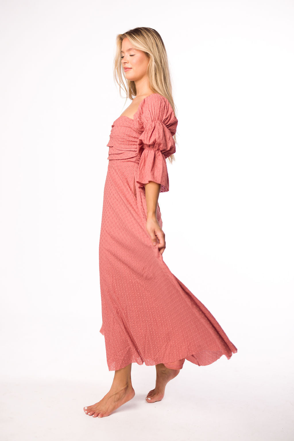 Corrine Tiered Sleeve Maxi Dress with Pockets in Dusty Rose - Bump Friendly