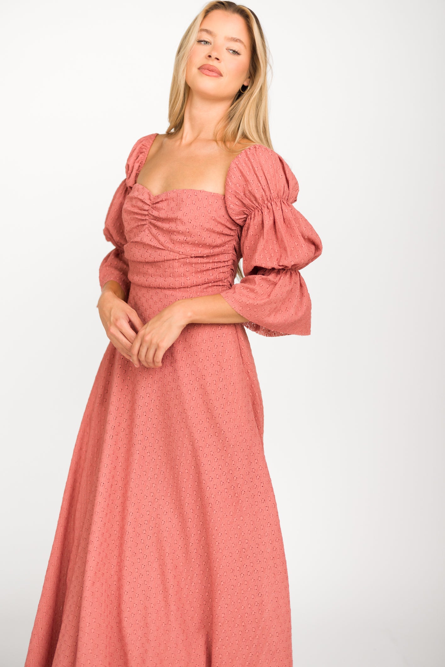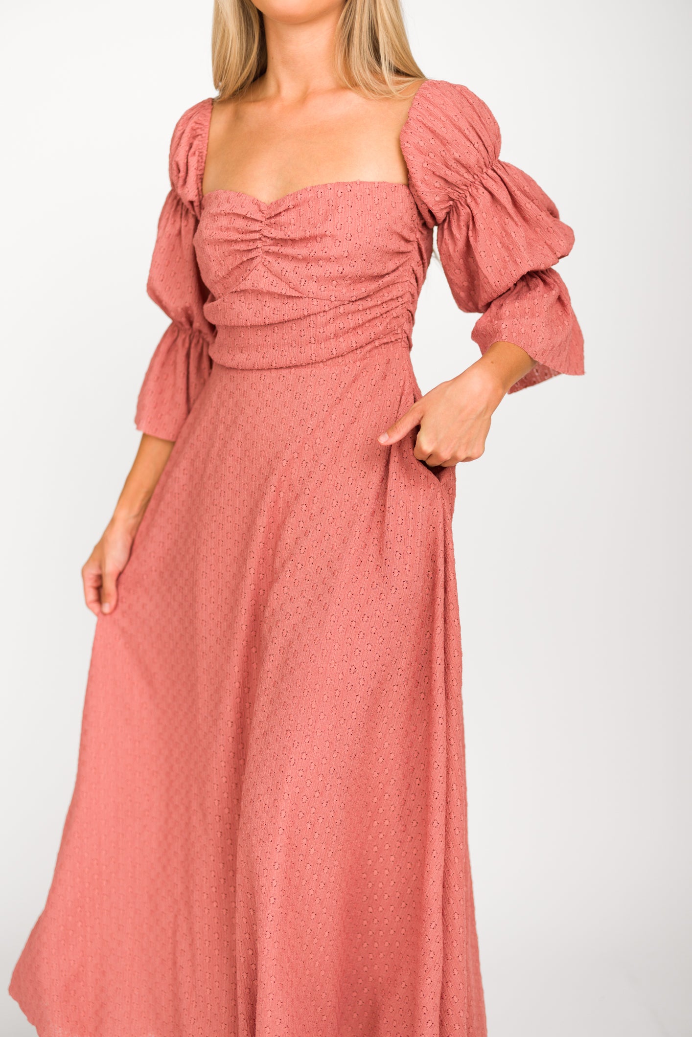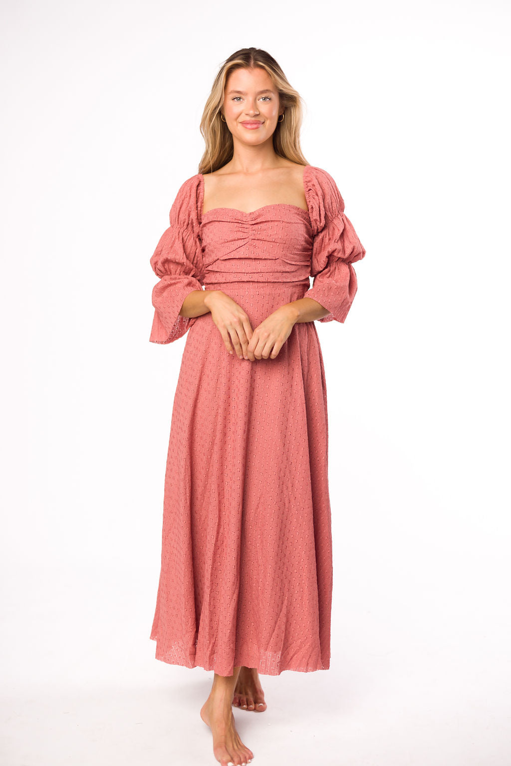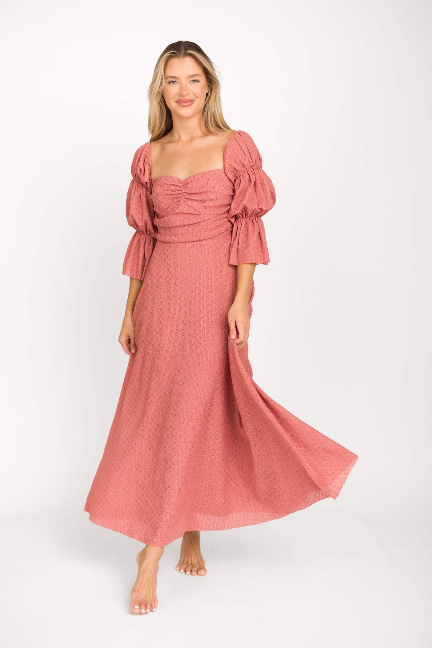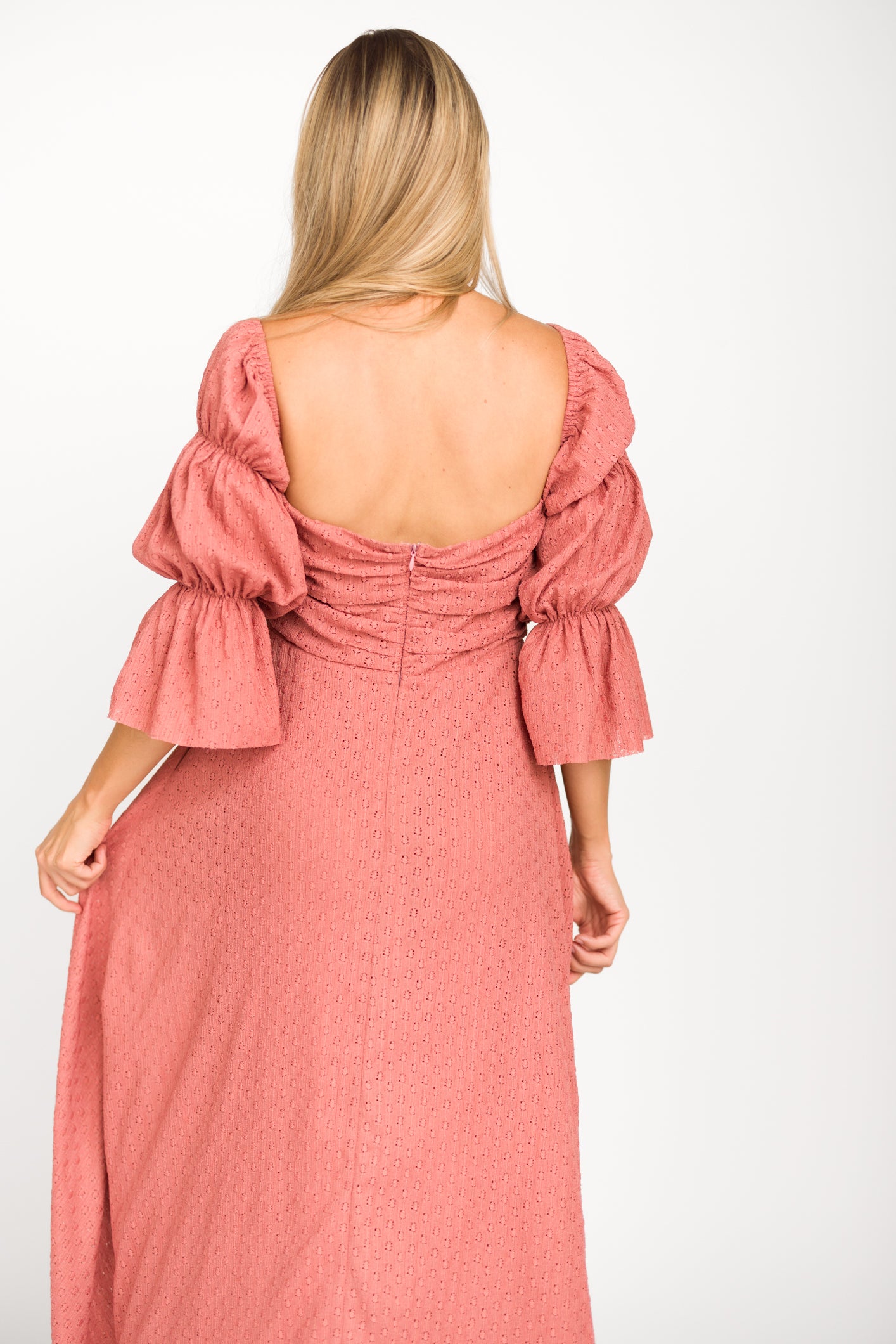 Corrine Tiered Sleeve Maxi Dress with Pockets in Dusty Rose - Bump Friendly