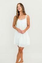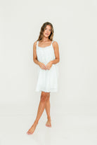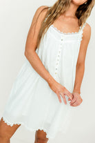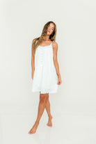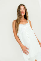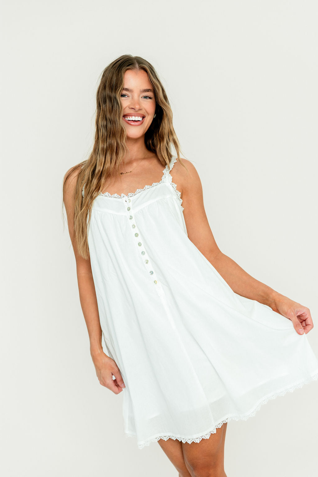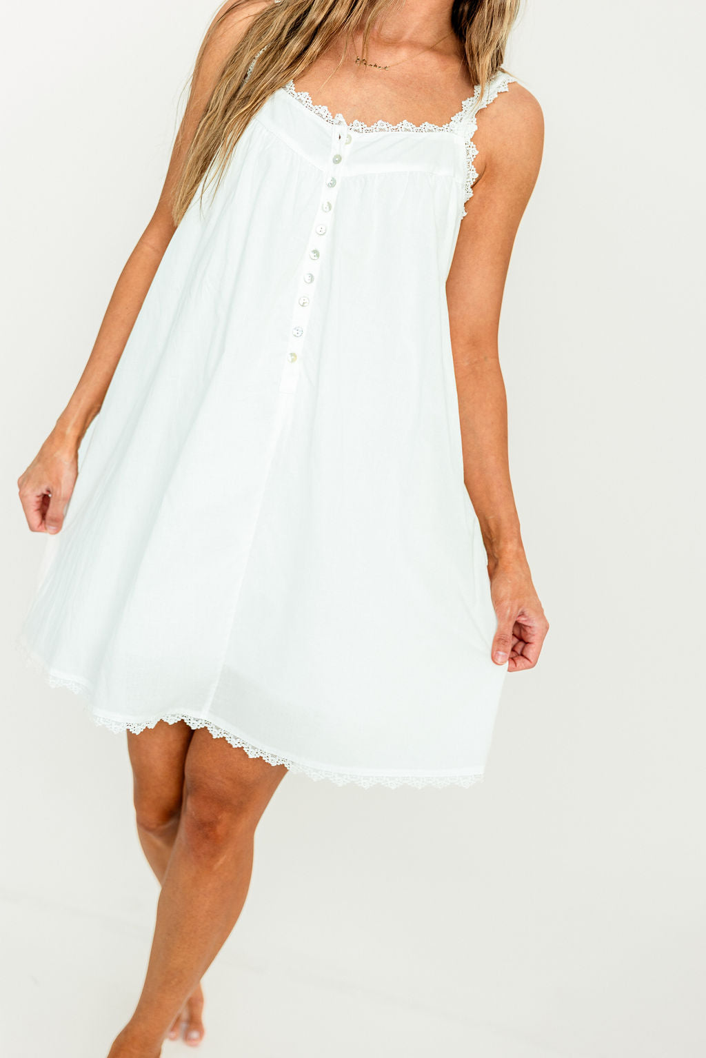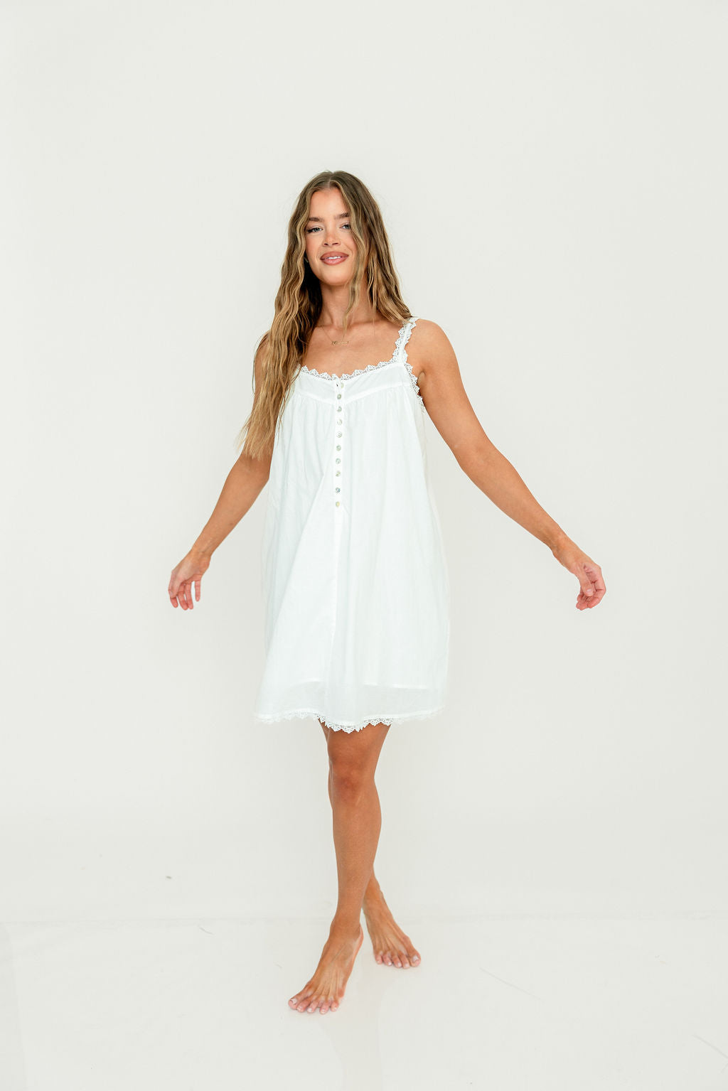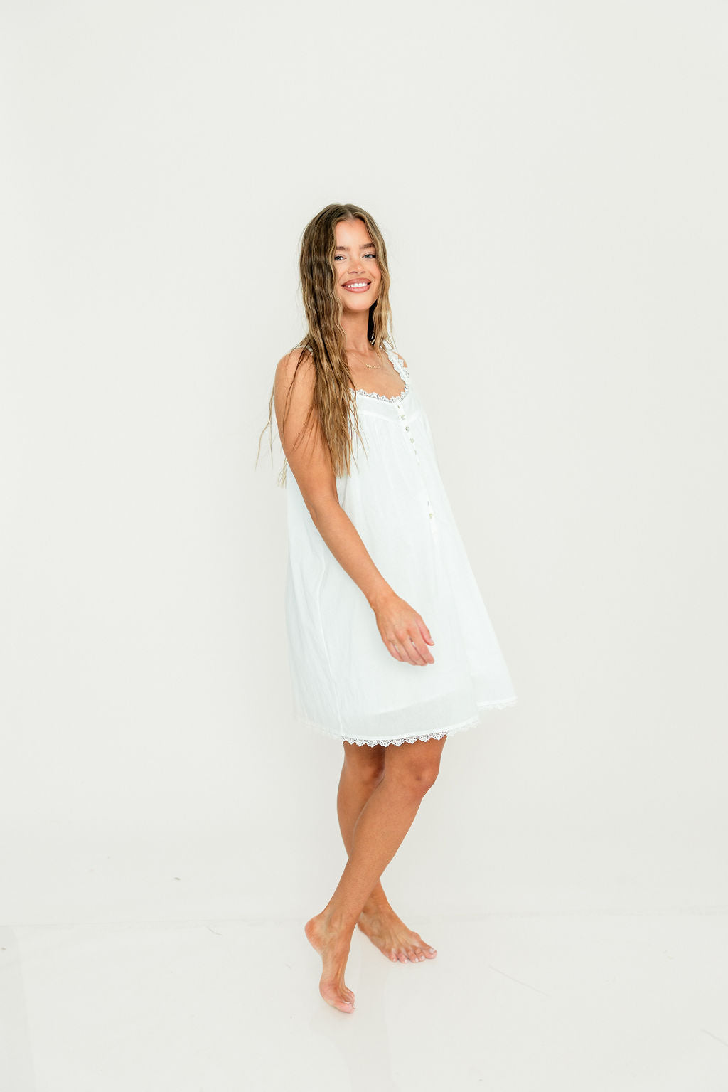 GARMENT DETAILS: Extra-soft cotton mini dress with button-front closure for nursing, dainty lace trim, and full lining.
