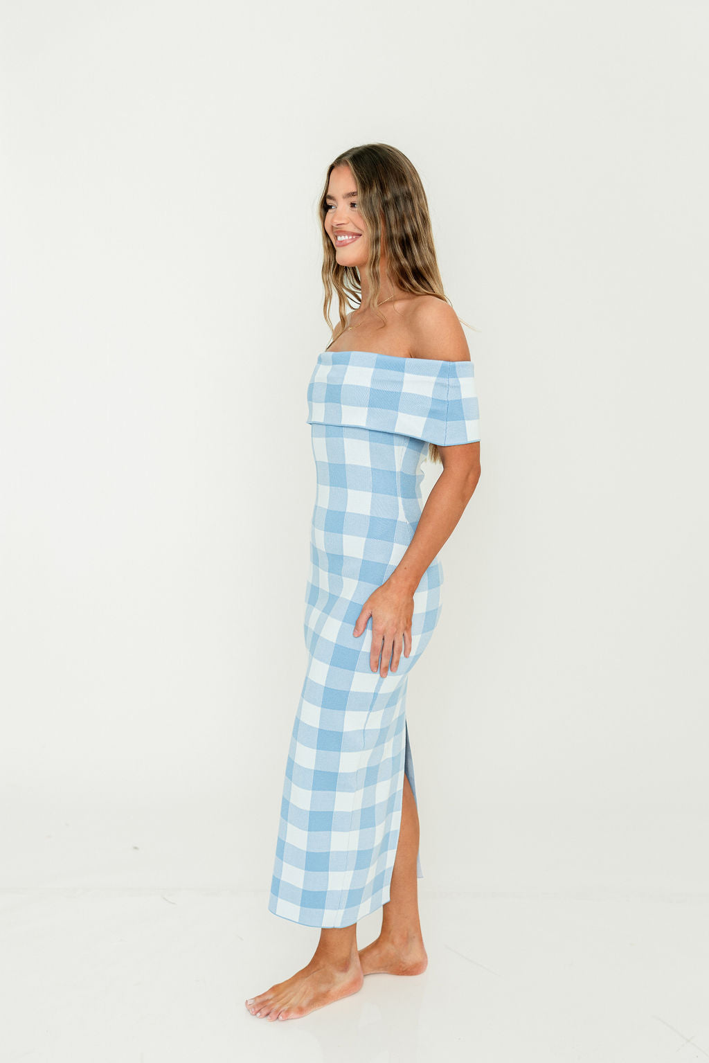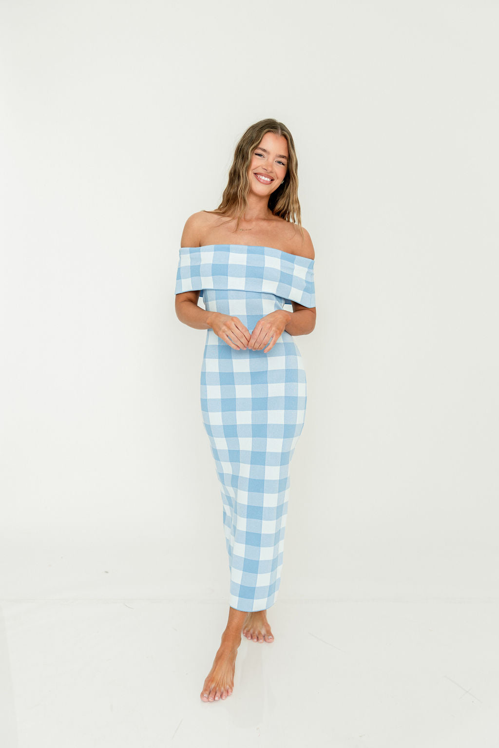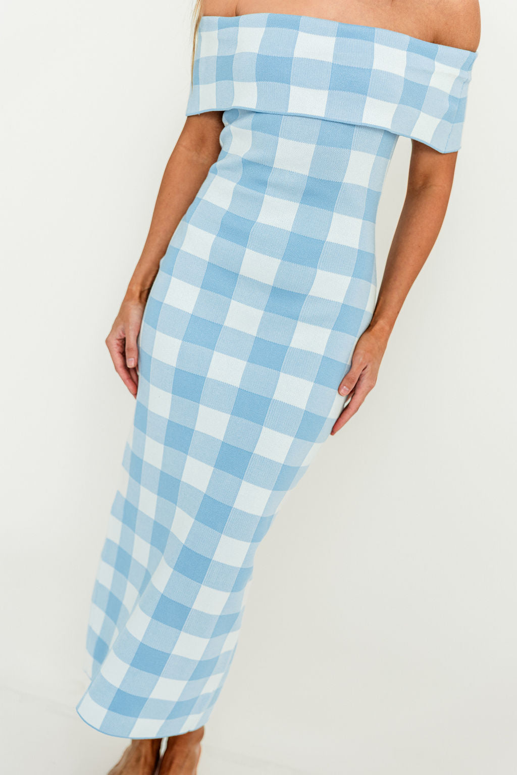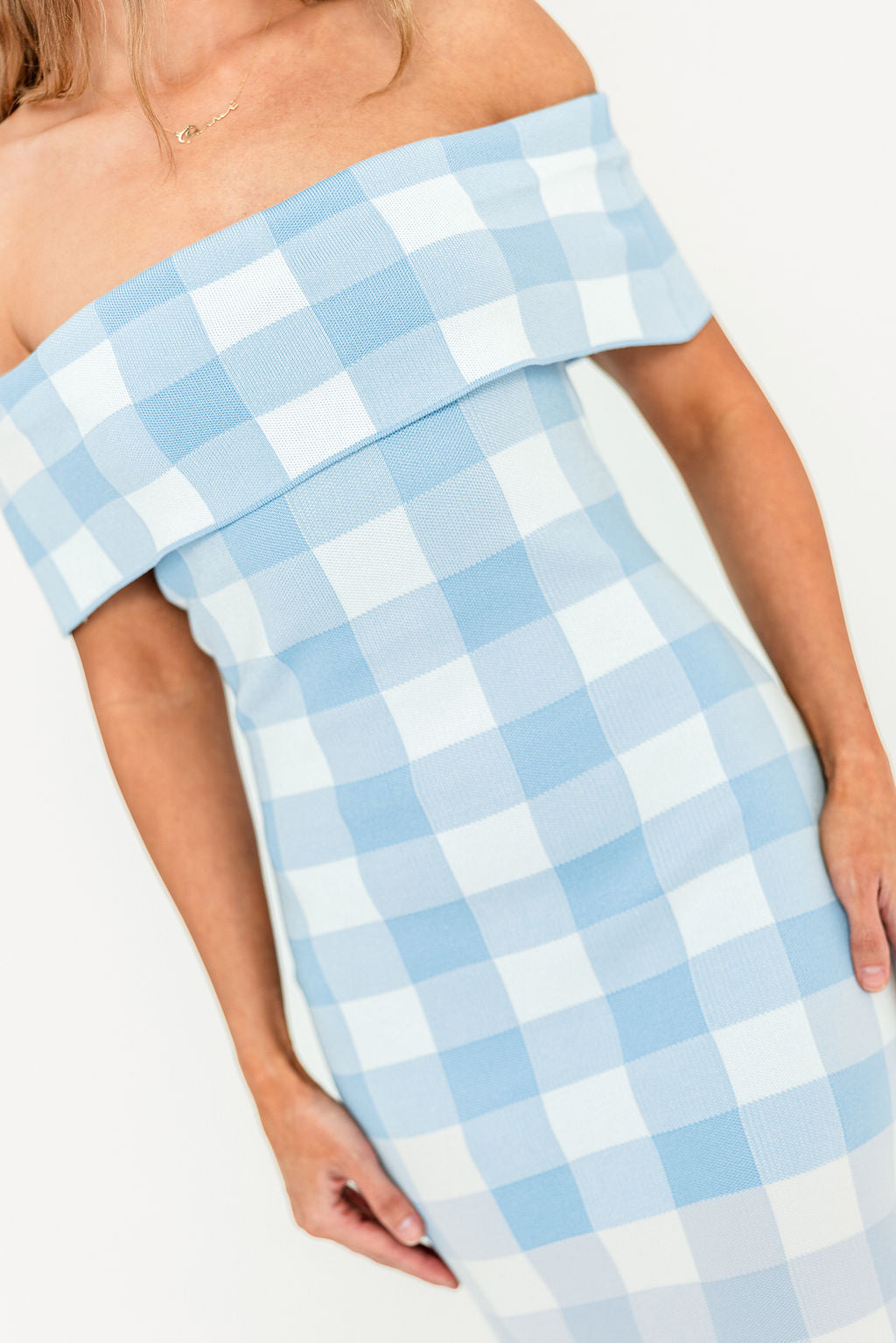 Effortless elegance meets timeless style with this off-shoulder midi dress! The Carrie features a classic gingham plaid pattern, with a fitted silhouette and flattering fold-over neckline. It's crafted from breathable, ultra-soft Viscose for all-day comfort.