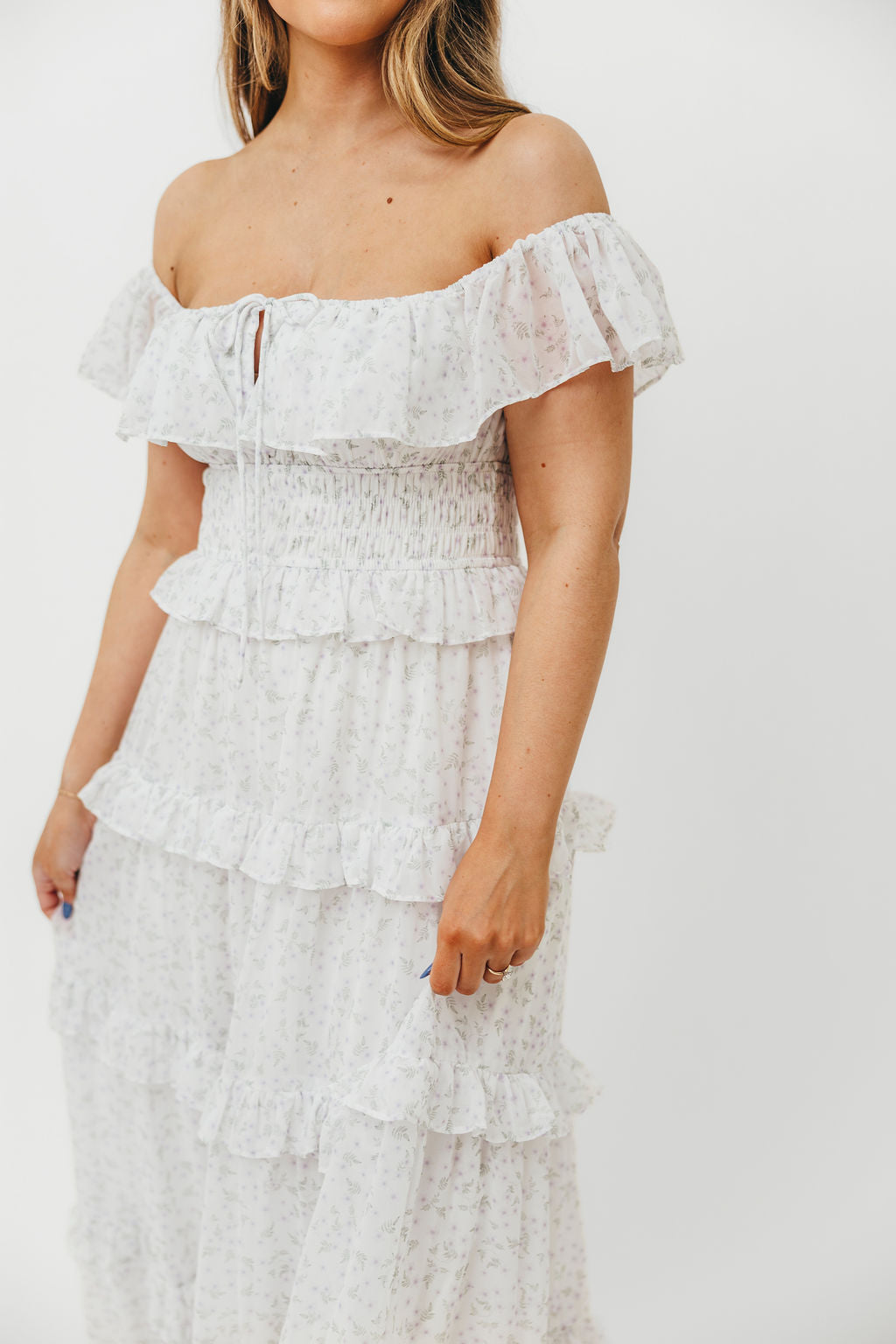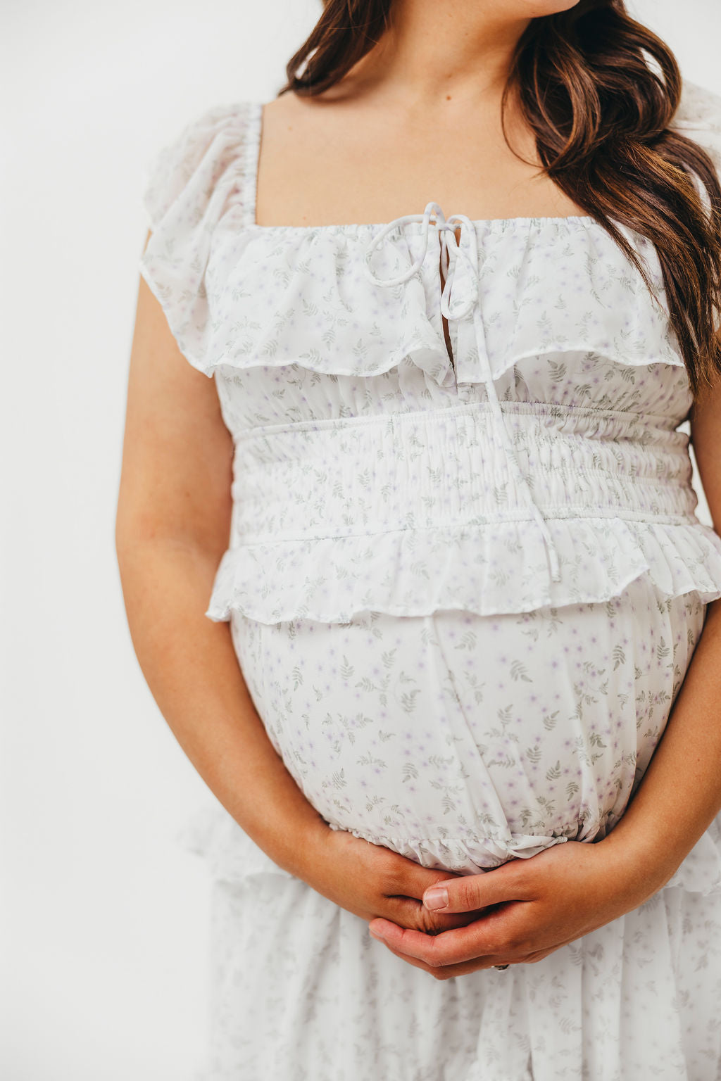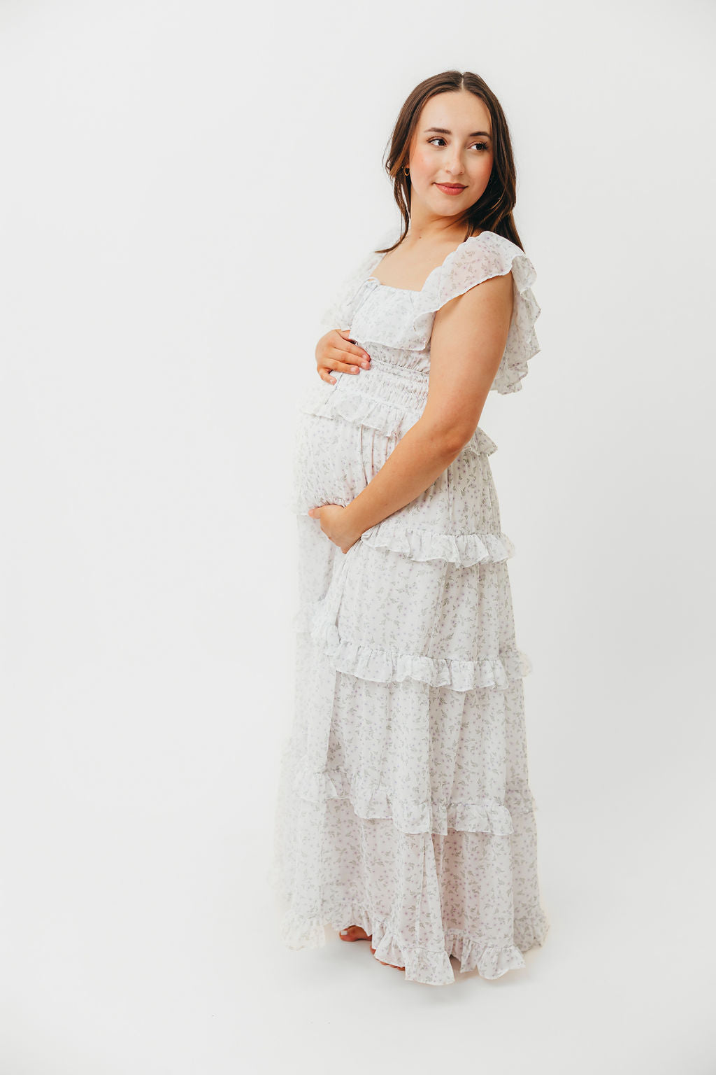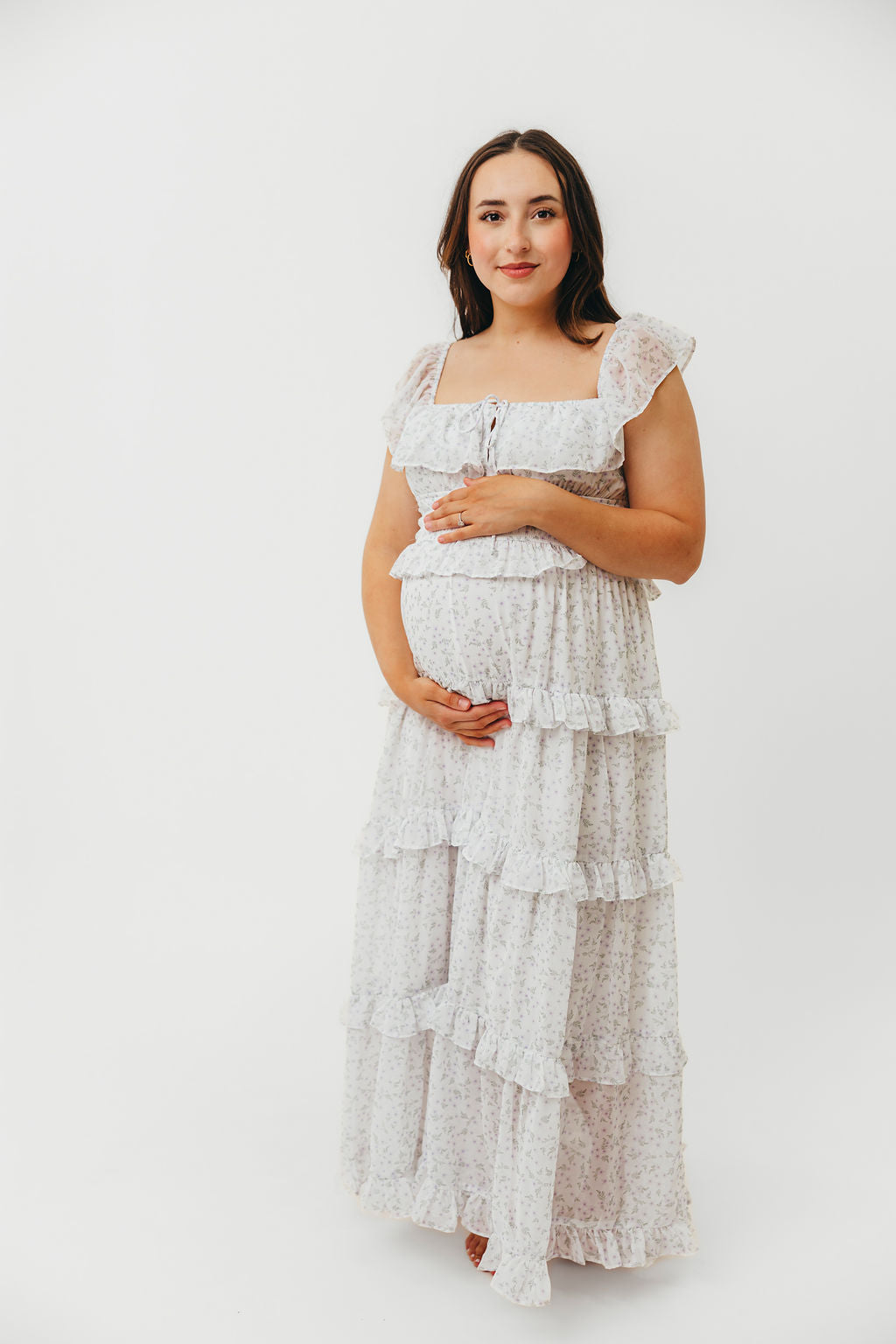 Astrid Ruffle Detail Maxi Dress in Lavender Floral - Bump Friendly *Final-Sale*