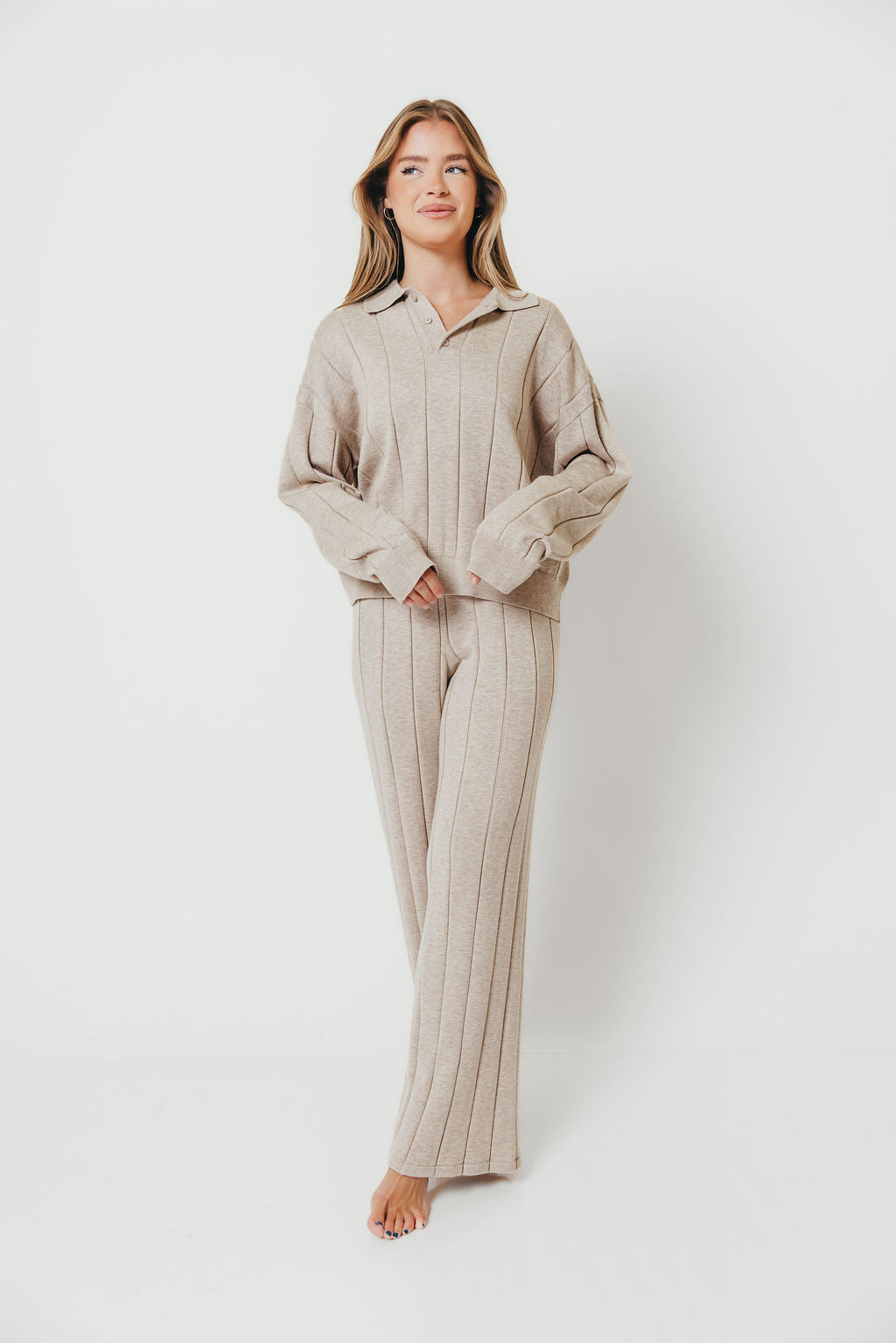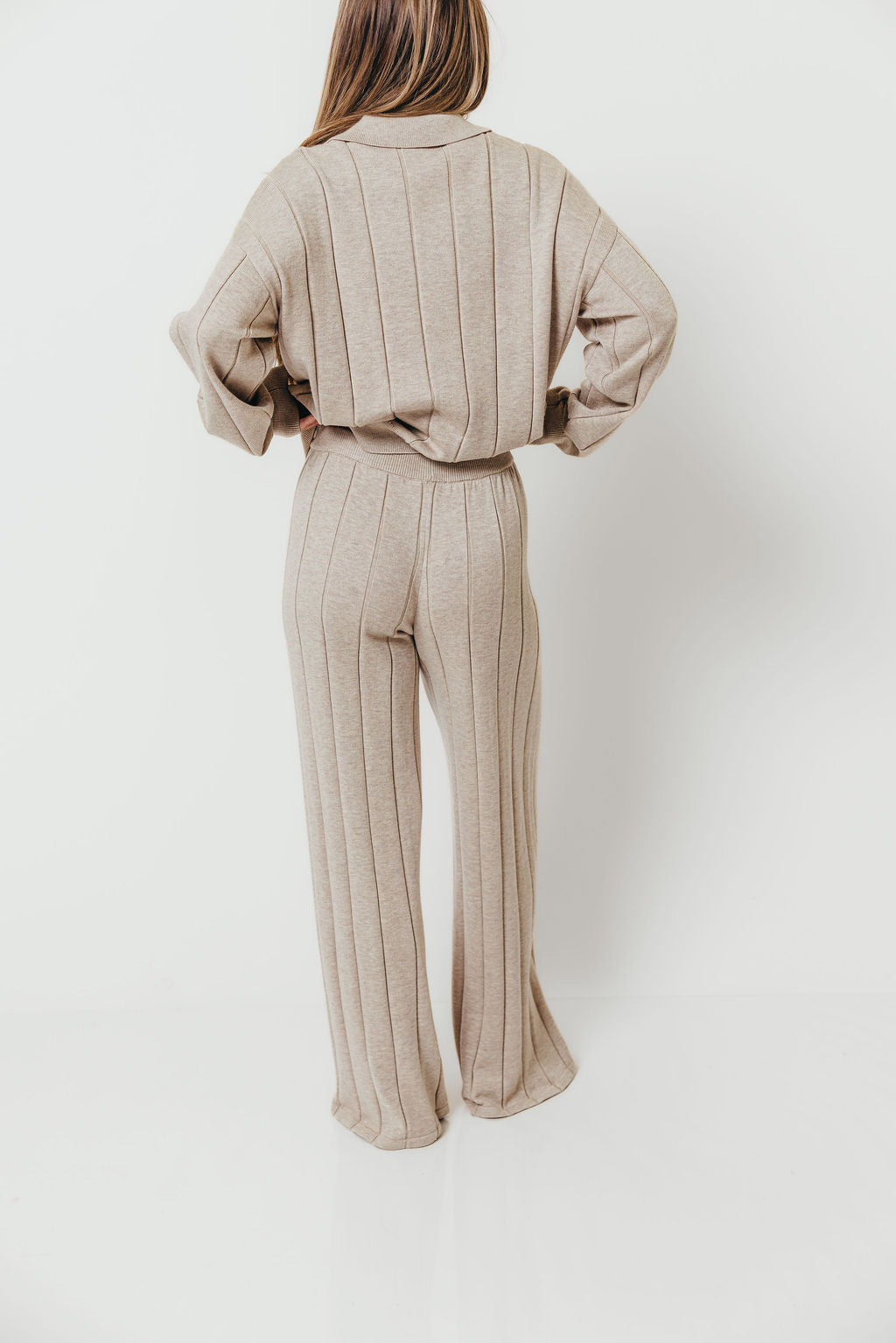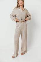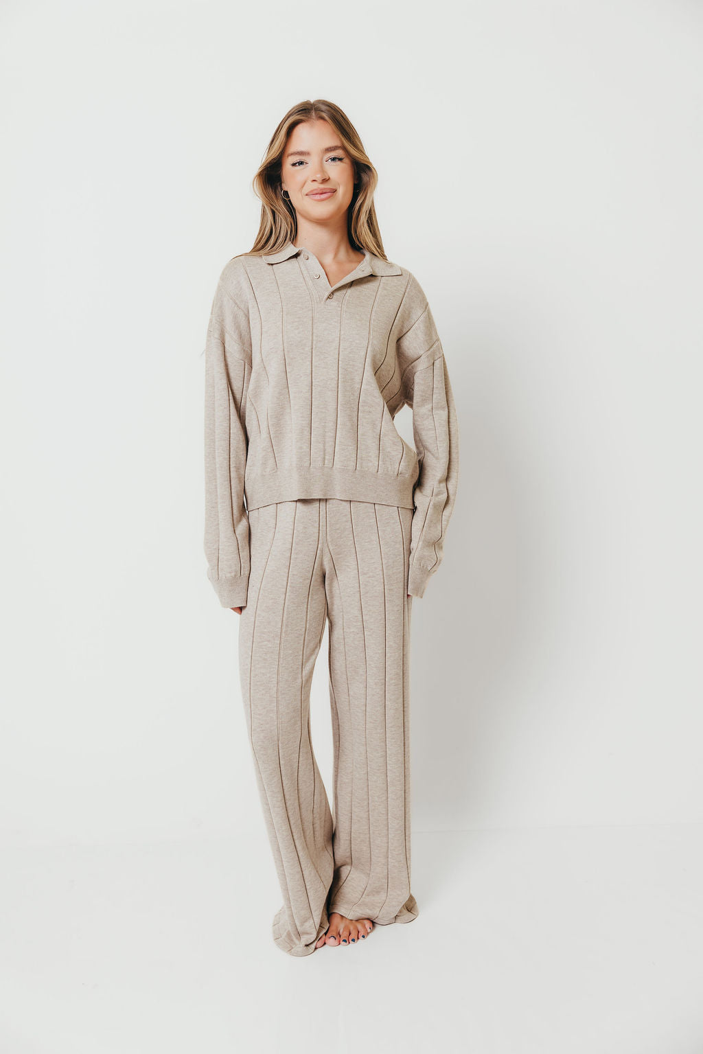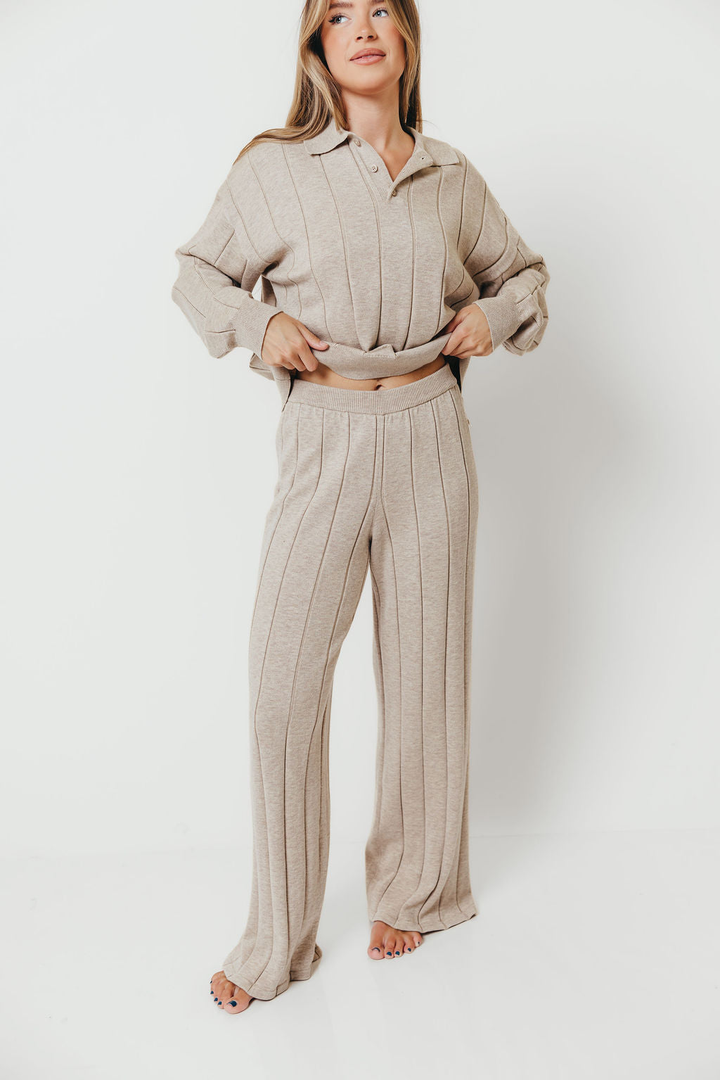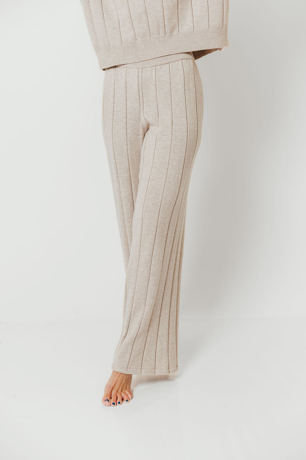Your set collection isn't complete without the Lennon Pants and Julian Sweater Set! The Lennon Pants are crafted from a premium cashmere blend and features an ultra-cozy ribbed construction, with elasticated waistband and wide-leg silhouette. We think these will be your favorite pants of the season!