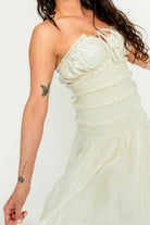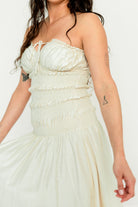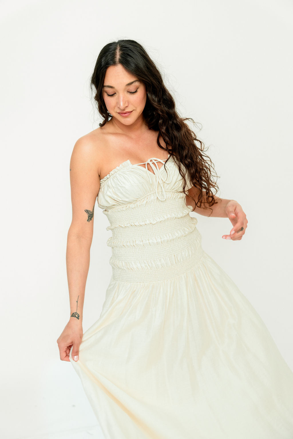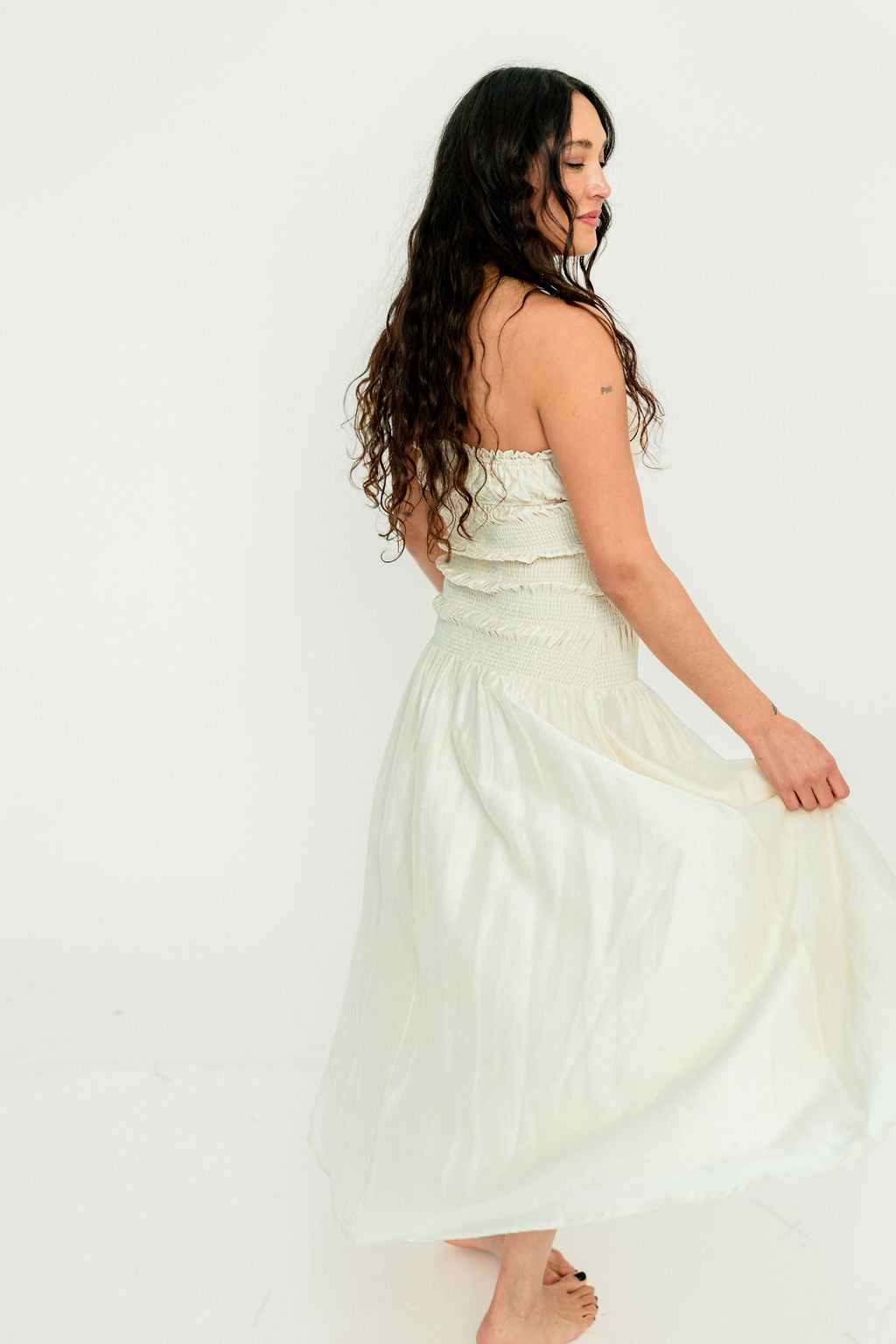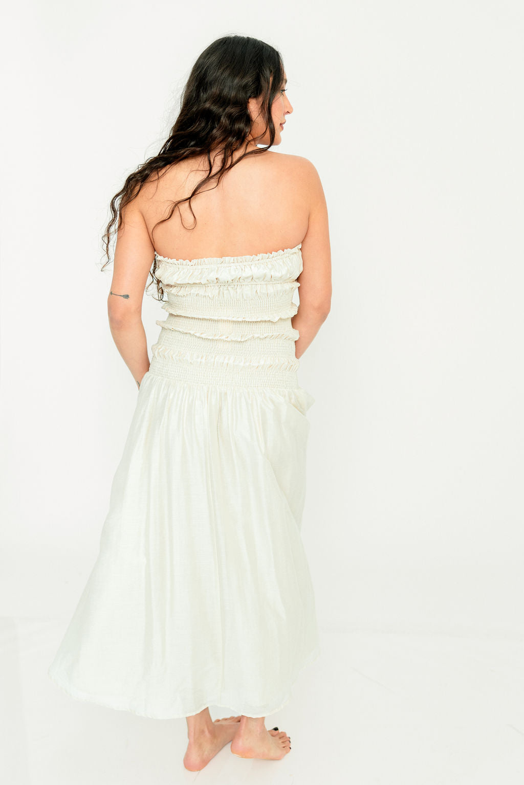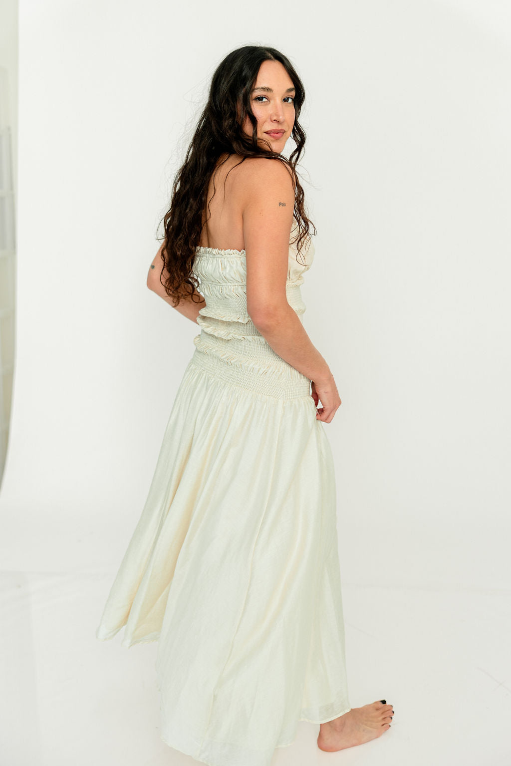 Myra Strapless Smocked Bodice Tube Maxi Dress in Cream