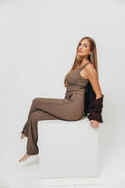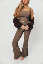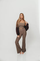 Mina Ribbed Crossover Waist Flared Leggings in Nomad