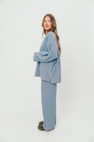 Get cozy (and trendy) with our new Naomi Top! This top is oversized yet sophisticated, the perfect top for pairing with your favorite boxer shorts or the matching Campbell Fleece Pants.