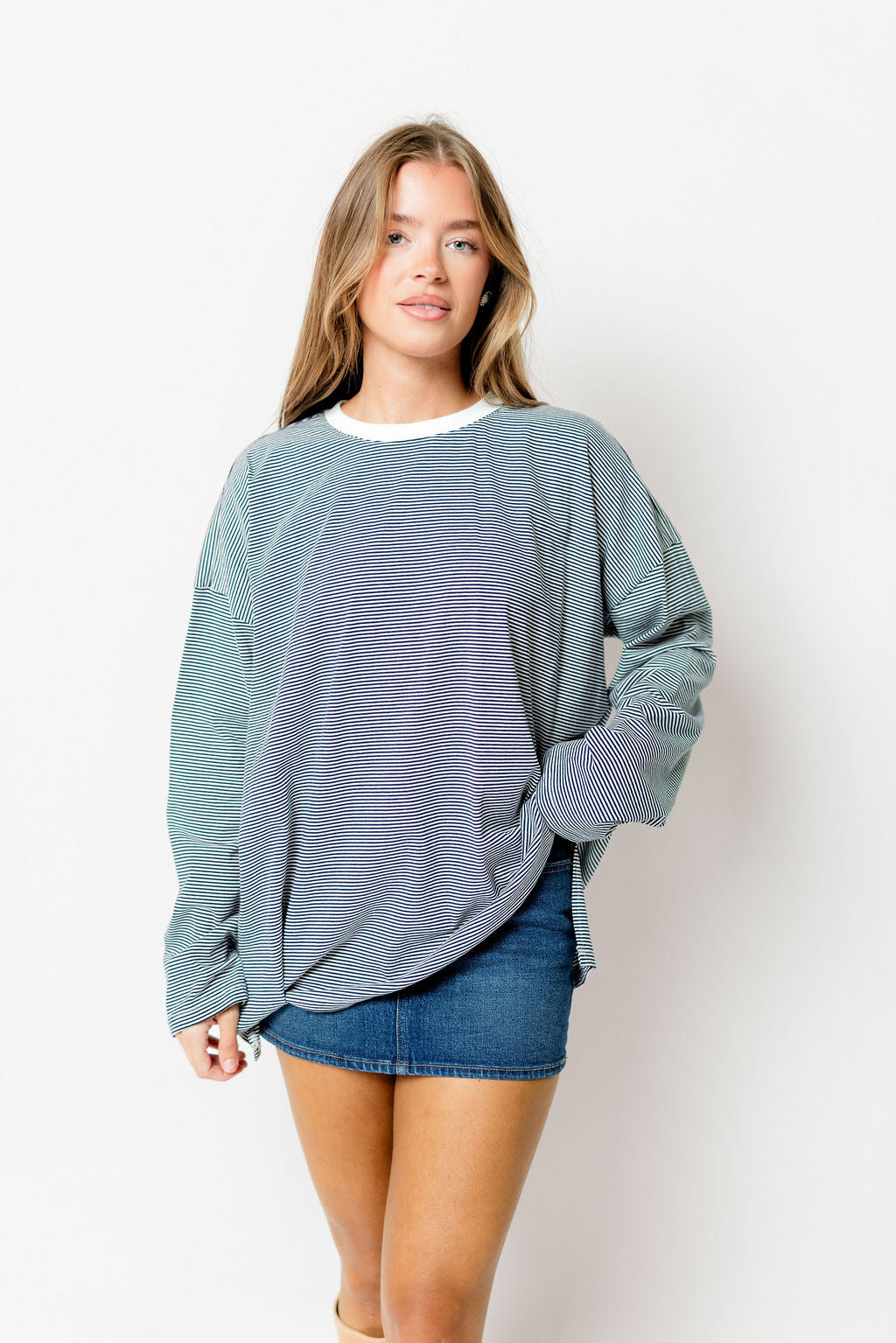 Camden Oversized Striped Top in Navy/White