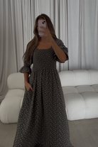 Sienna 100% Cotton Puff Sleeve Maxi Dress in Forest Foliage - Bump Friendly *10/29 PRE-ORDER*