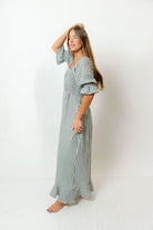 Sienna 100% Cotton Puff Sleeve Maxi Dress in Teal Green Plaid - Bump Friendly *10/29 PRE-ORDER*