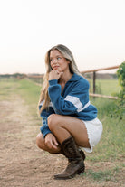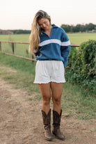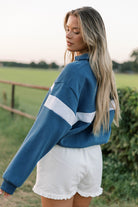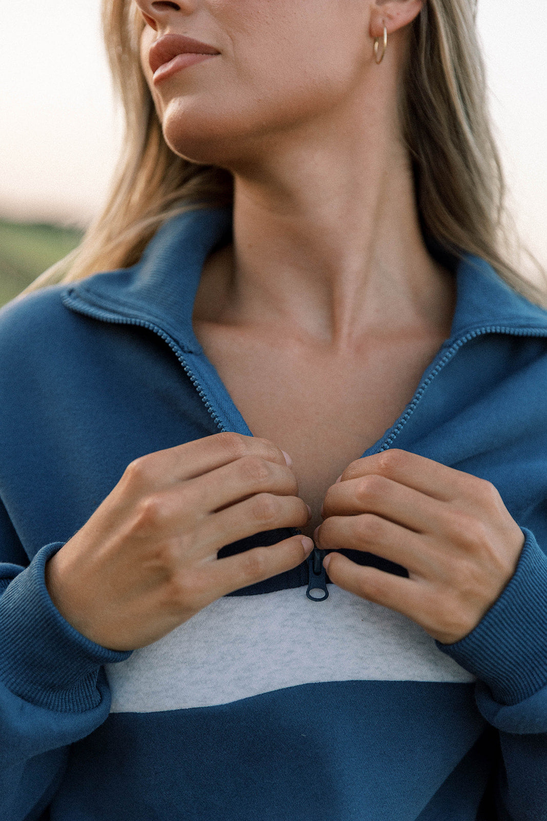 Tai Quarter Zip Two-Tone Sweatshirt in Navy/Grey