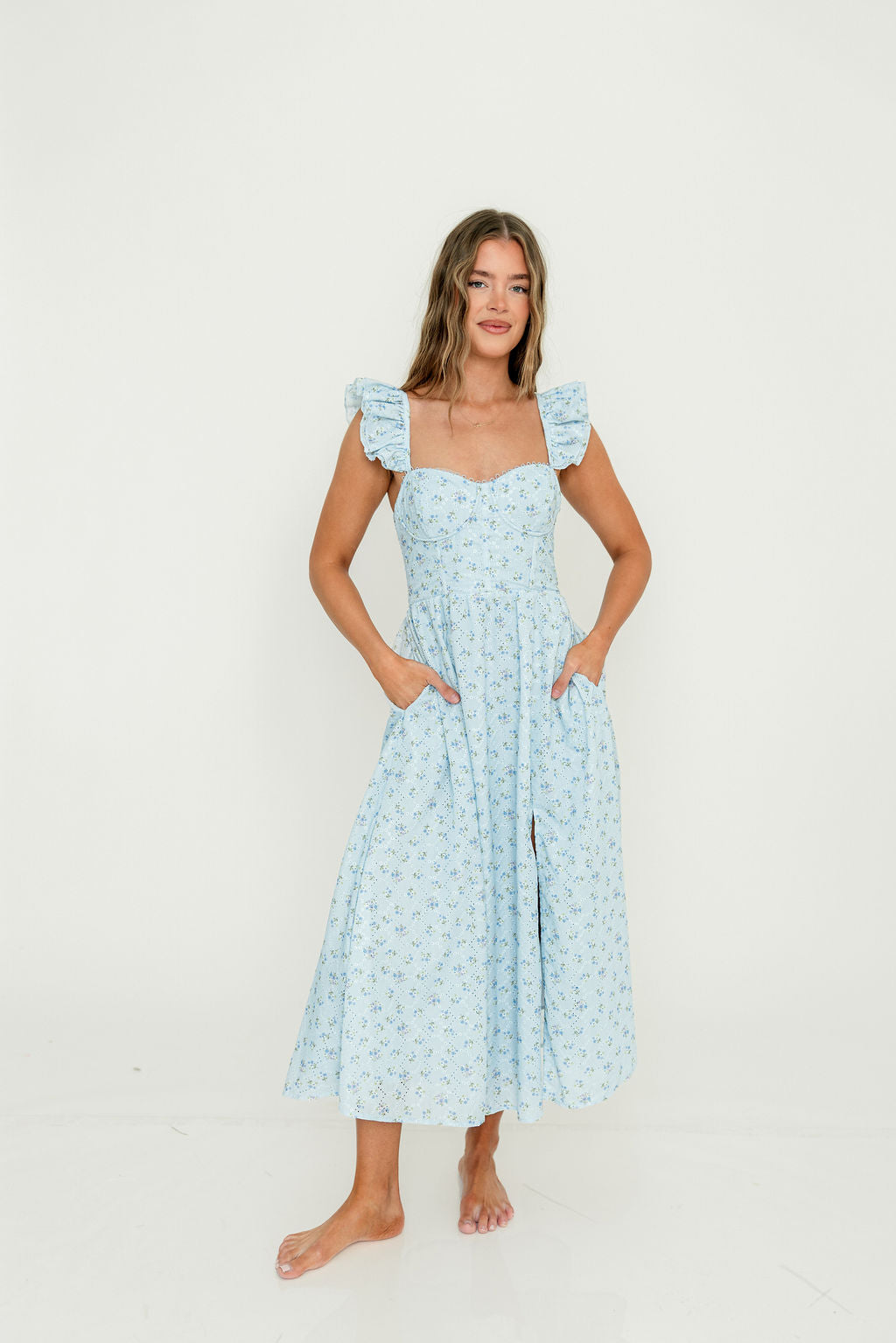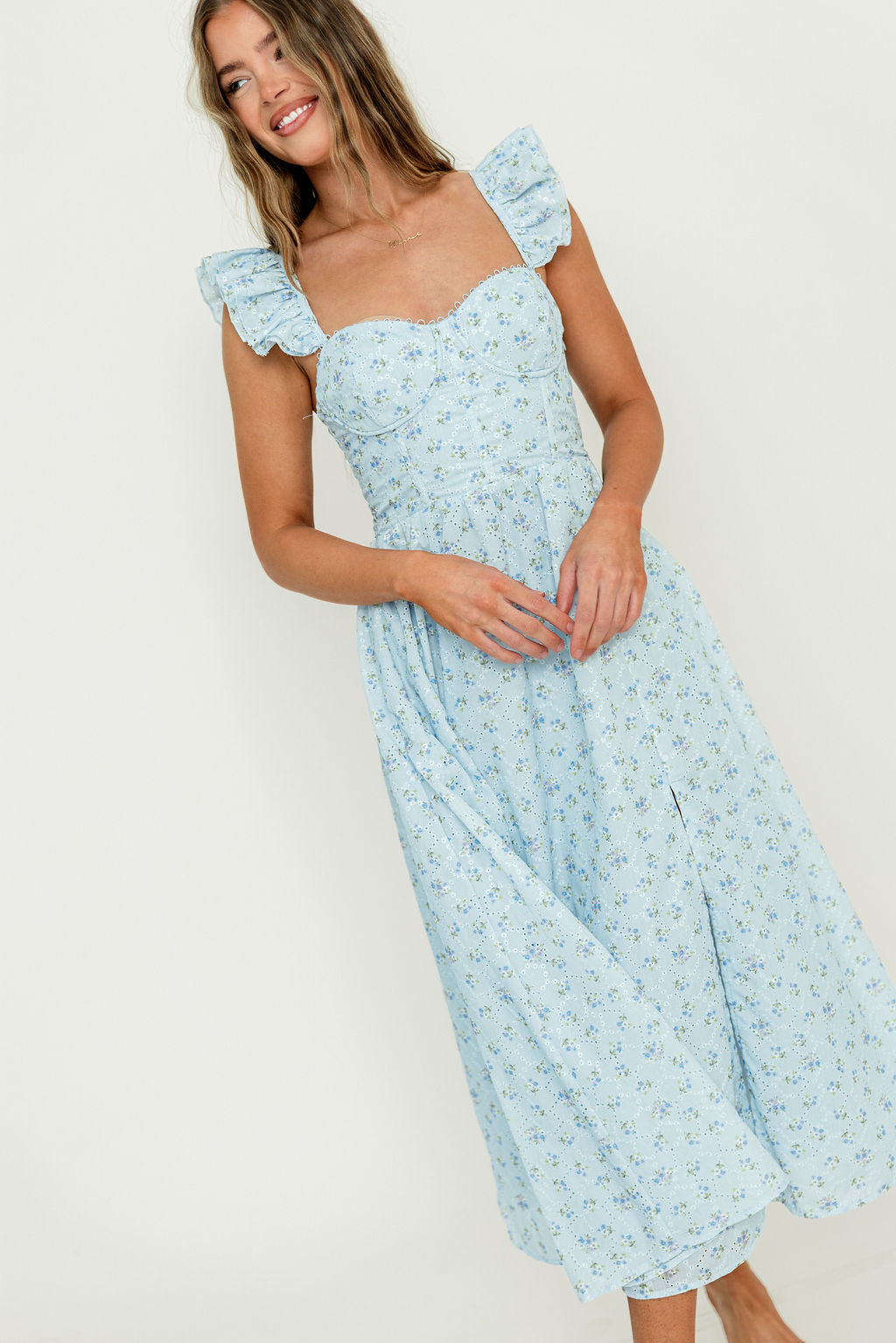 Wedelia Midi Dress in Blue Floral