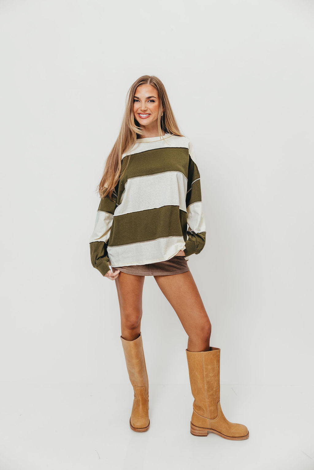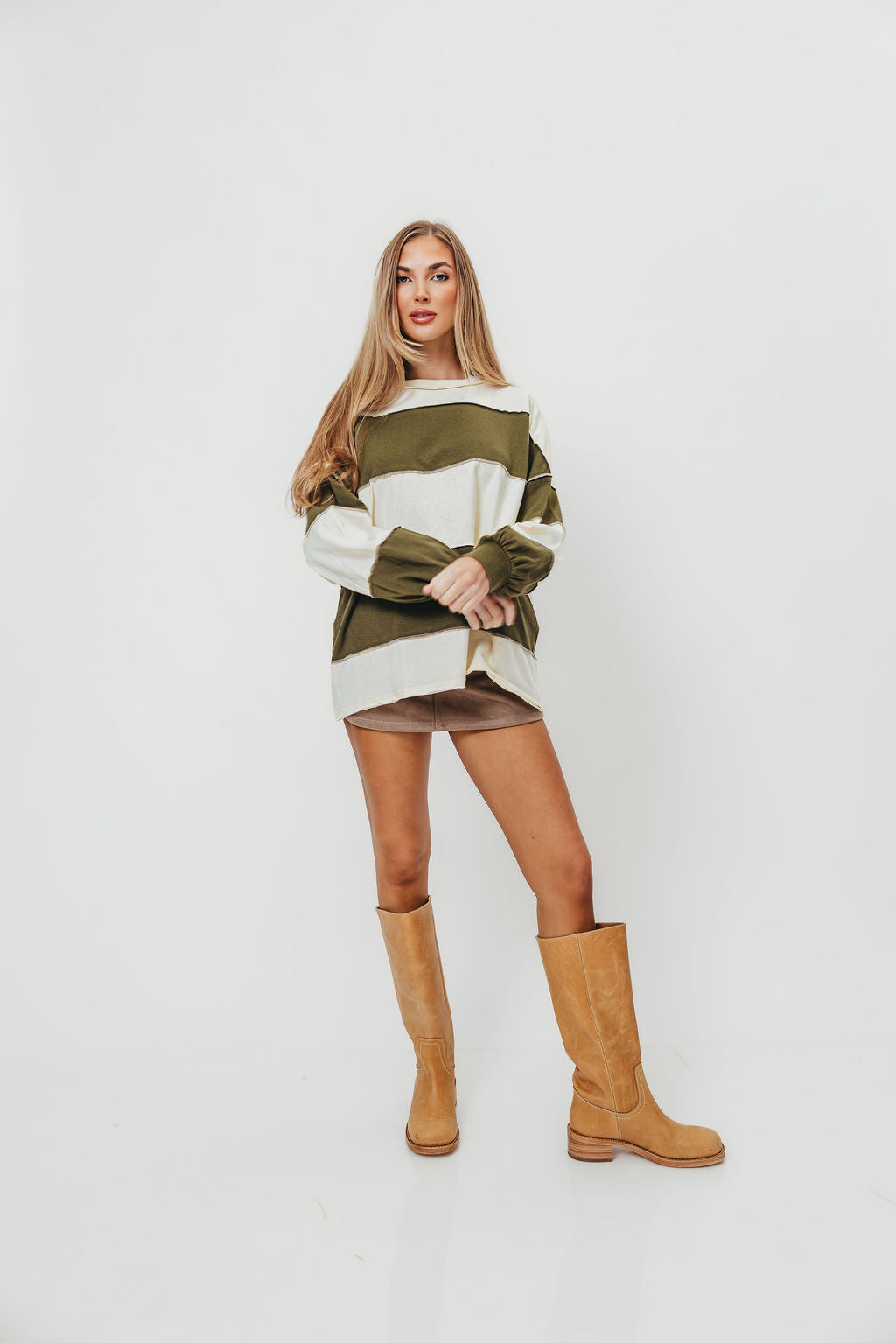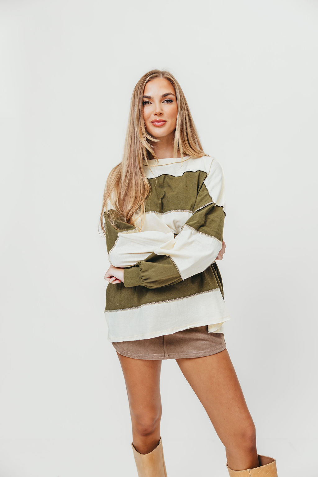Willow Contrast Panel Long Sleeve Slouchy Top in Butter Olive