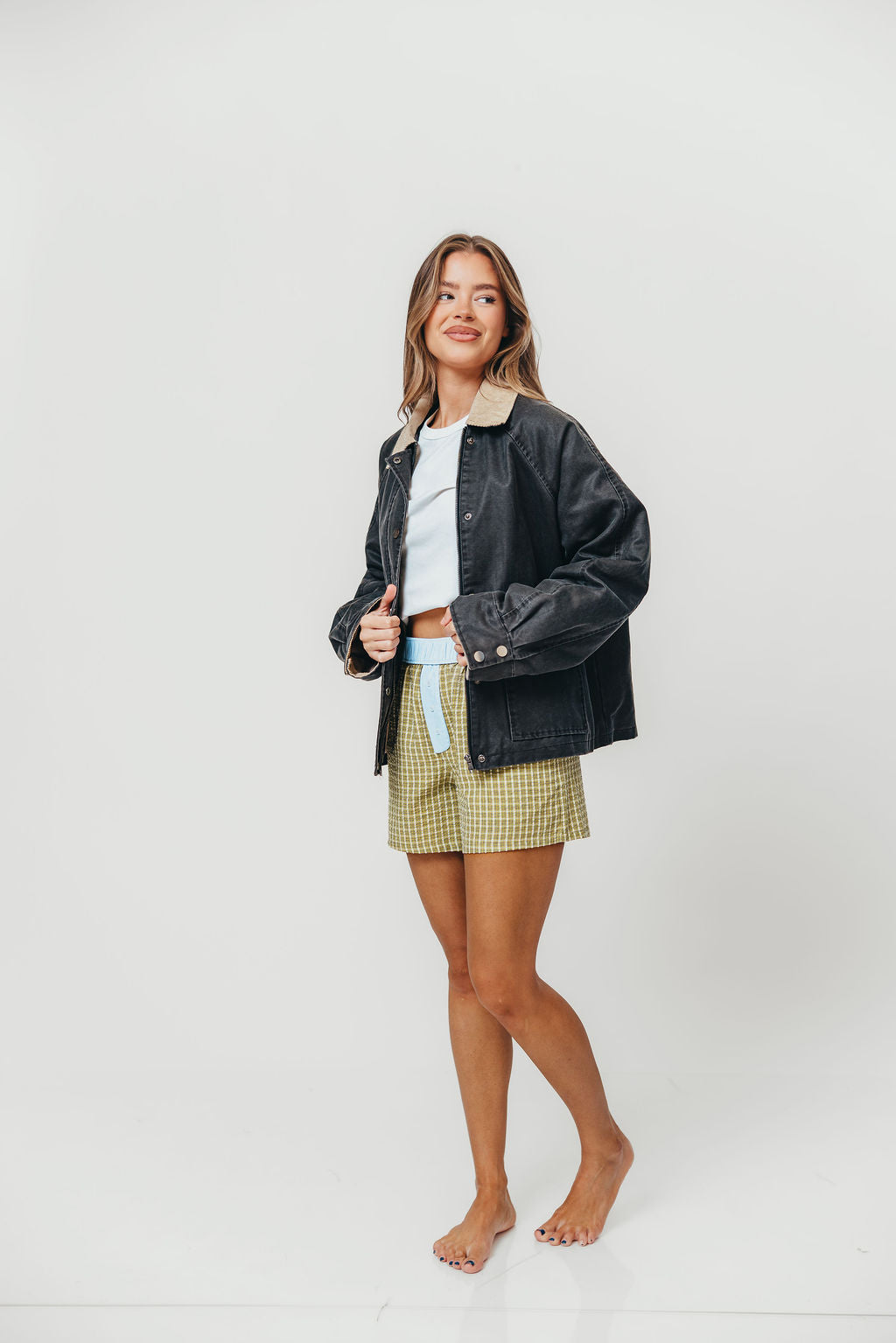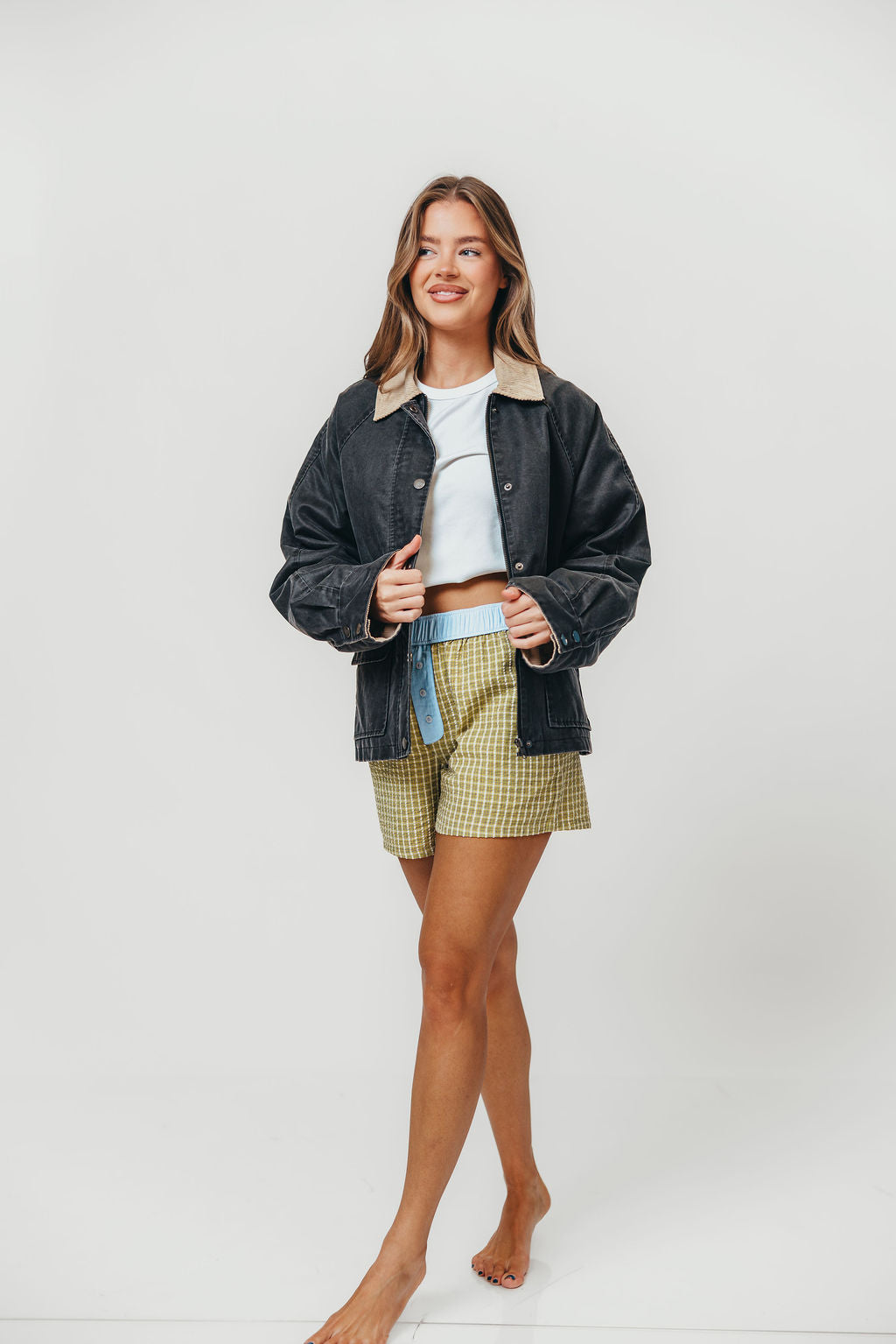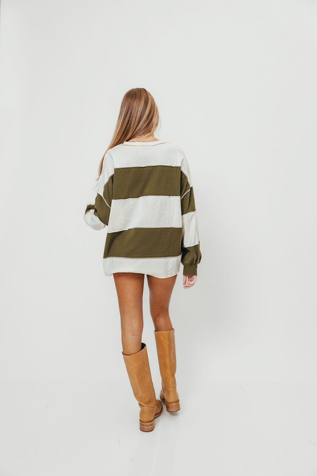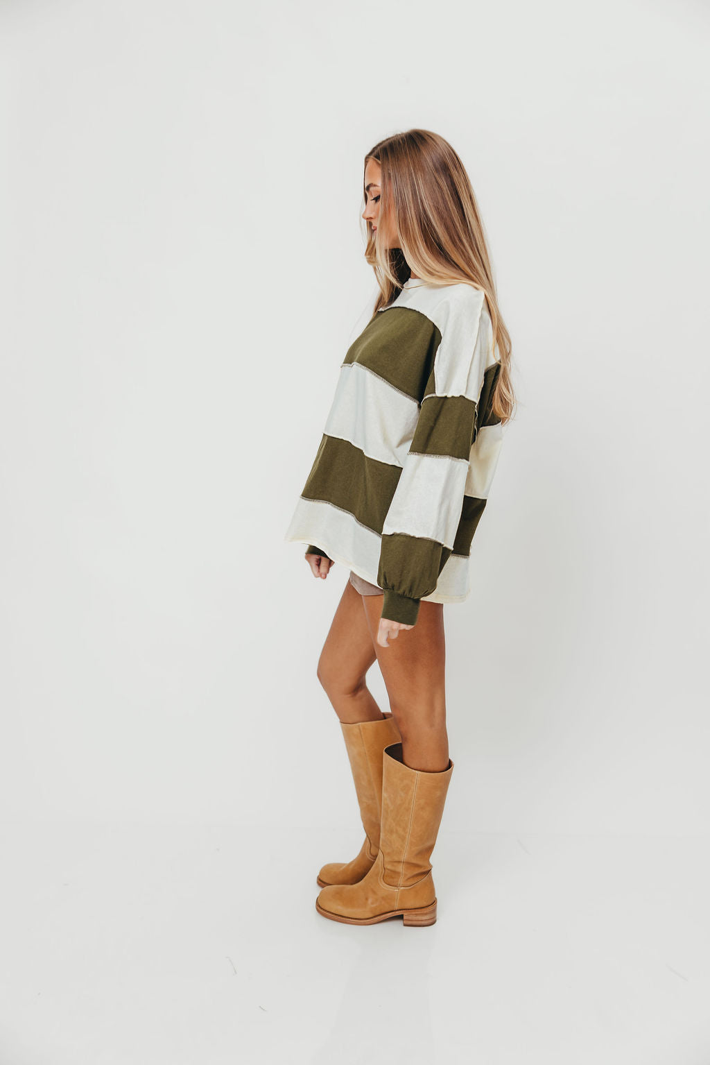 Willow Contrast Panel Long Sleeve Slouchy Top in Butter Olive
