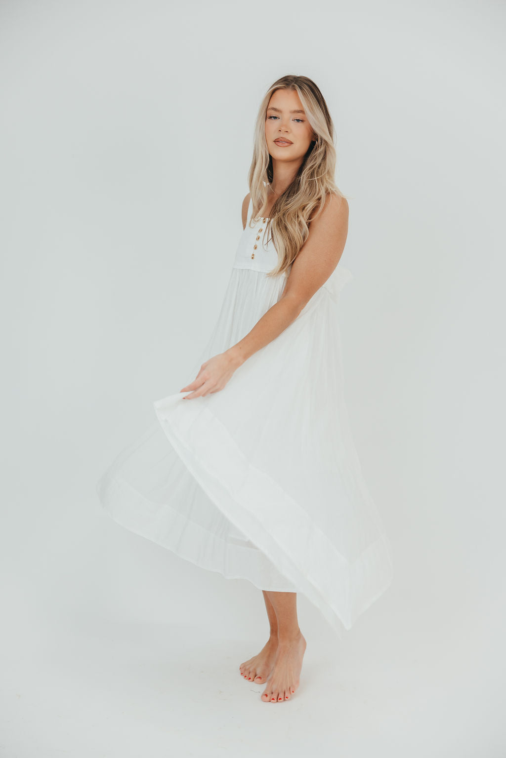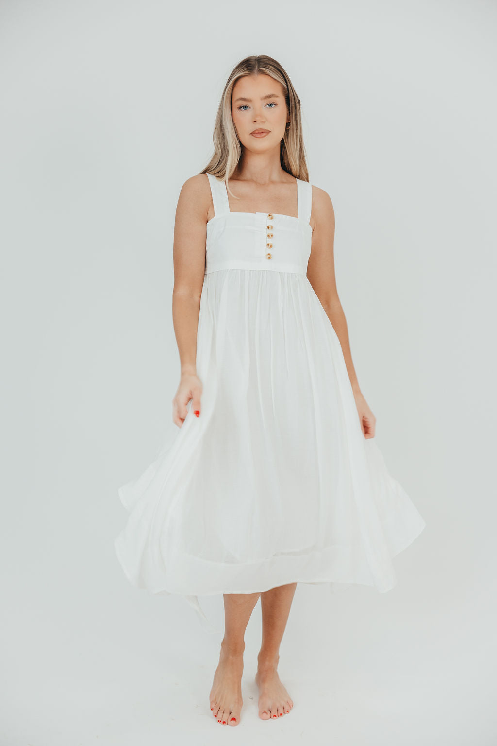 Ariella Sleeveless Midi Dress in Off-White