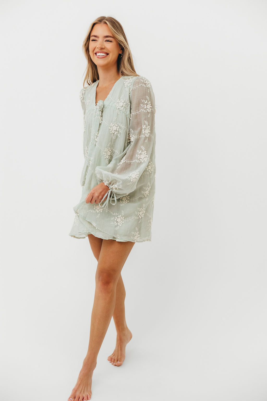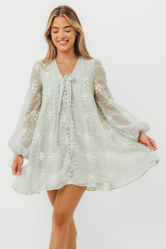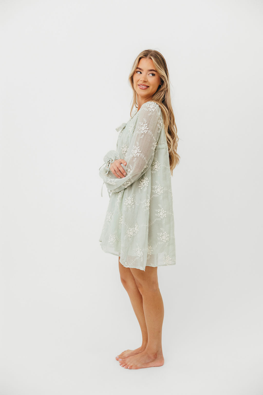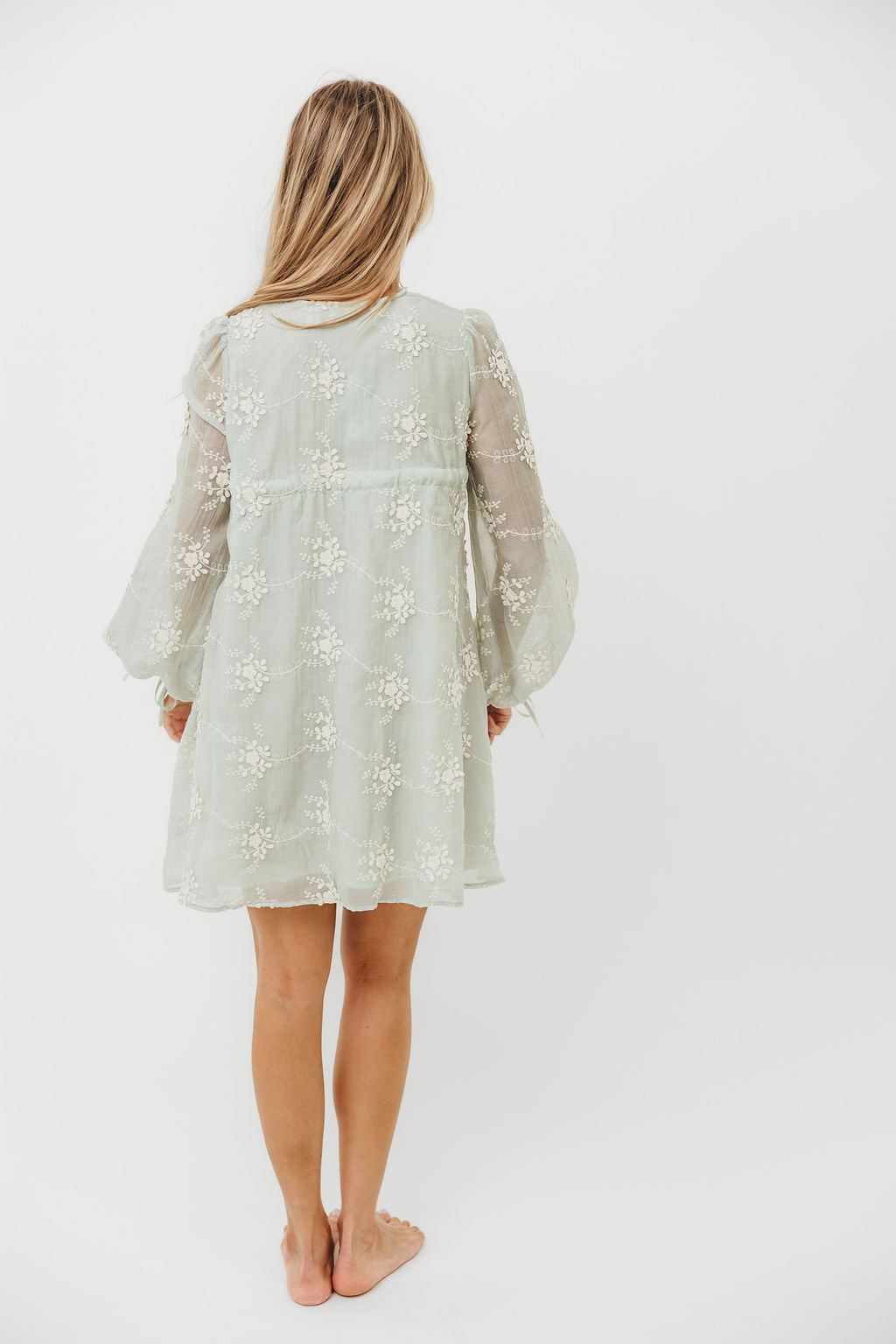Erika Embroidered Long Sleeve Mini Dress in Mint