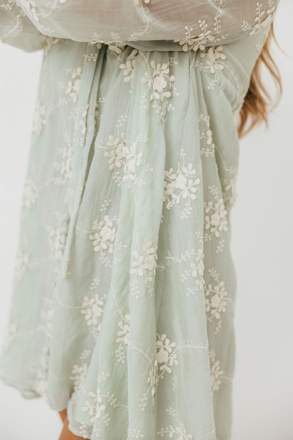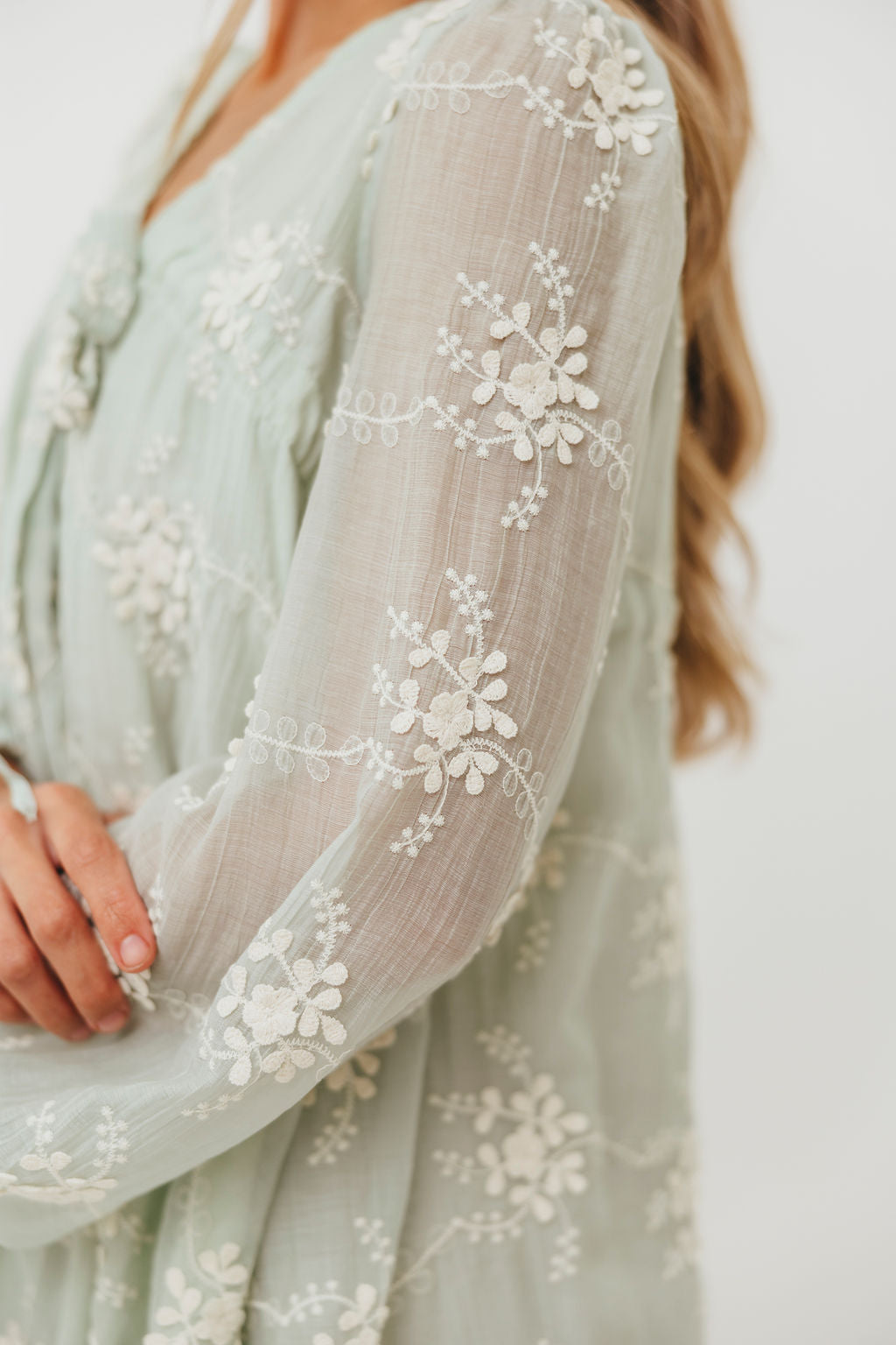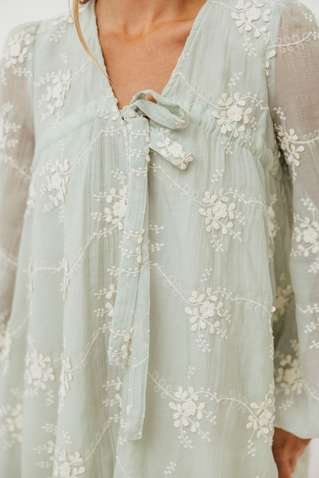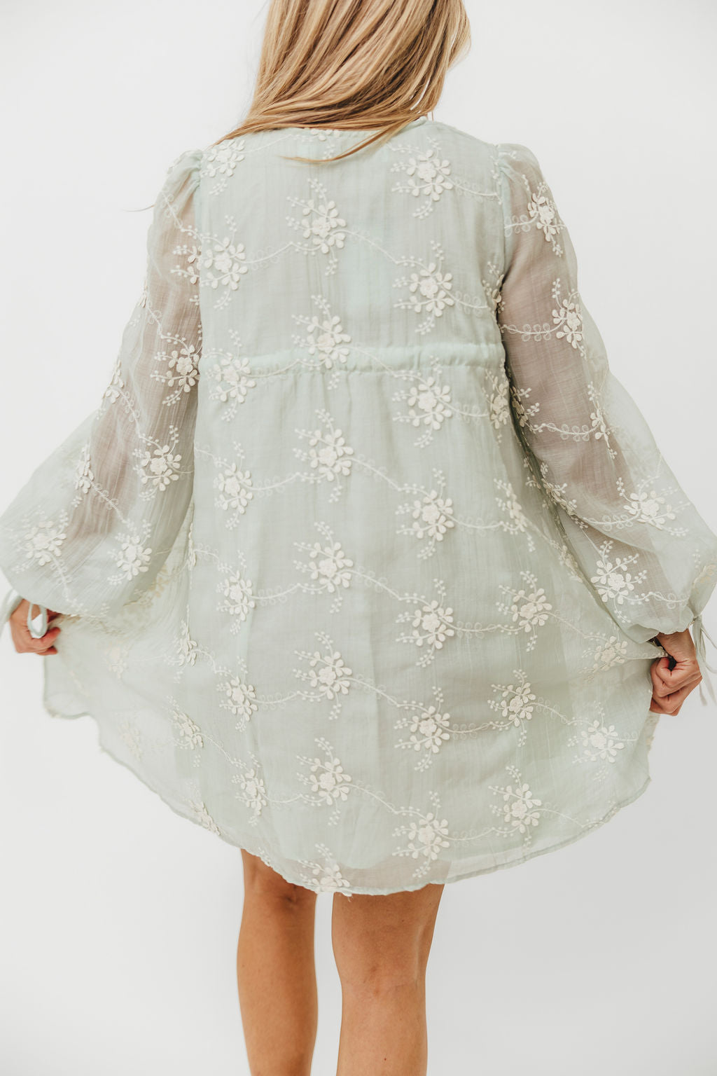 Erika Embroidered Long Sleeve Mini Dress in Mint