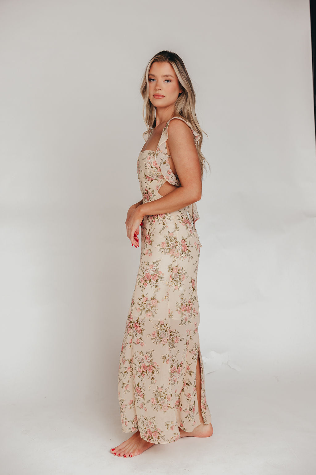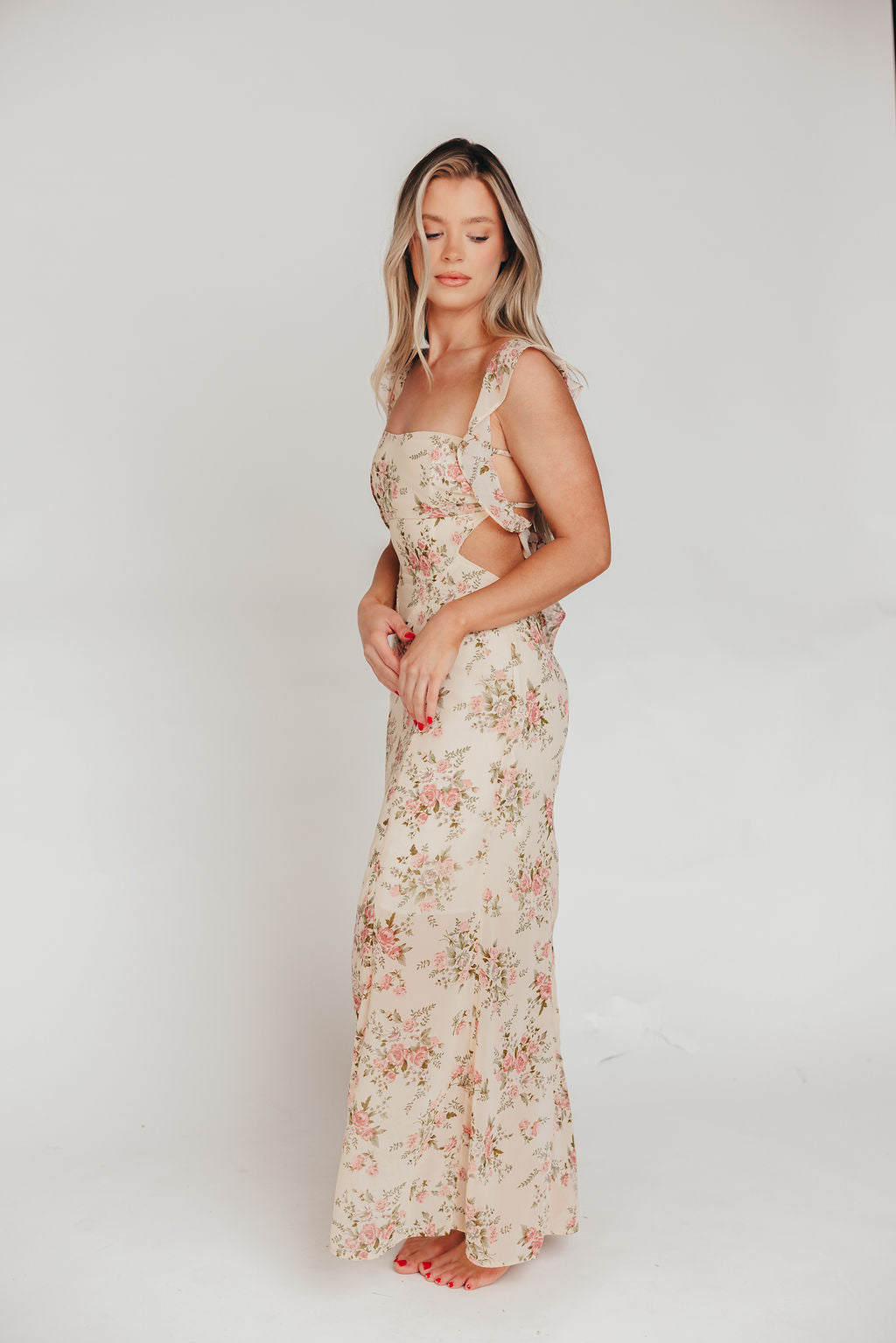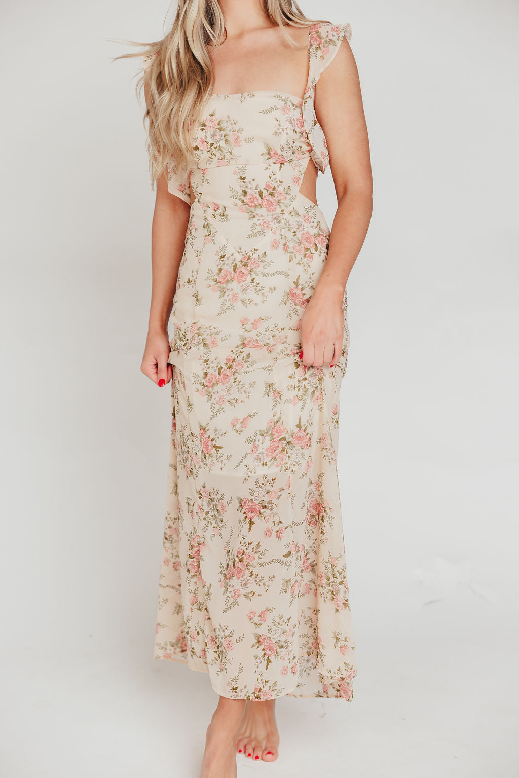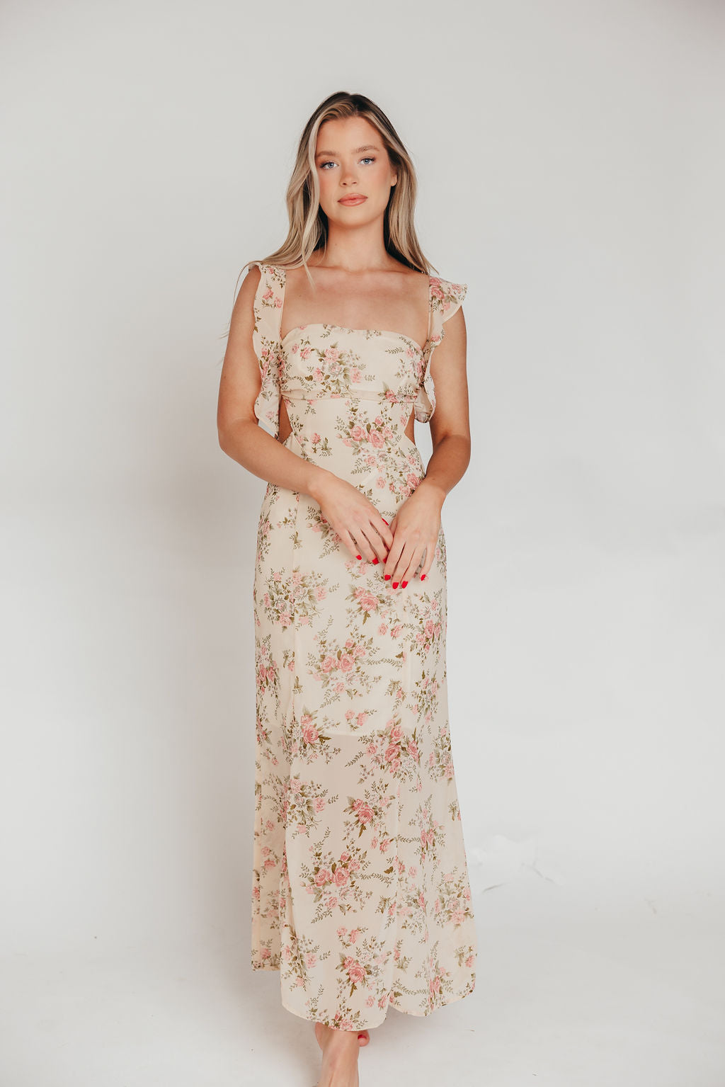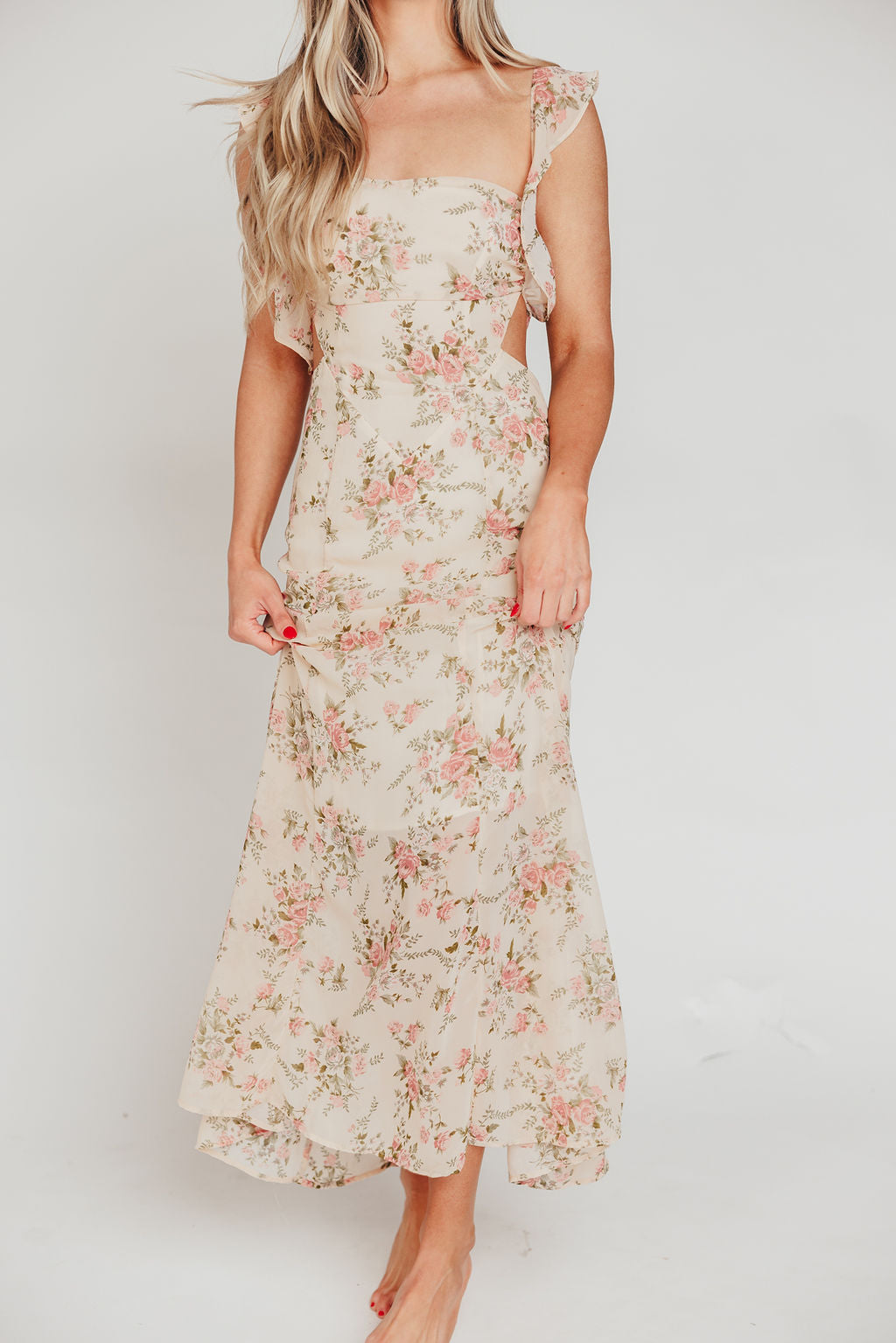 Beloved Flutter Sleeve Maxi Dress in Blush Pink Floral