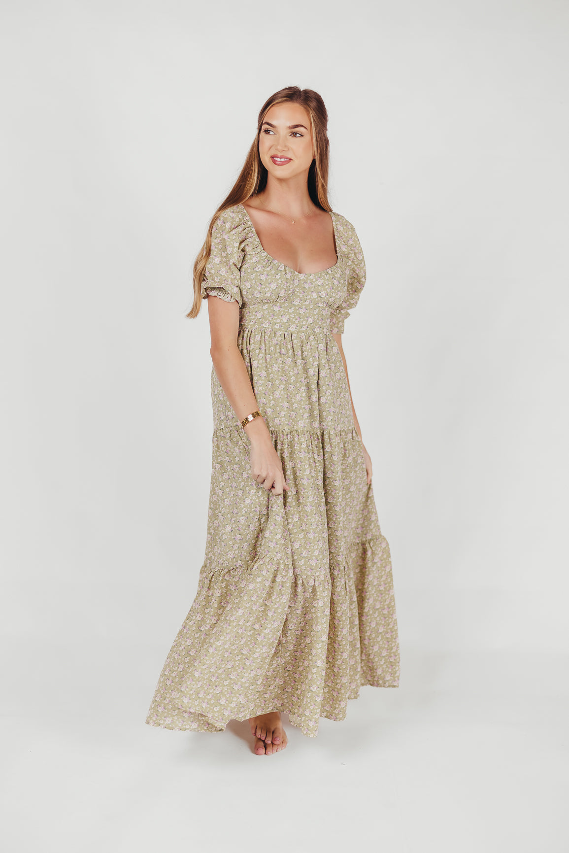 Patton Sweetheart Neckline Tiered Maxi Dress in Sage