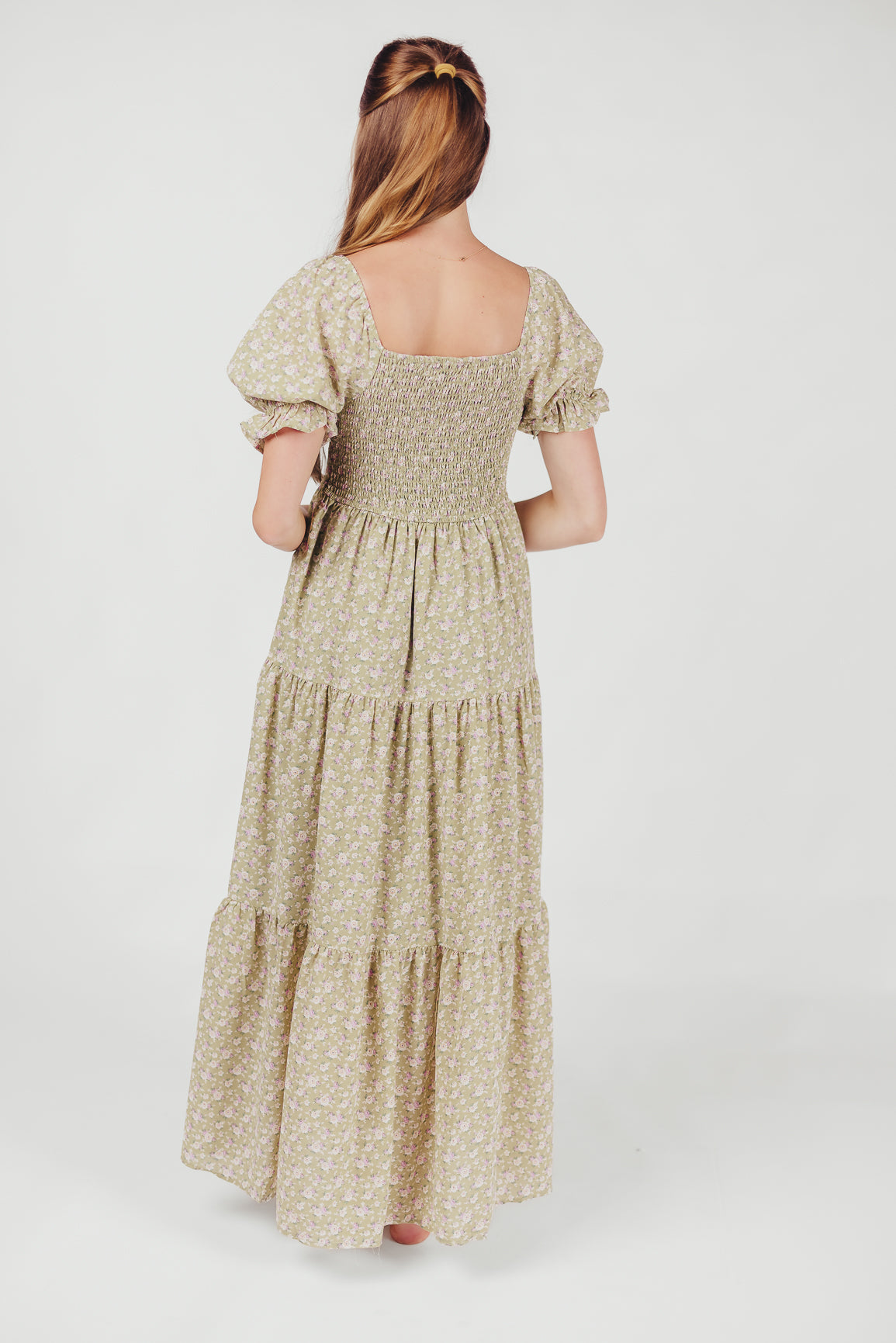 Discover the perfect combination of elegance and romance with our Rosette Sweetheart Neck Floral Tiered Dress. This darling maxi dress features a flattering sweetheart neckline and ruffled puff sleeves, making it a timeless addition to your wardrobe. Pair with slides or sandals for an easy and feminine everyday style, or dress it up with heels for a special occasion!