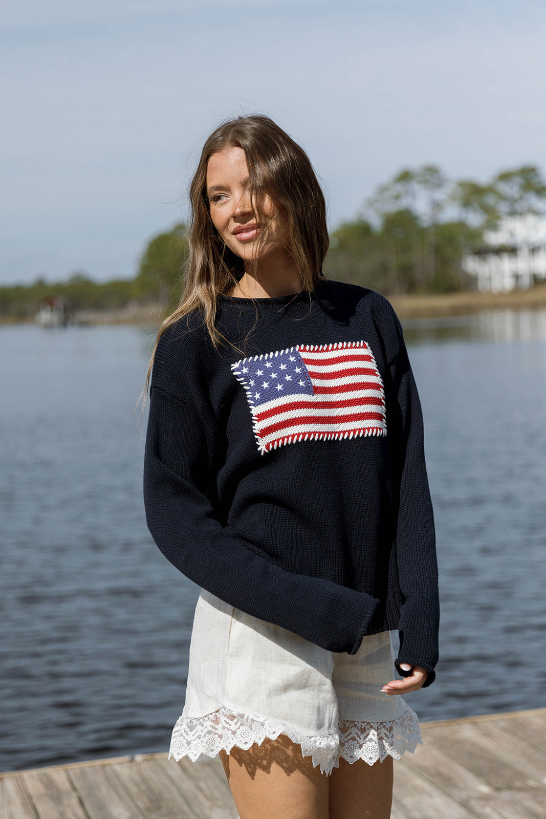 Unity 100% Cotton American Flag Sweater in Navy