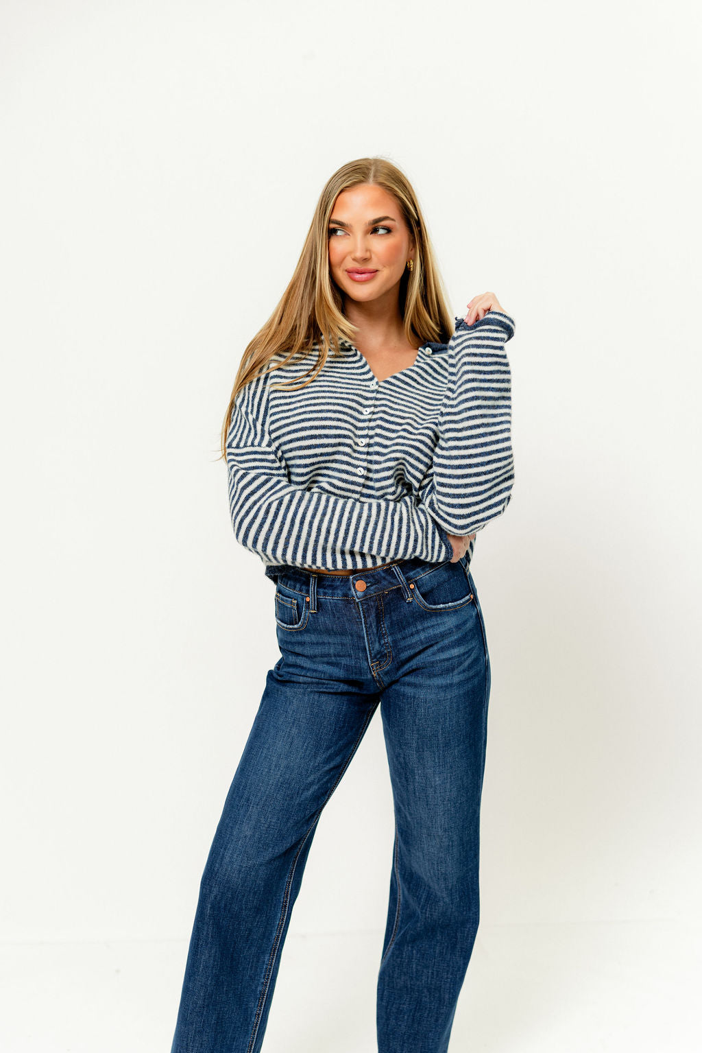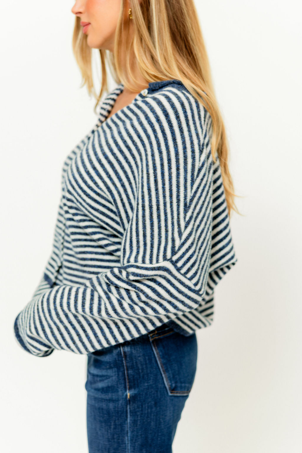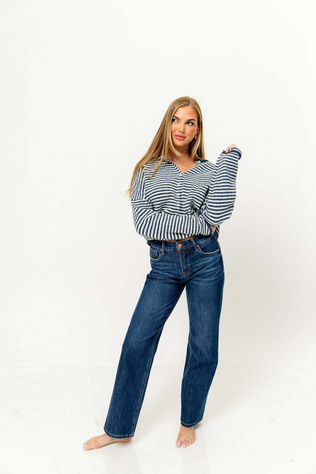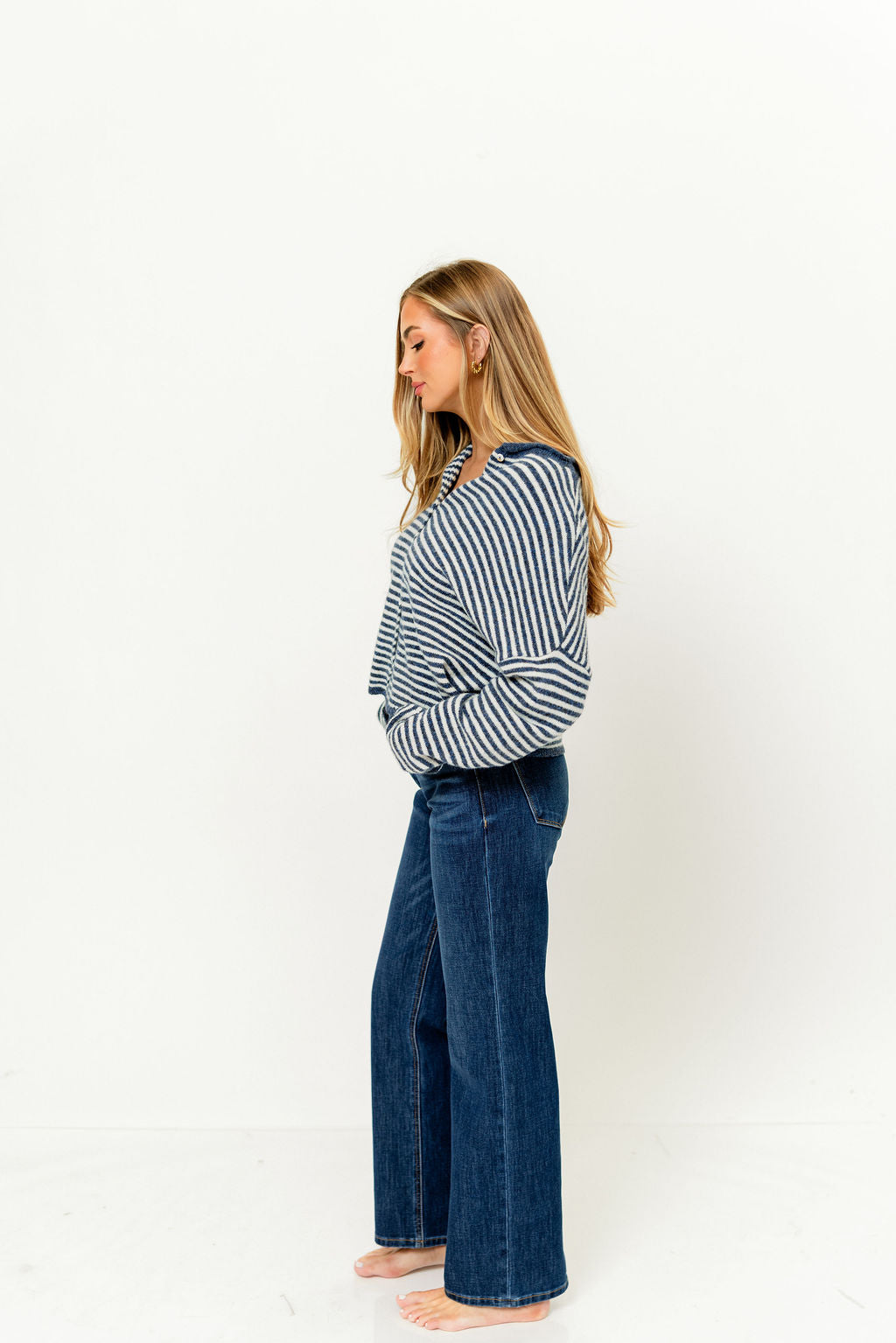 Sailor 100% Cotton Collared Midi Dress in Blue